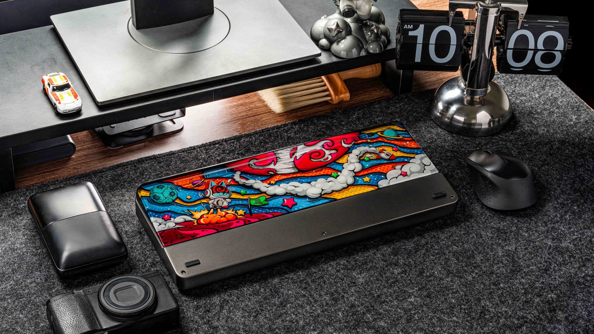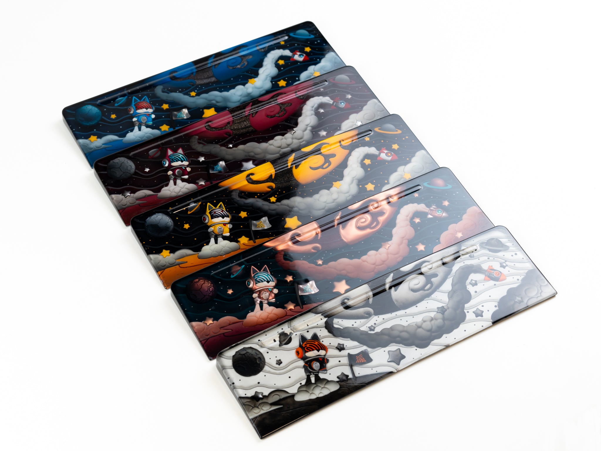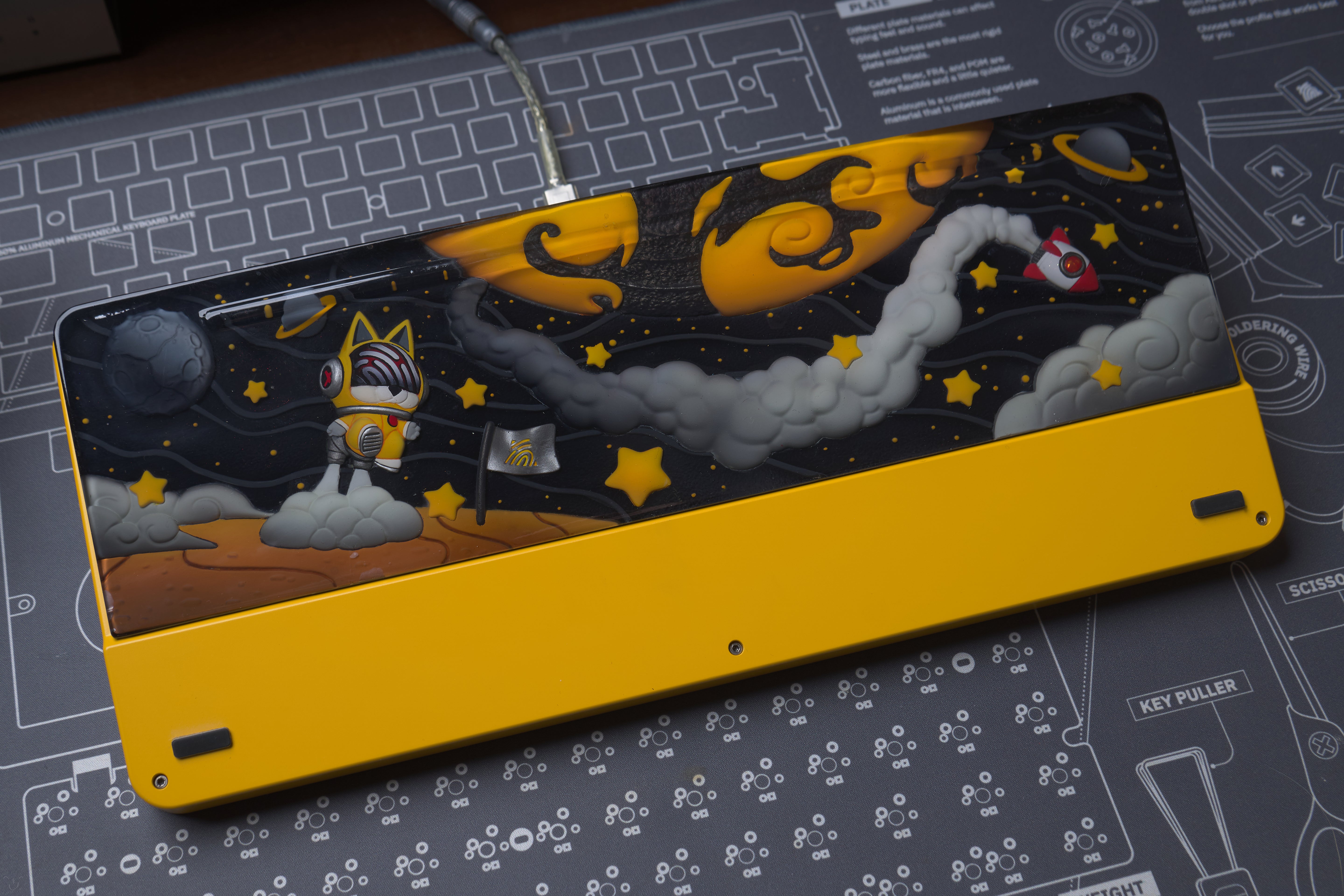 Known for their artisans, Artkey Universe team is excited to bring you their first keyboard- the AK75! Artkey worked closely with AKB to ensure their vision was cast upon a premium and unique chassis, while staying true to their own artistic motifs. There is also an RGB lightbar featured in the top left of the keyboard.