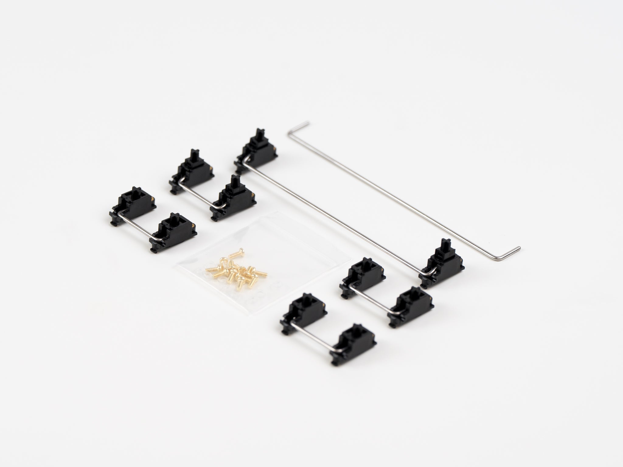 TX Stabilizers are premium PCB mount Screw-in stabilizers that utilize a patented doubleshot stem. The stem contains a POM outside, and TPU + POM plastic on the inside. This combination of plastics on the inside help reduce wire rattle and unwanted stabilizer noises.