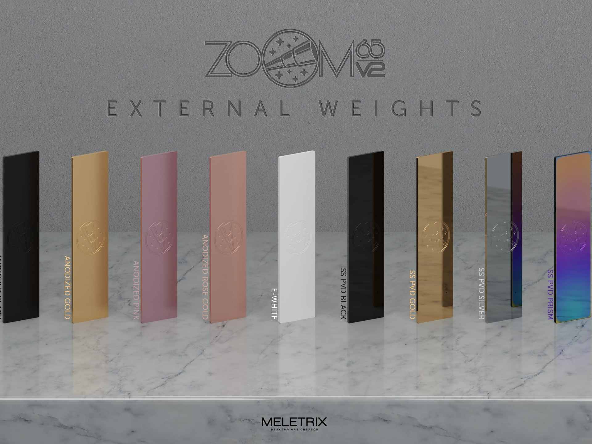 These knobs and weights will also work on the previous version of this keyboard, the Zoom65 EE.