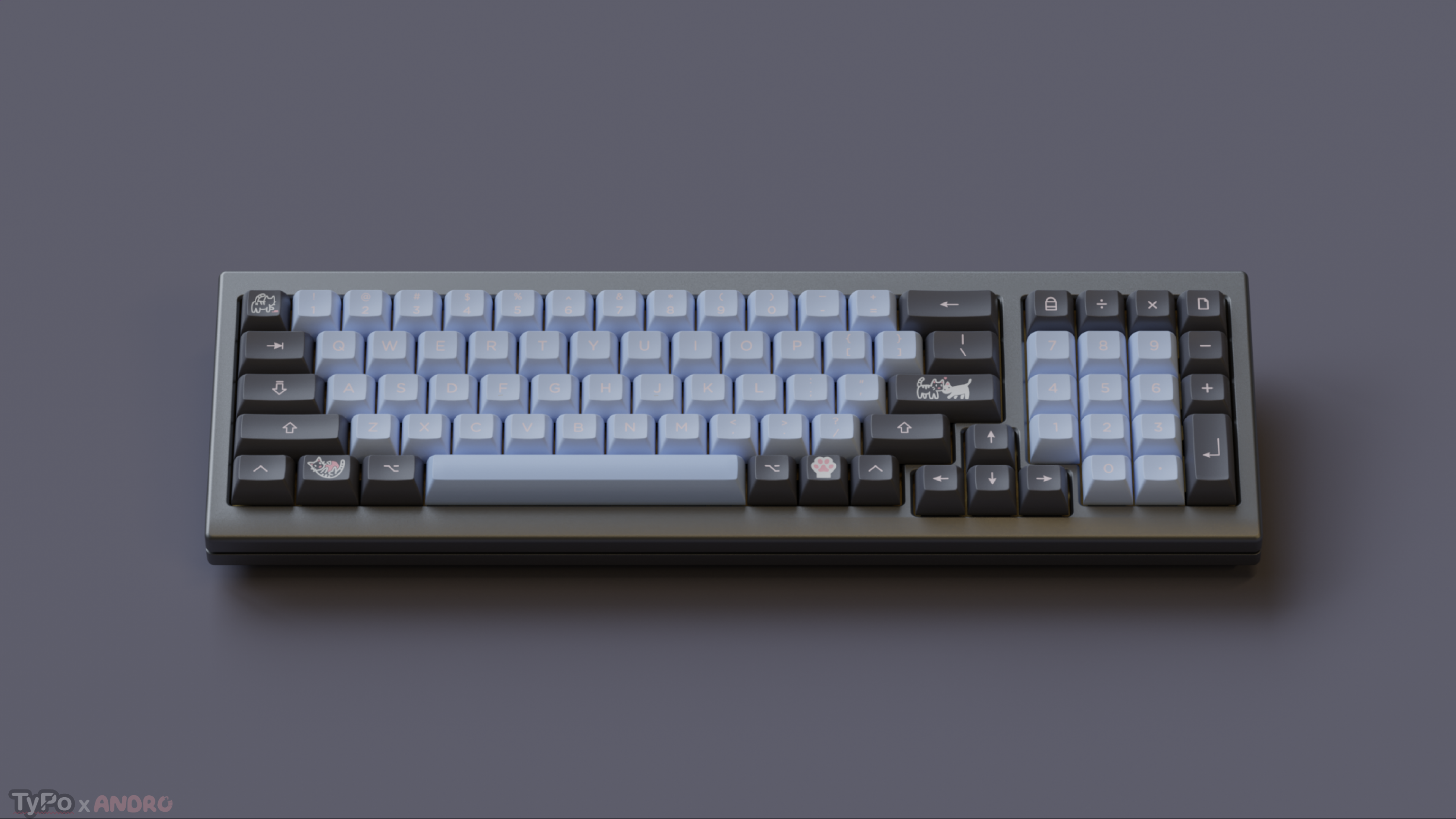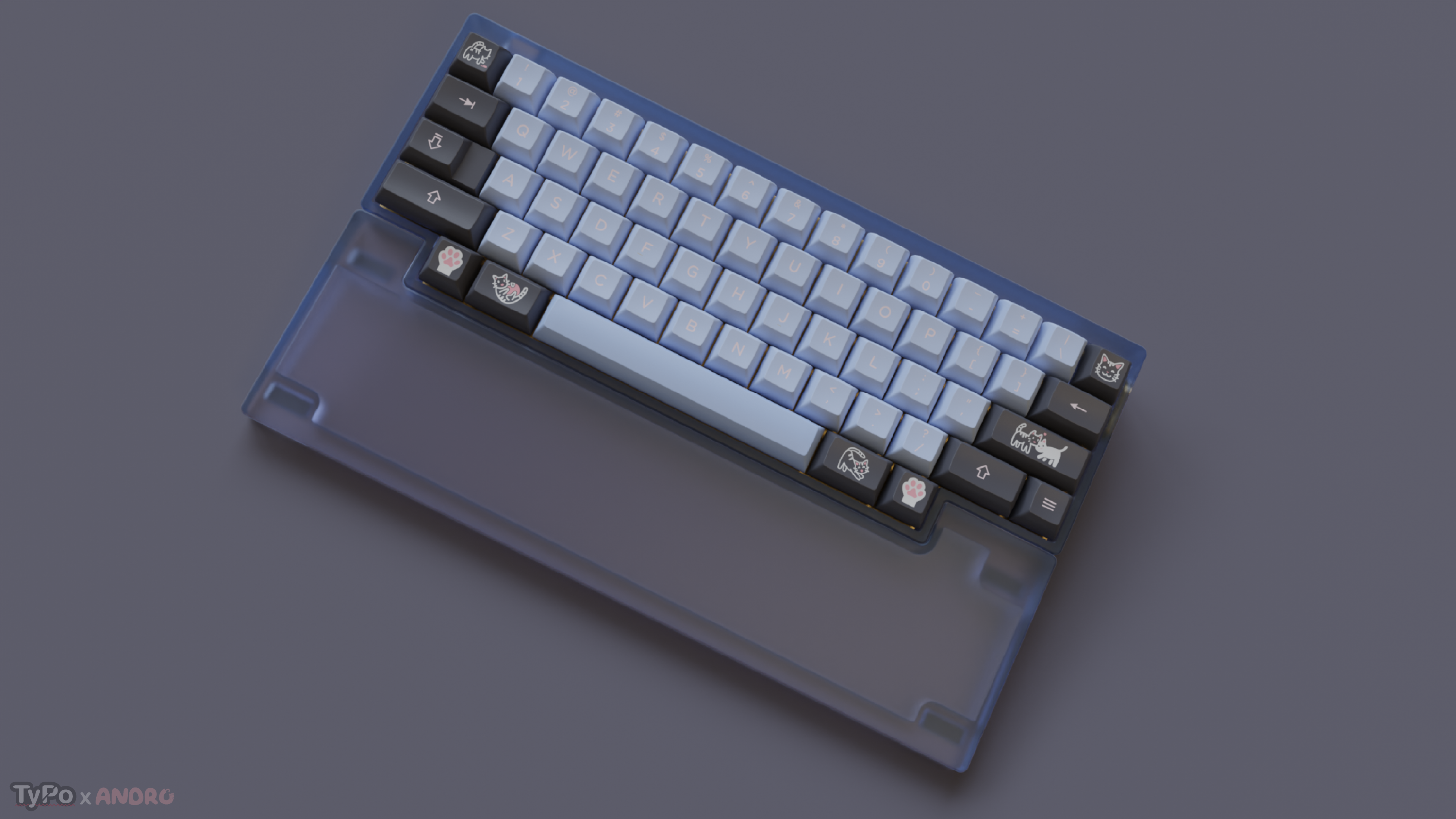 Andromache and TyPo.mk (co-designers of GMK Orange Boi) have teamed up once again to bring you another cat inspired set--this time for the gray/white varieties! A matching kitty shaped deskmat is also available to pair with the keycaps!