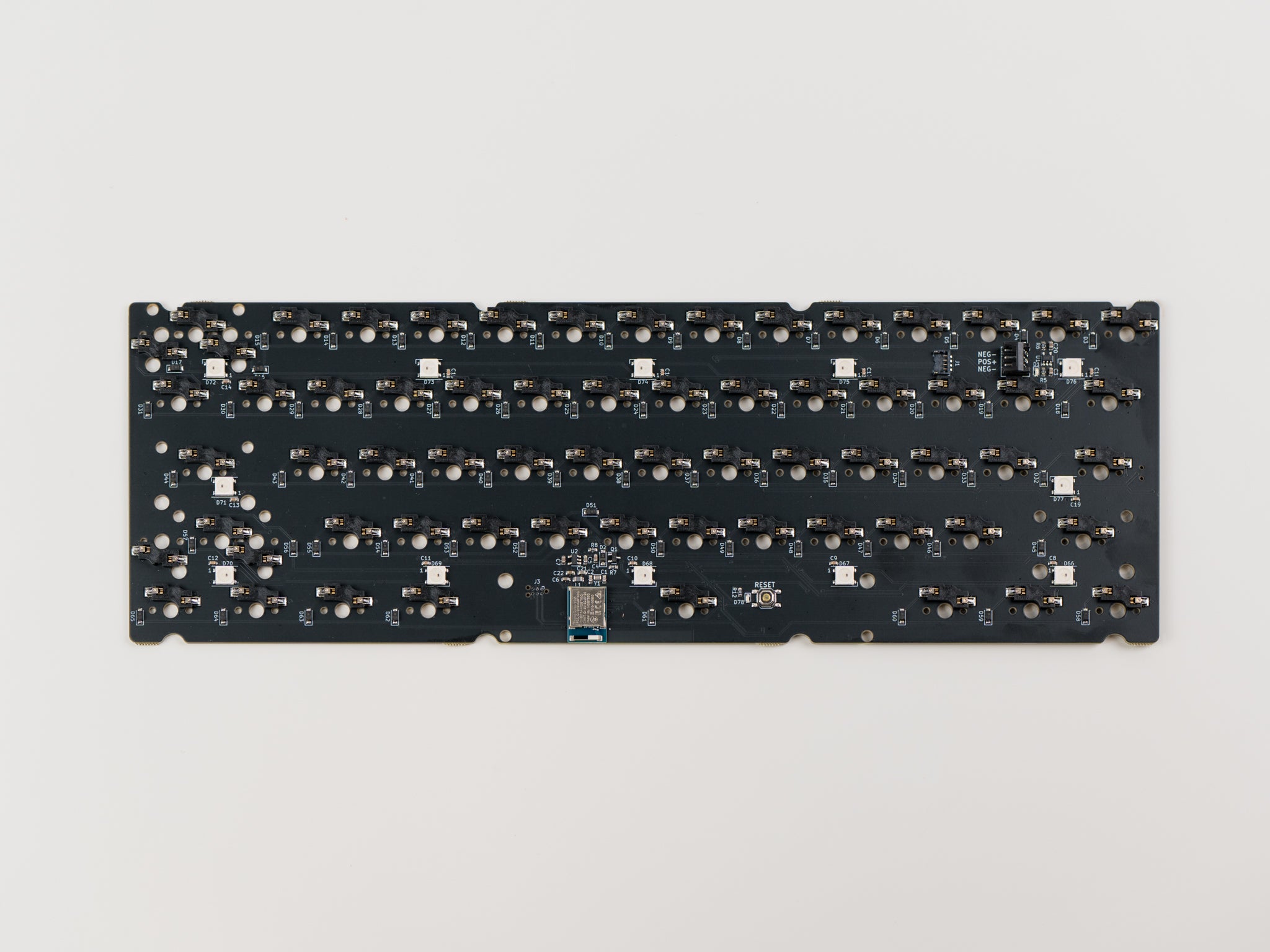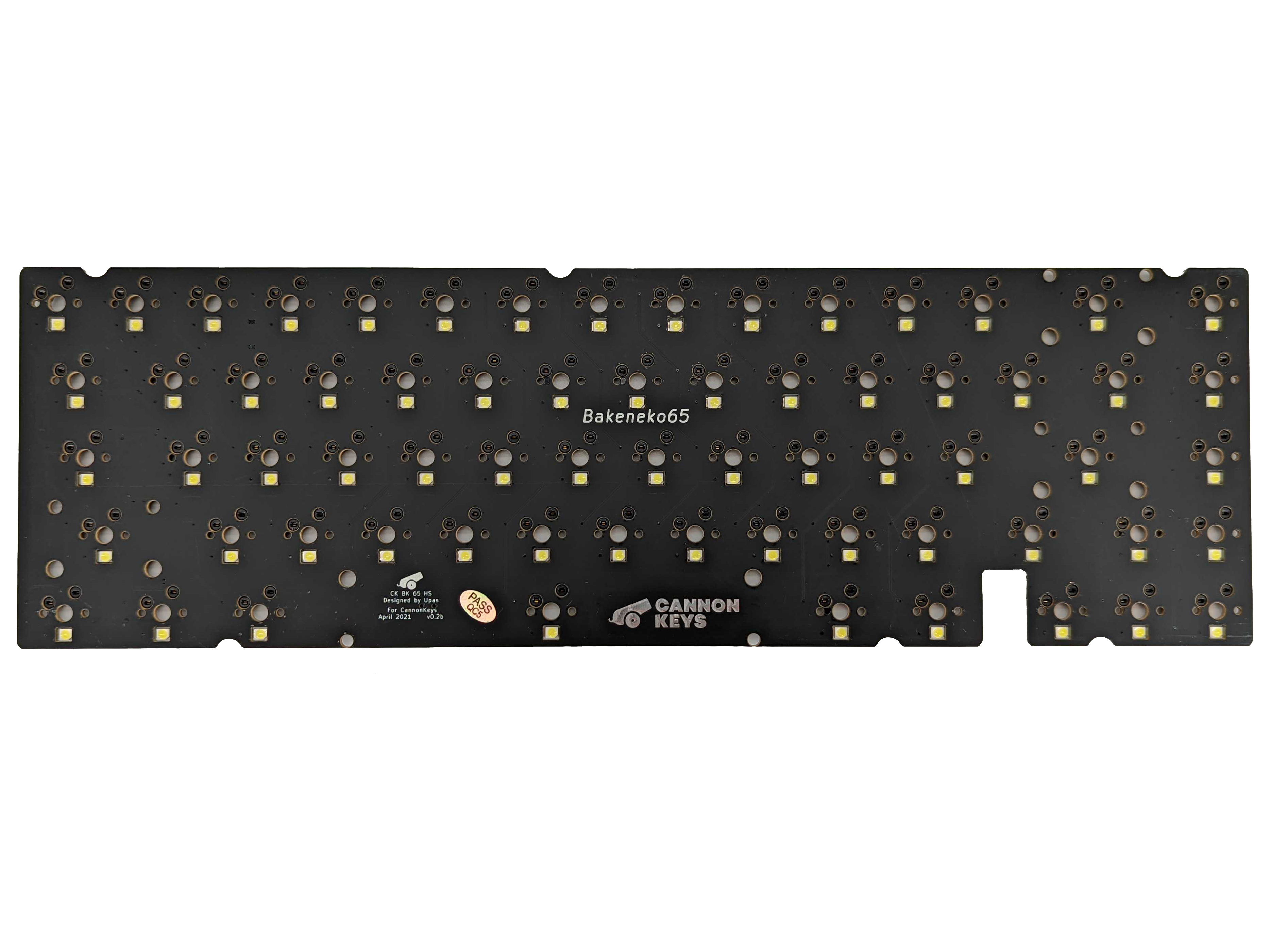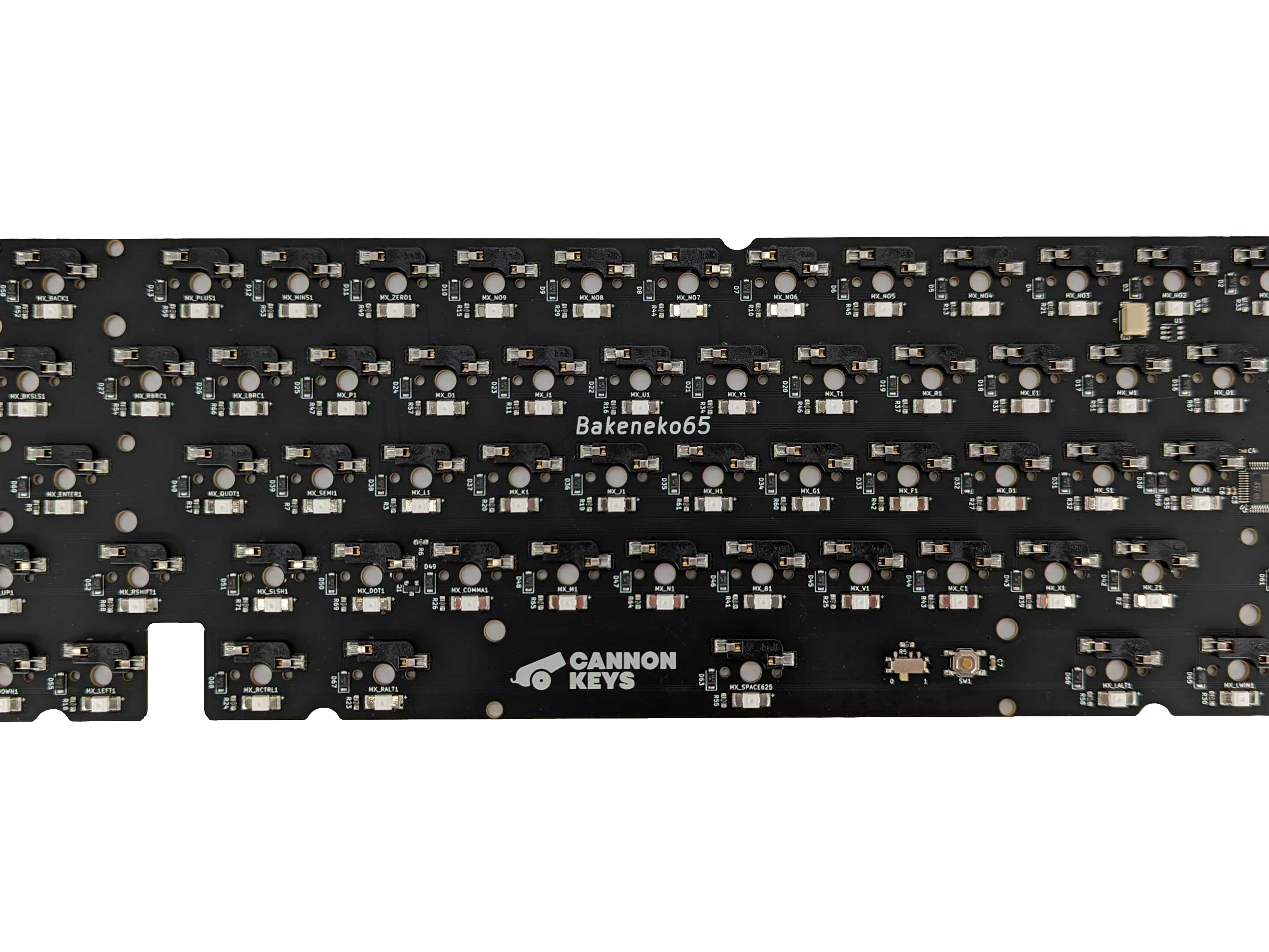 At the heart of the Bakeneko Series lies its simple, but effective, O-ring gasket mount! A squishy O-ring sits between the plate and PCB, which contacts the case through cutouts in the PCB. The result is an even sounding, comfortable typing experience that is easy to customize and build.