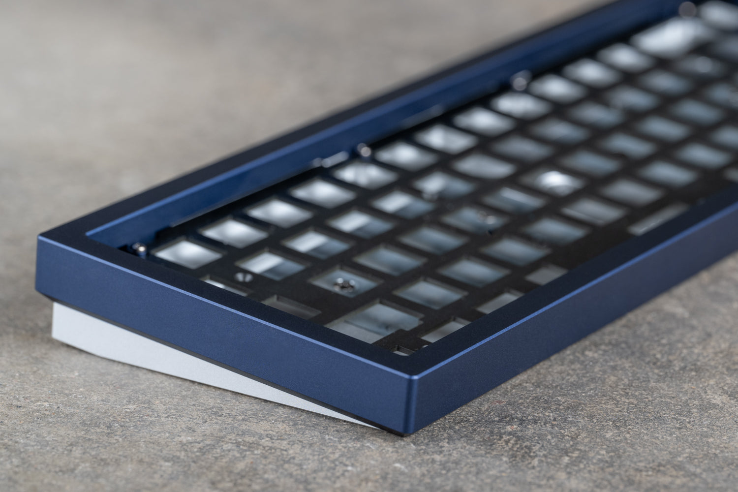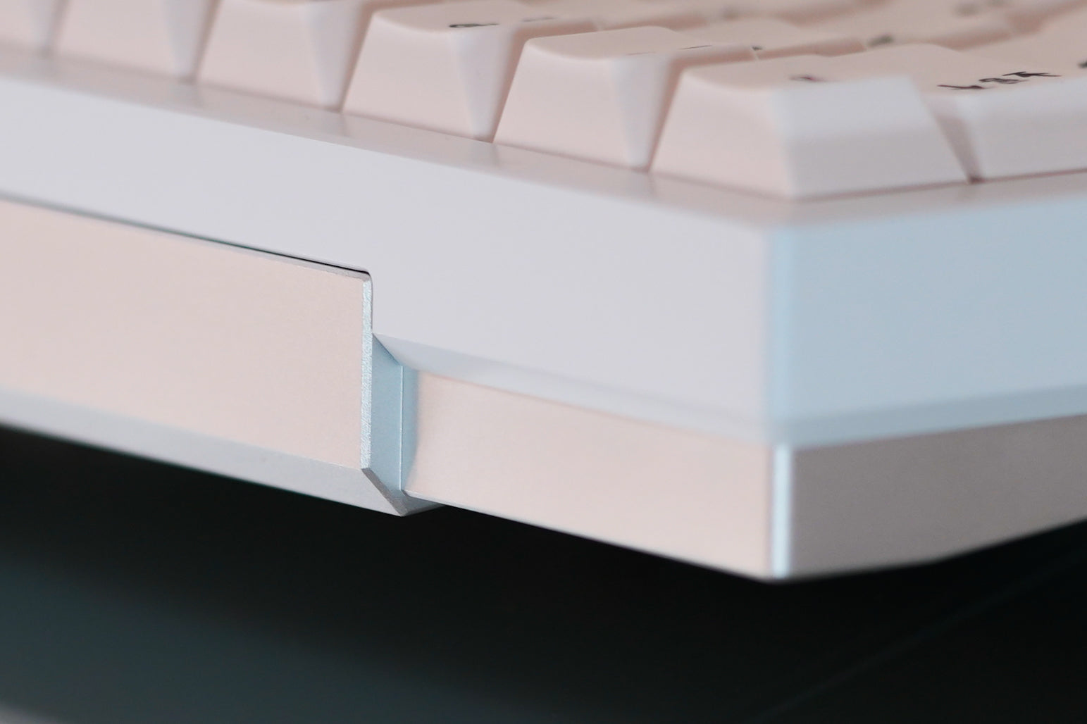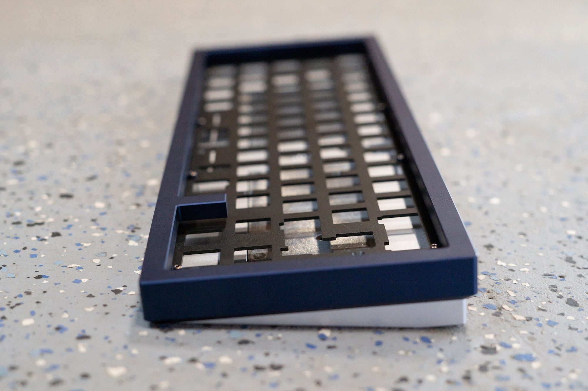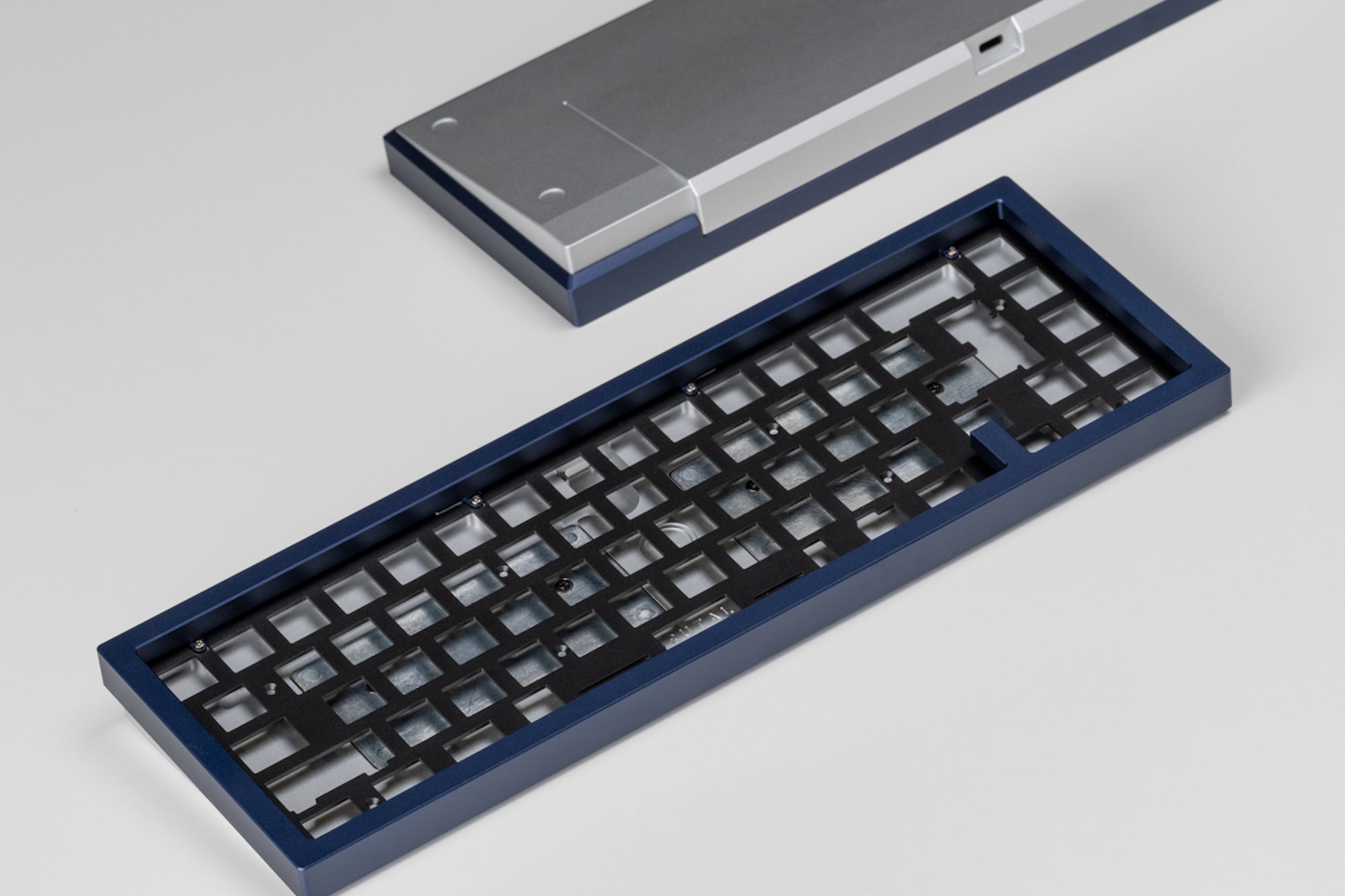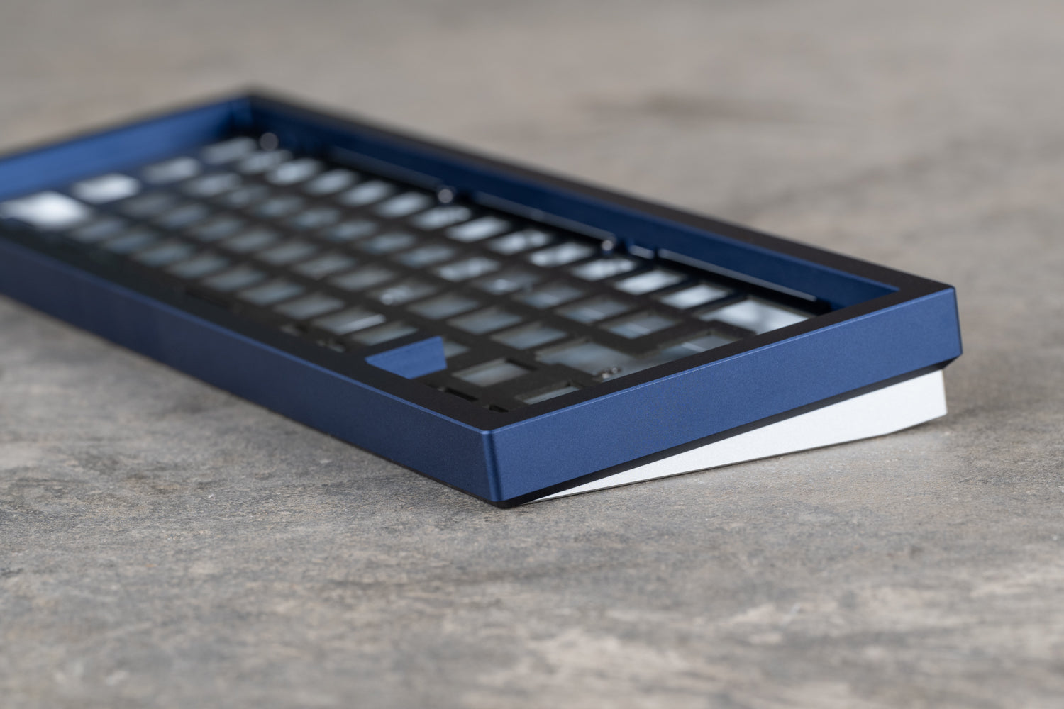 The top case is a blocky bezel, enveloping the base like a brutalist overhang.A tidy footprint with ledges that allow easy keyboard adjustments.