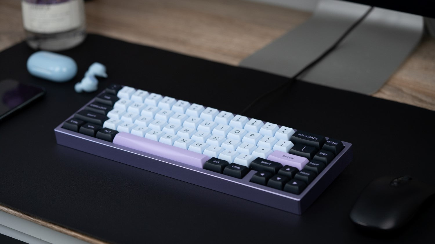 Our NicePBT Bakeneko keycap sets are a fantastic way to complete your Bakeneko60 or Bakeneko65 Build. The keyset is available in several accent colors, as well as a version with no accents. Available colors include Lavender, Blush, Grey, Blue, Navy, and Black on White!