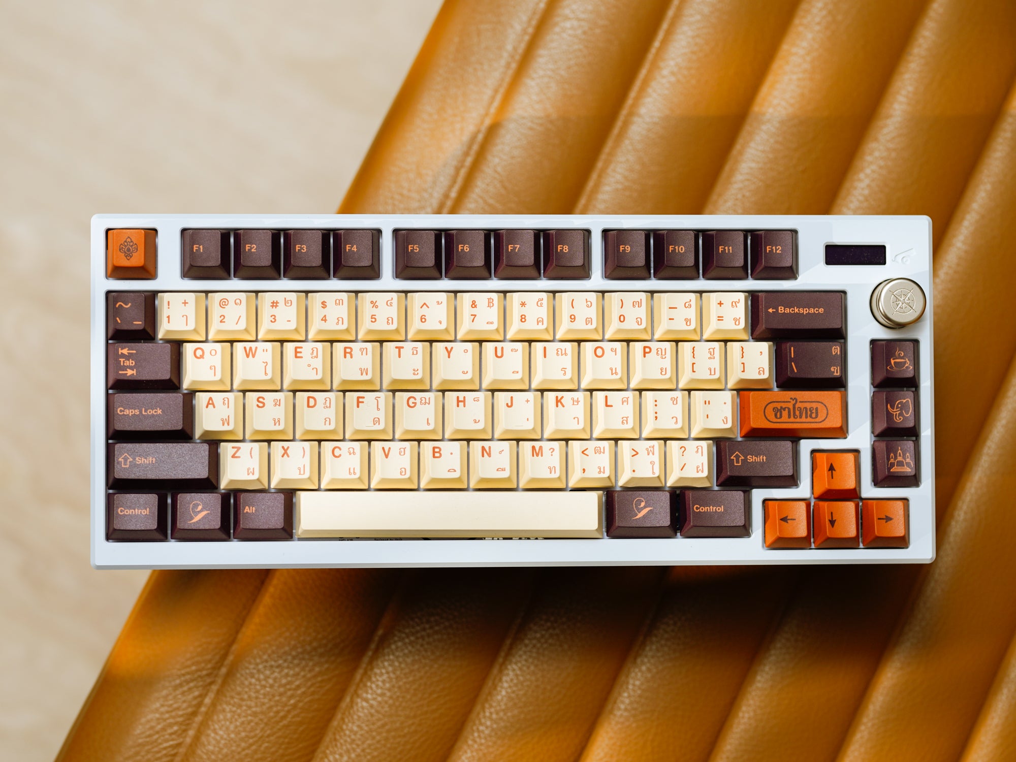 Sweet and creamy, just like the drink this keyset is inspired by! Purply-brown mods combine with the creamy alphas and orange legends to complete this delicious set (but please don't eat them!). The kit even includes several themed novelties, split spacebars, a second 'B' for all the Alice-style keyboards, and 4-key-40's support!