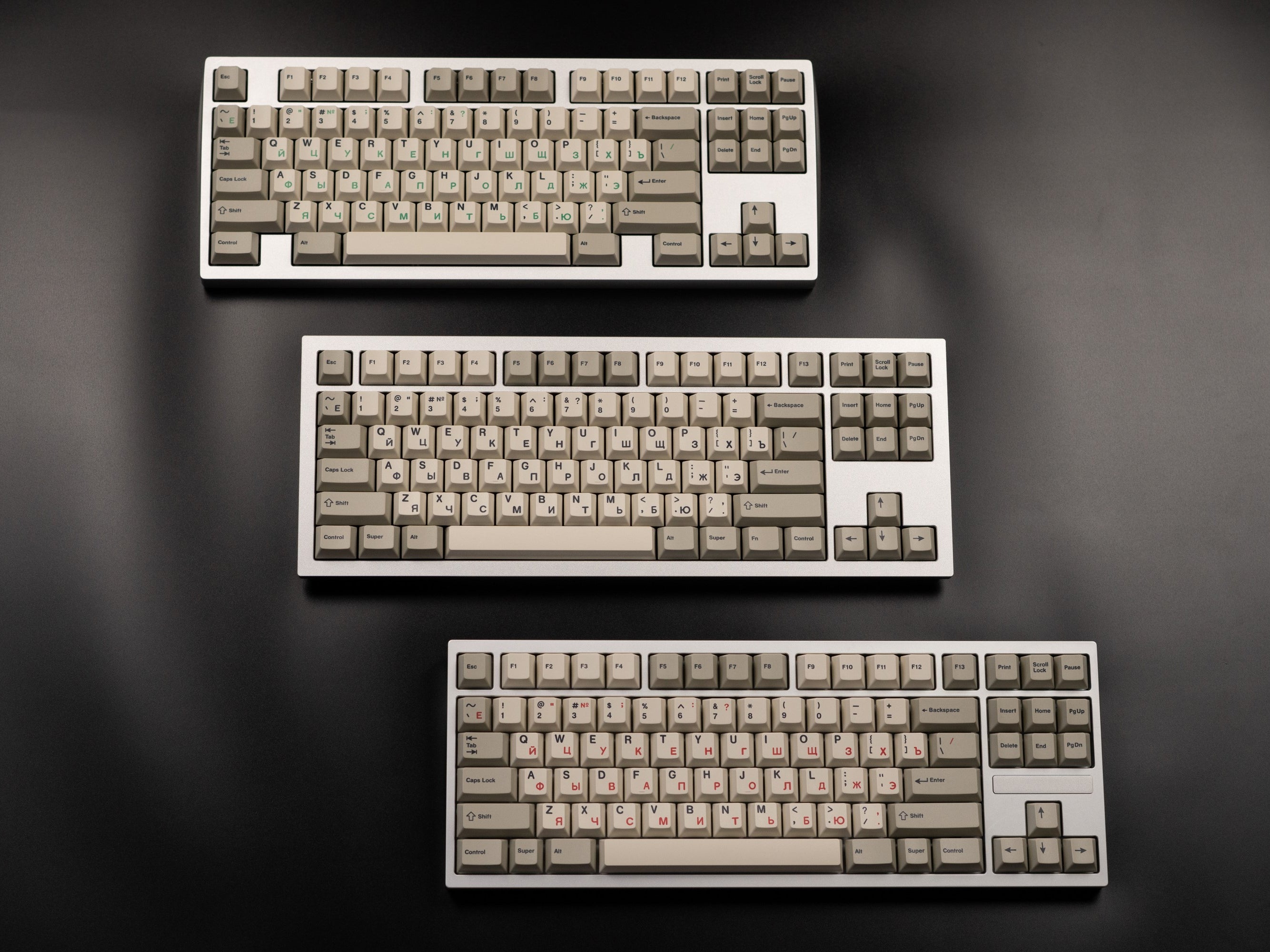 Each of our NicePBT and CannonCaps keycap sets are a singular kit, with compatibility for most popular keyboard layouts (and even some obscure ones)!