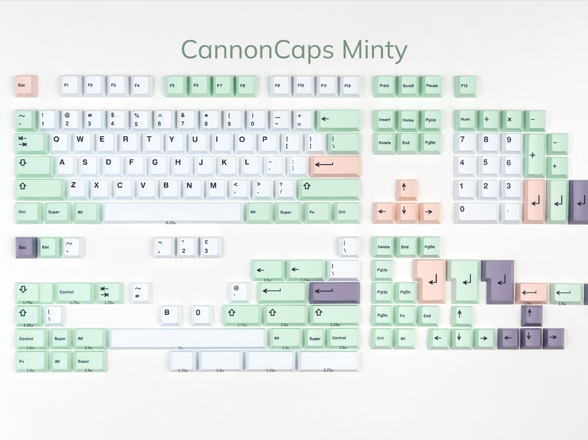 Each of our NicePBT and CannonCaps keycap sets are a singular kit, with compatibility for most popular keyboard layouts (and even some obscure ones)!