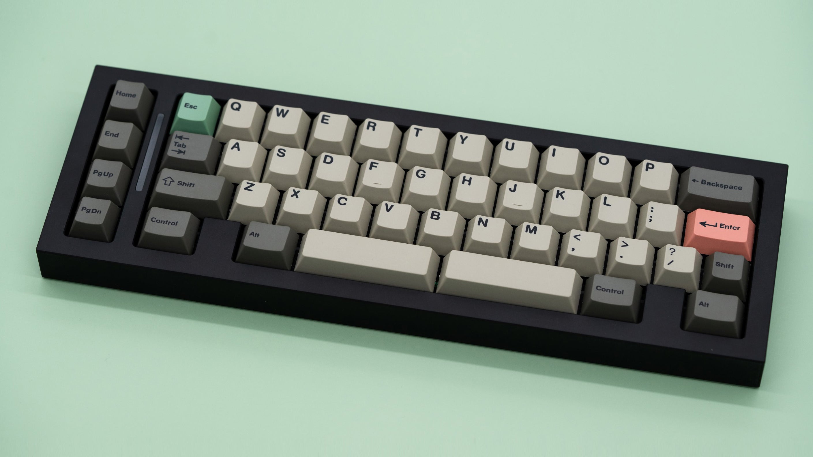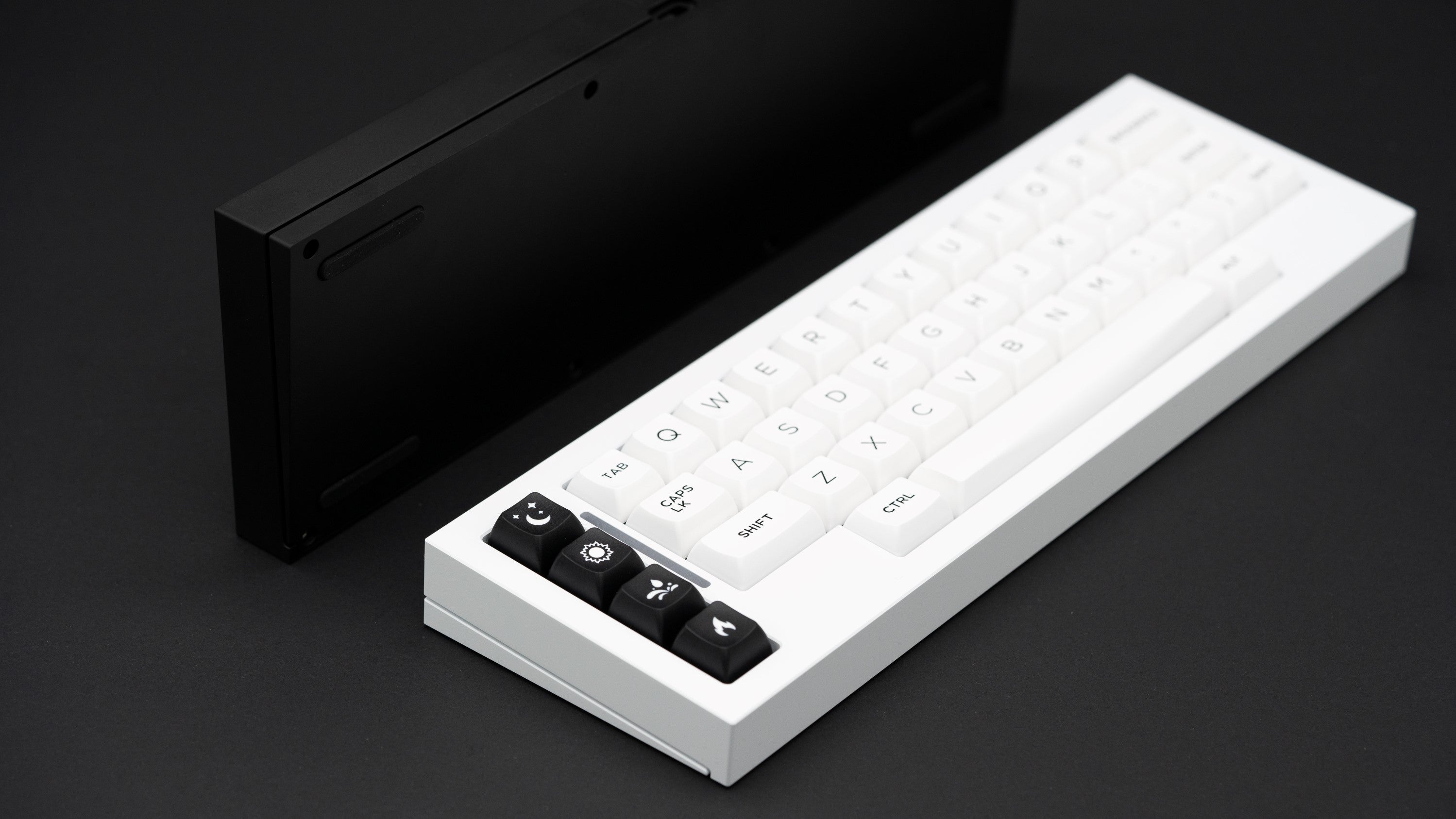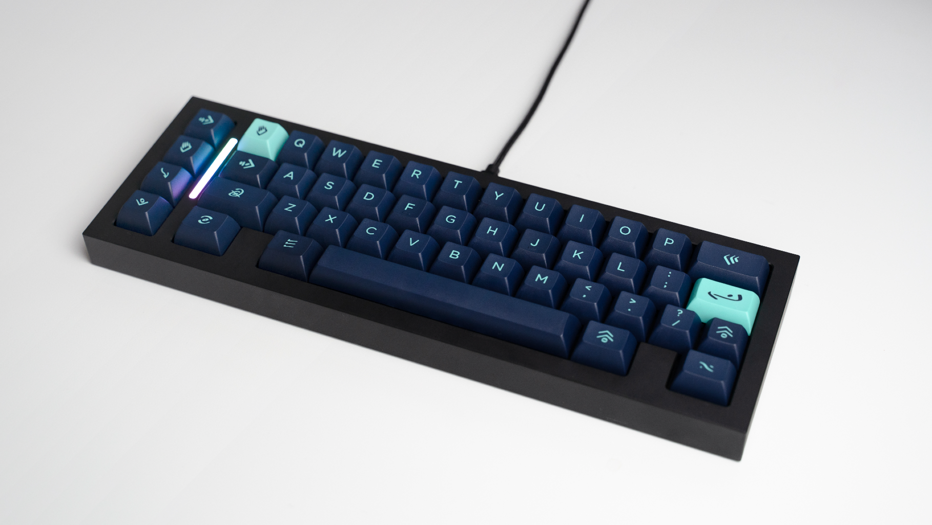The DD-40 by dededecline is a 12.75u wide gasket mounted 40% keyboard with an RGB LED strip sandwiched between the macro-column and main alpha cluster. Both WKL and HHKB top cases will be available, and the seamed design allows for a two-tone case via available extra tops.