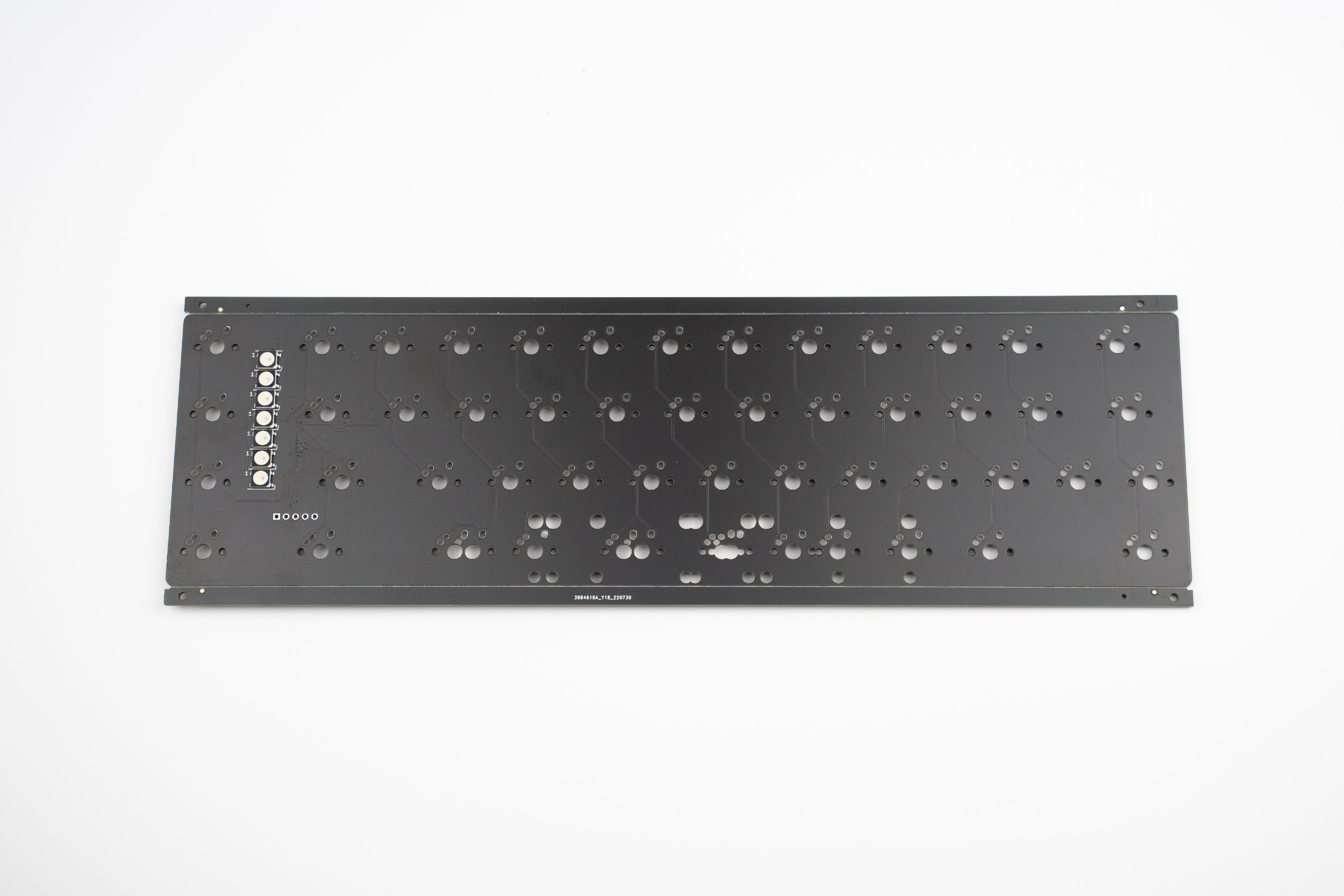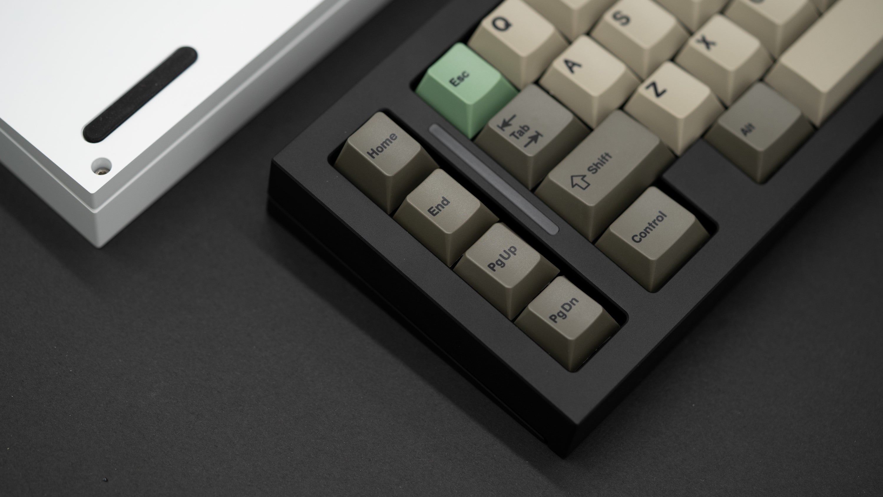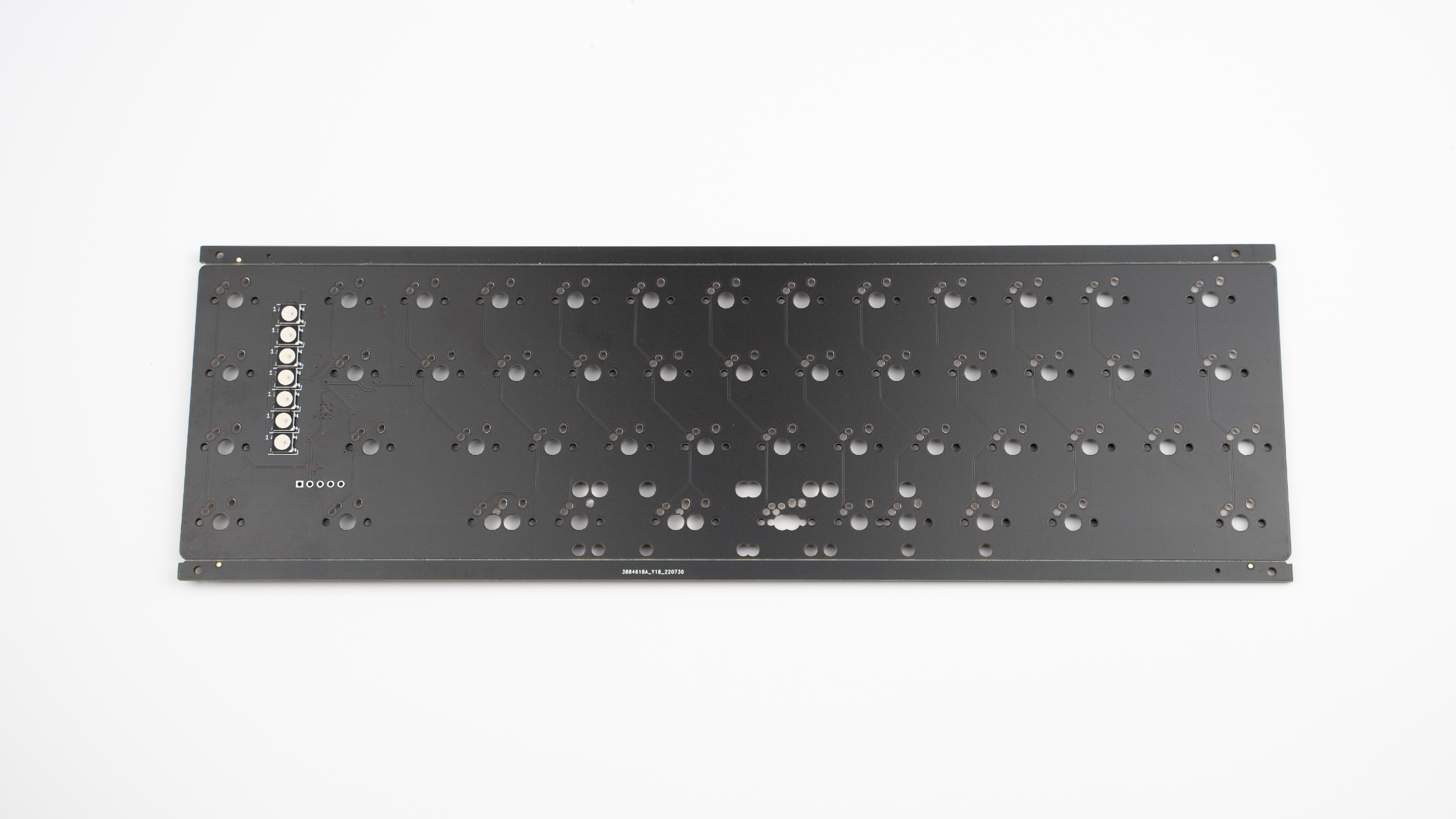 The DD-40 by dededecline is a 12.75u wide gasket mounted 40% keyboard with an RGB LED strip sandwiched between the macro-column and main alpha cluster. Both WKL and HHKB top cases will be available, and the seamed design allows for a two-tone case via available extra tops.