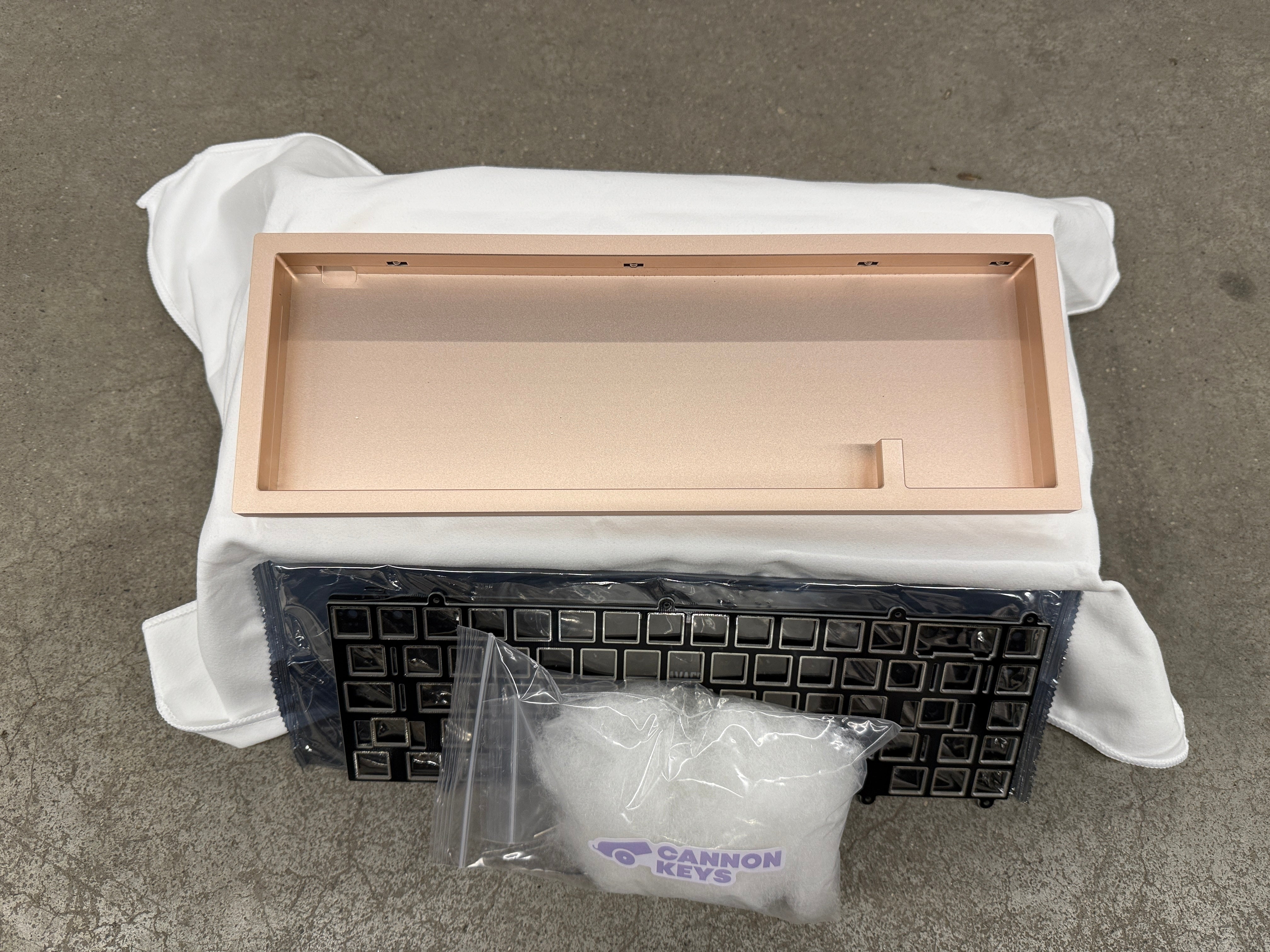 Used for content creator build. FR4 build, everglide stabs, plate/pcb/case foam, and USB-A to USB-C cable. Tri-mode hotswap PCB.