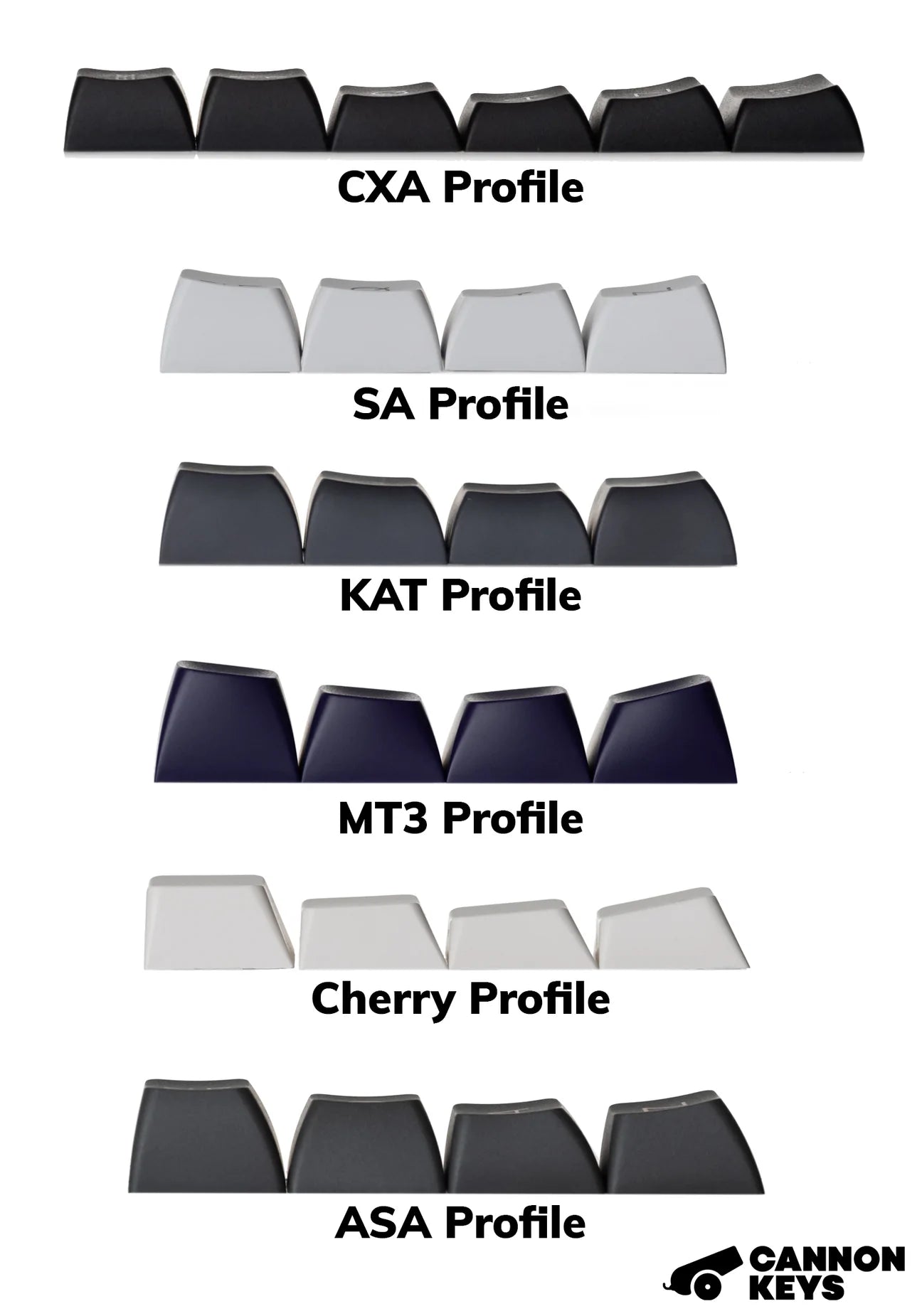 Experience the CannonKeys advantage first-hand with our NicePBT and CannonCaps keysets. Featuring thick blanks, crisp dyesubbing, aesthetic variety, and reasonable prices that help complete and customize your keyboard builds.