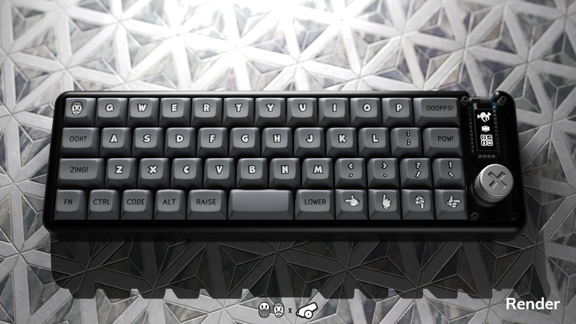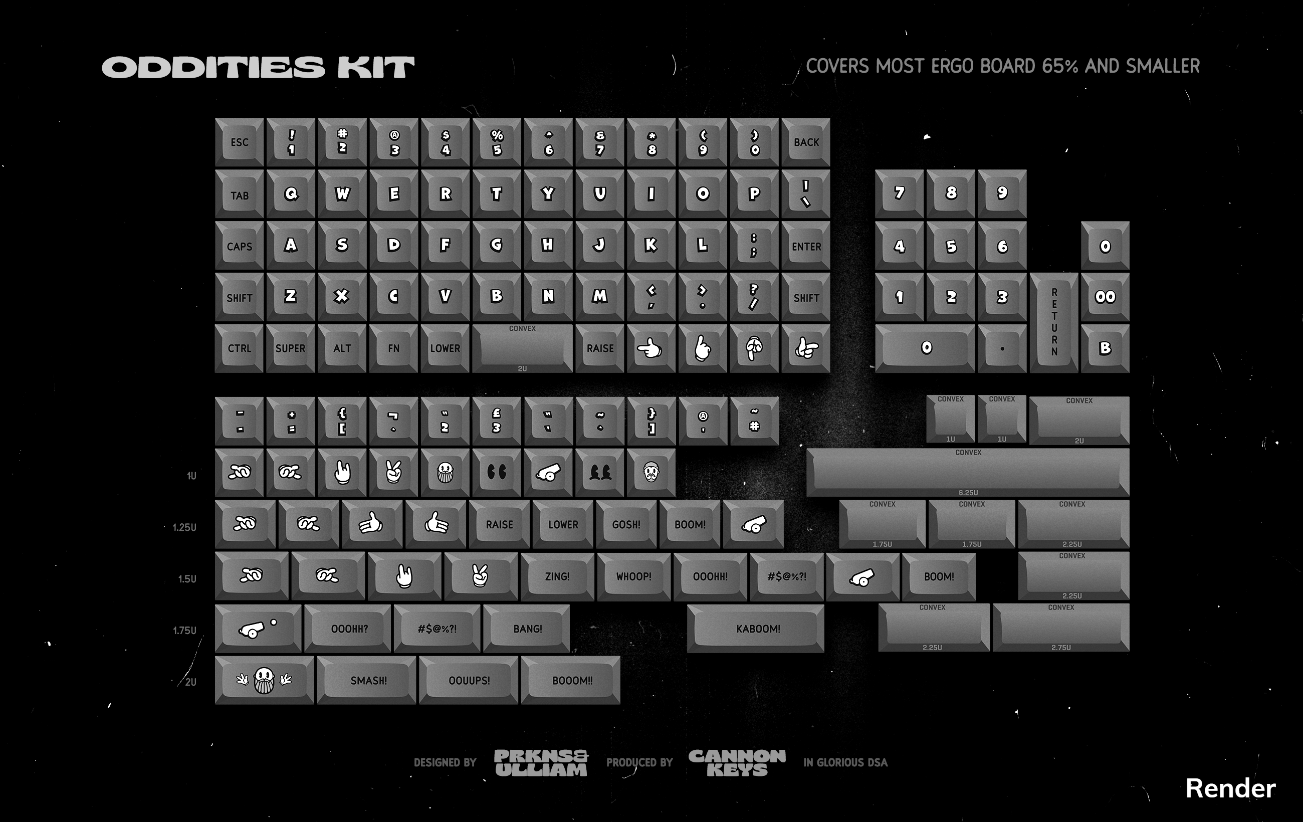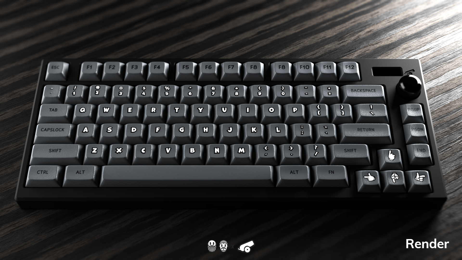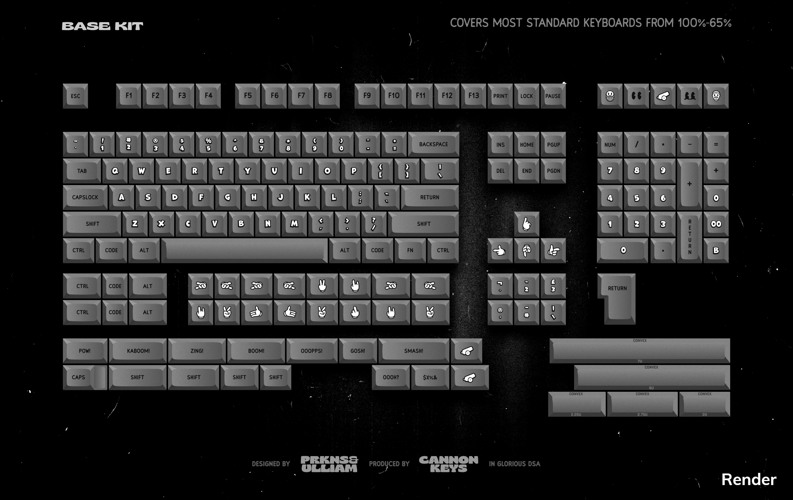 Shown in the photos here are both renders AND sample set images. You can see closeups of the laser engraving and what the actual keys look like!