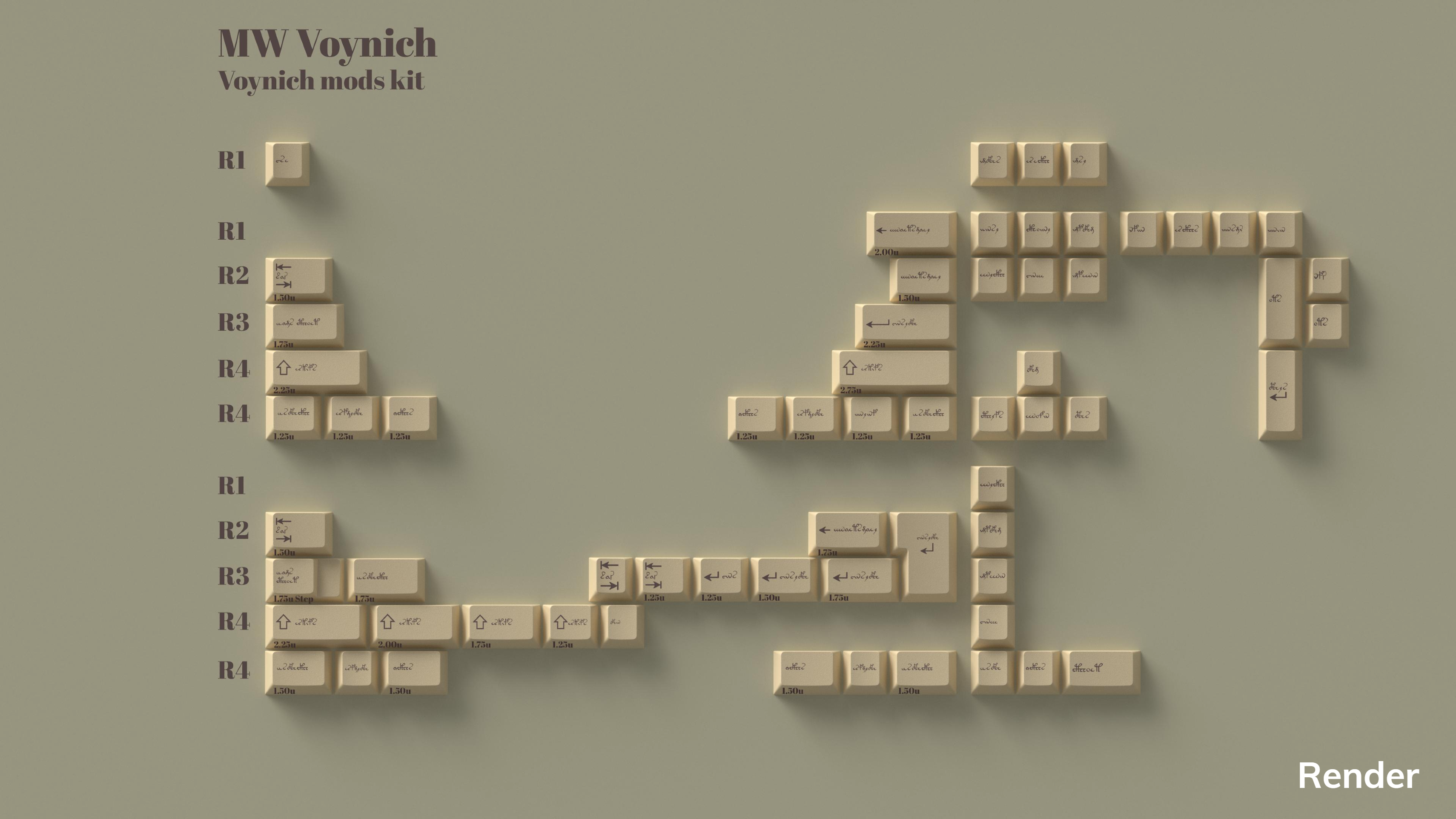 Designed by dededecline, this set brings the elegant and mysterious Voynich Manuscript to your keyboard! The creamy alphas are legended with Voynichese, for a stunning interpretation of the centuries old document.