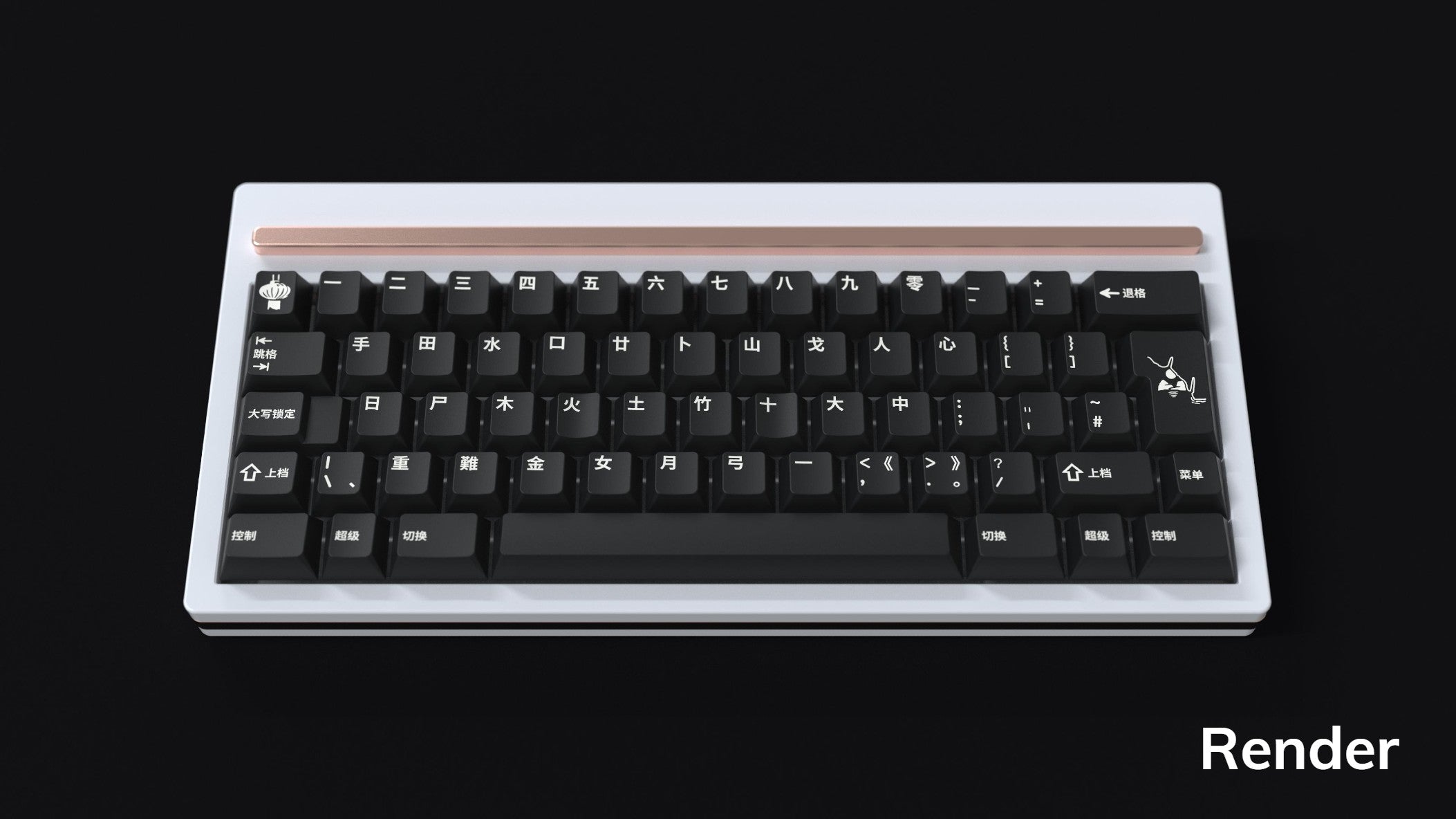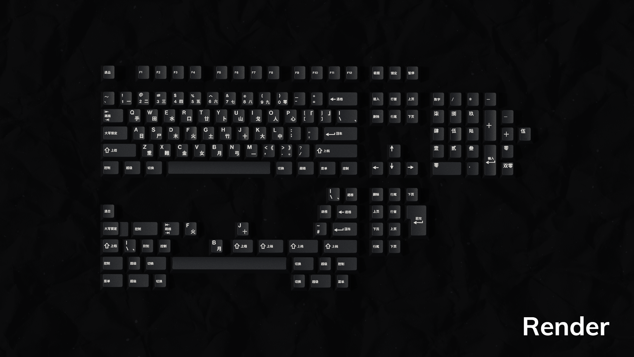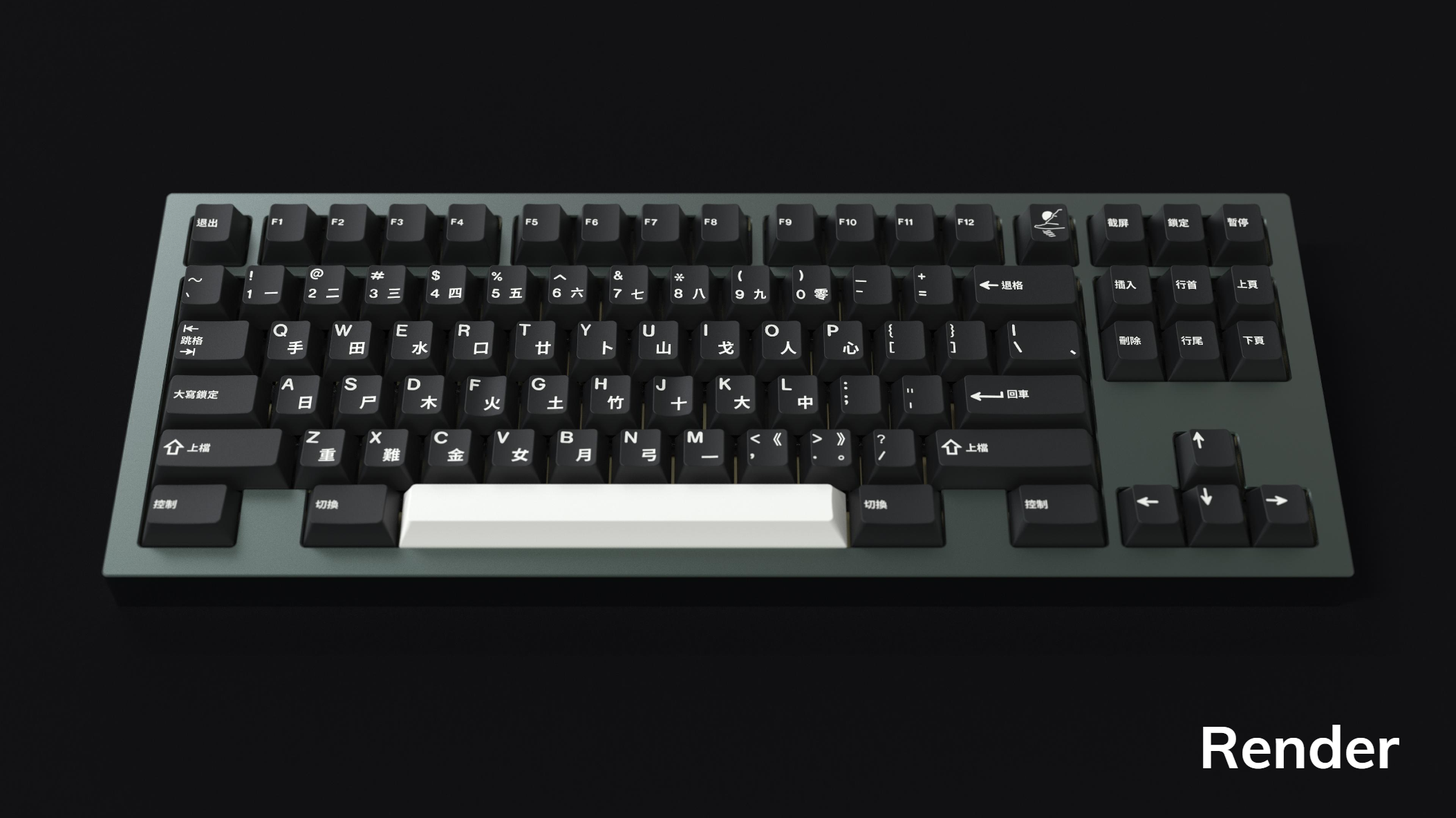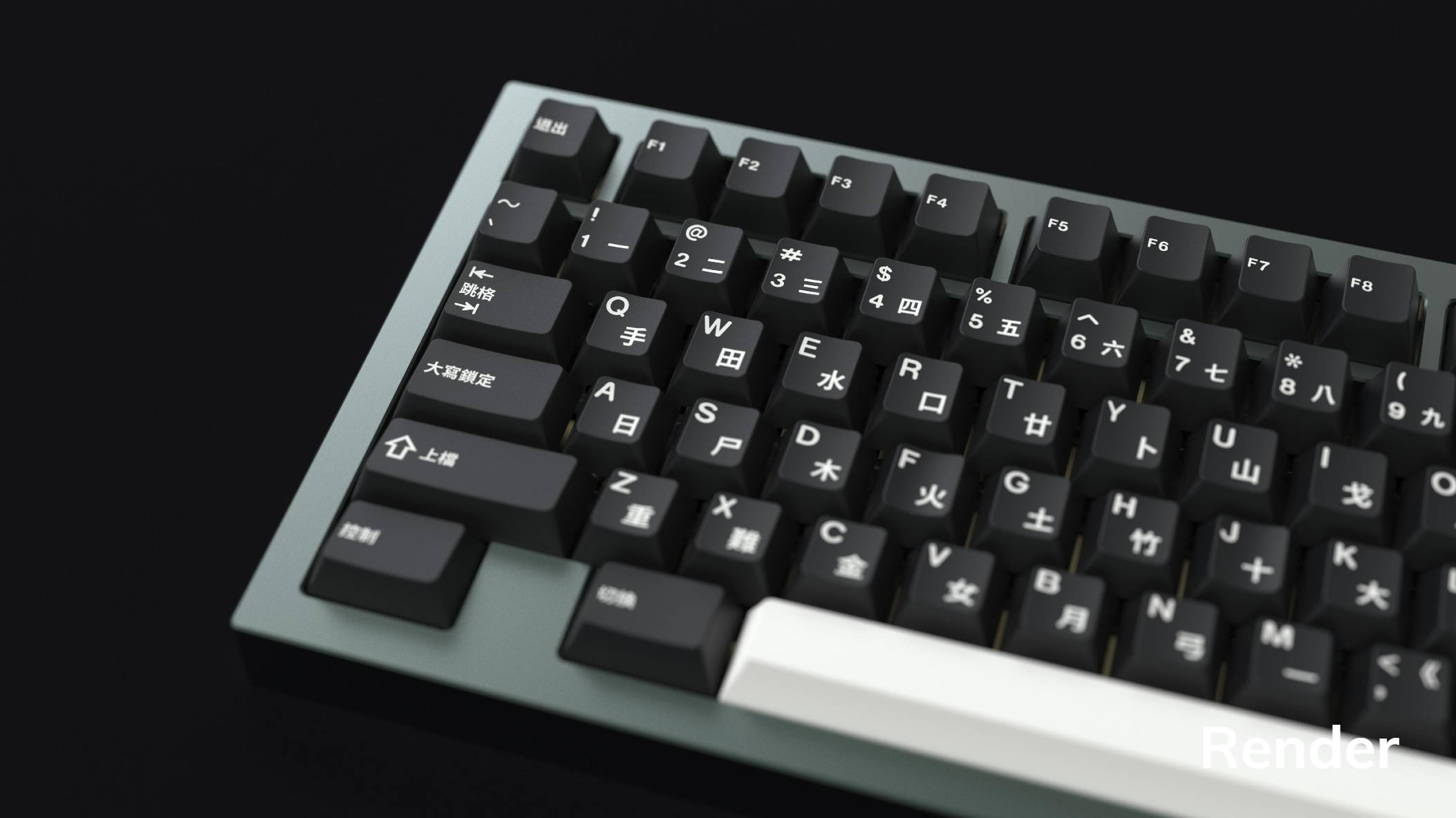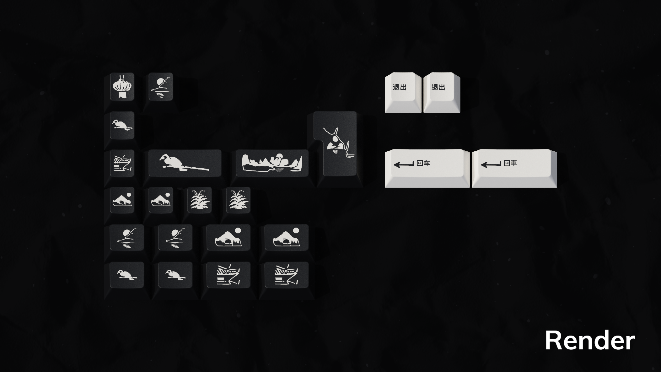 From designers grundlemere and NathanAlphaMan comes GMK Shanshui! Featuring the classic White on Black colorway, GMK's WS1 on CR - this set brings Chinese characters to GMK keycaps for the first time. Base kits are offered in either Simplified or Traditional Chinese characters, with mods in Chinese and sublegend alphas in the Cangjie input system, named for the legendary creator of the written Chinese language.