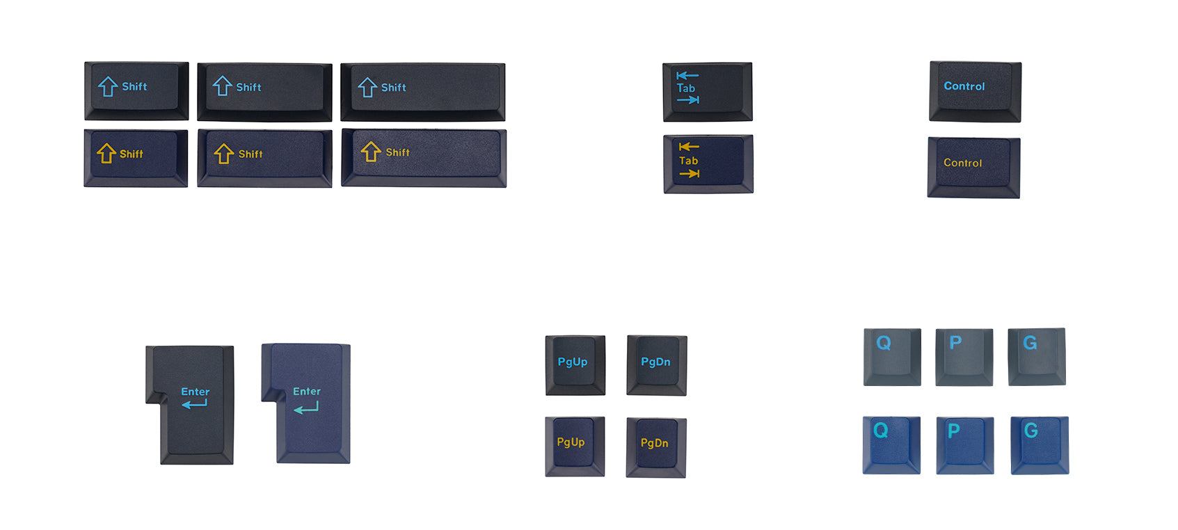 The Base Kit is extremely robust, offering split spacebars, ISO support, and 3-key 40s. Also being sold are a sea themed Novelty Kit, and an extensive 40s Kit.
