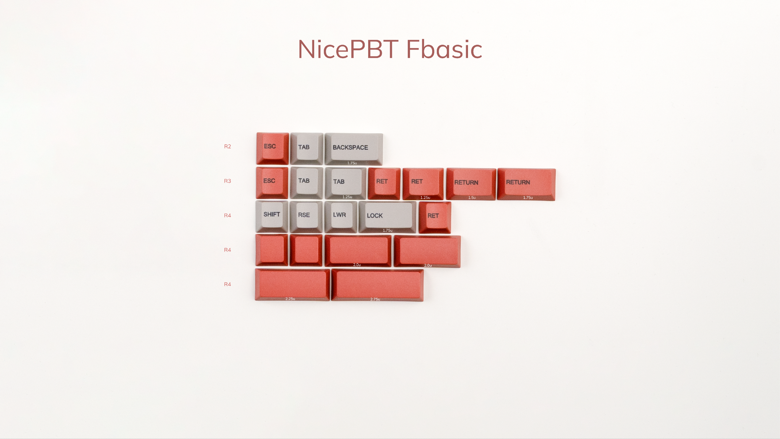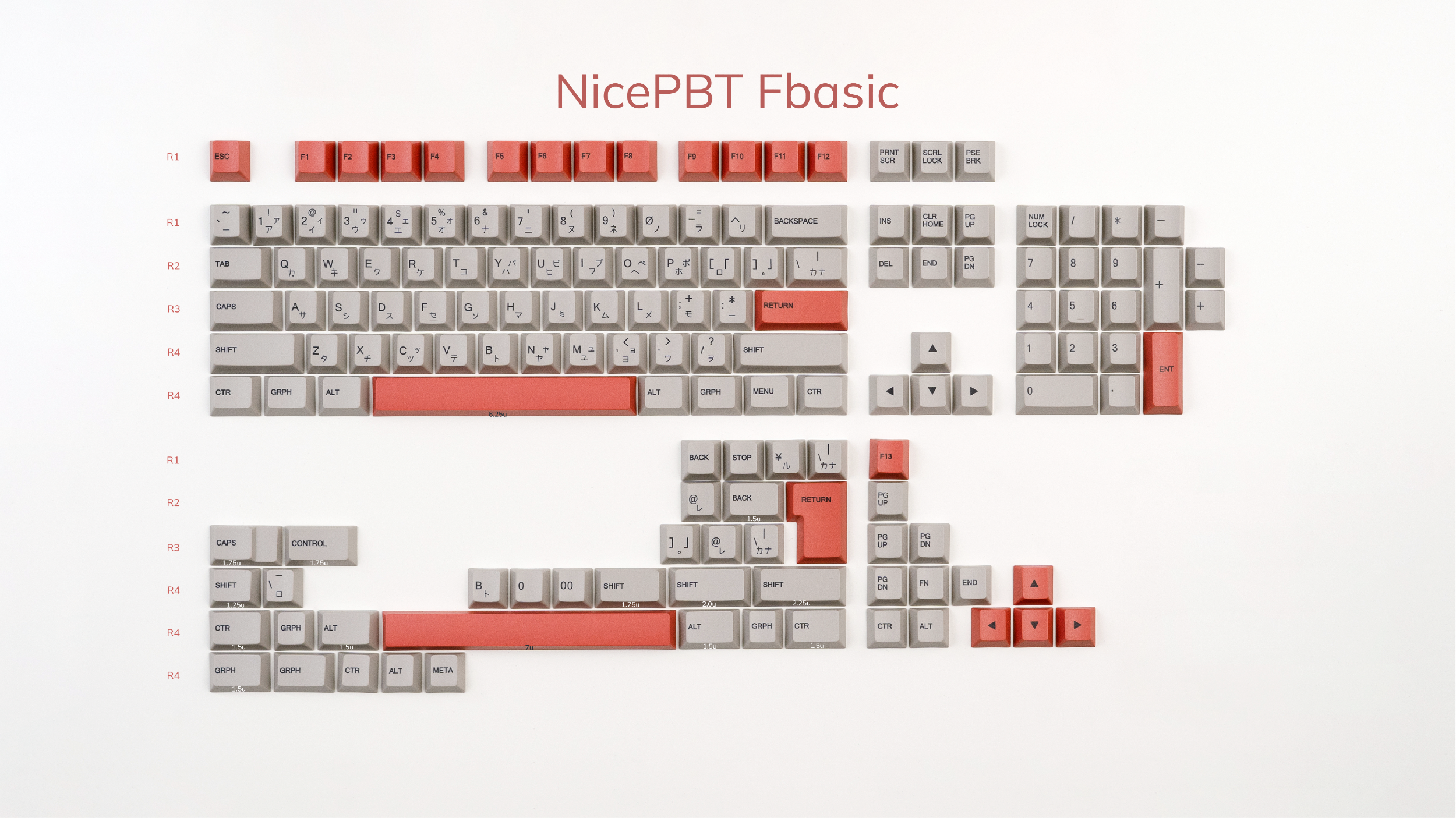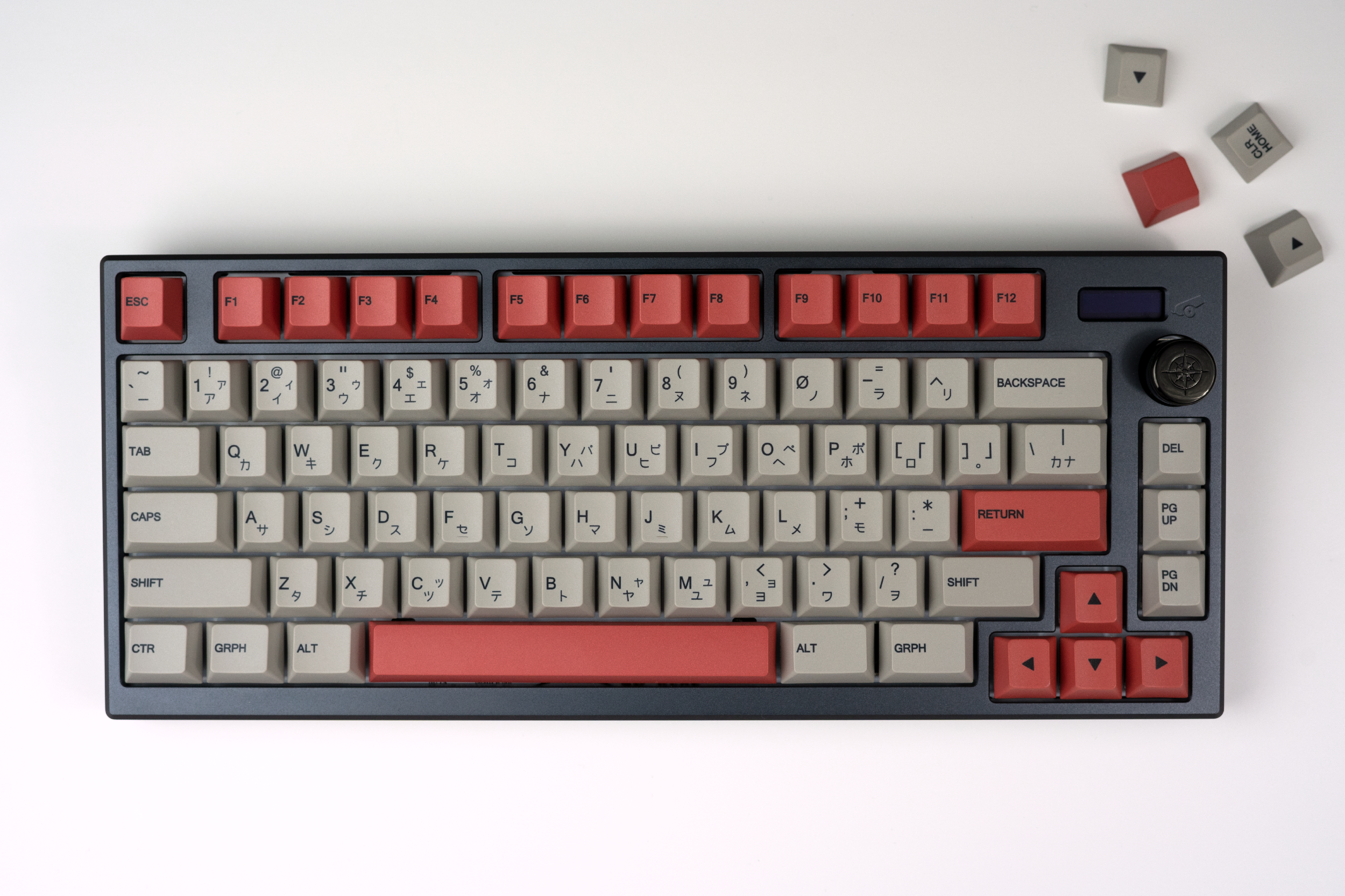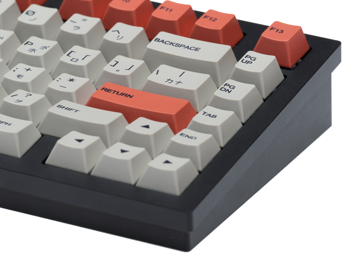 This set was inspired by the Family Basic keyboard and features beige alphas accented by a muted red for a retro theme. The Katakana sublegends add some utility and complete the aesthetic. The kit even includes split spacebars, a second 'B' for all the Alice-style keyboards, and robust 40's/ortho support!