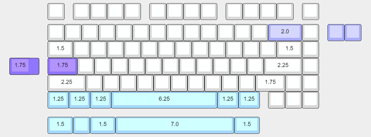 - 3x2u + 1x7u or 1x6.25u stabilizers