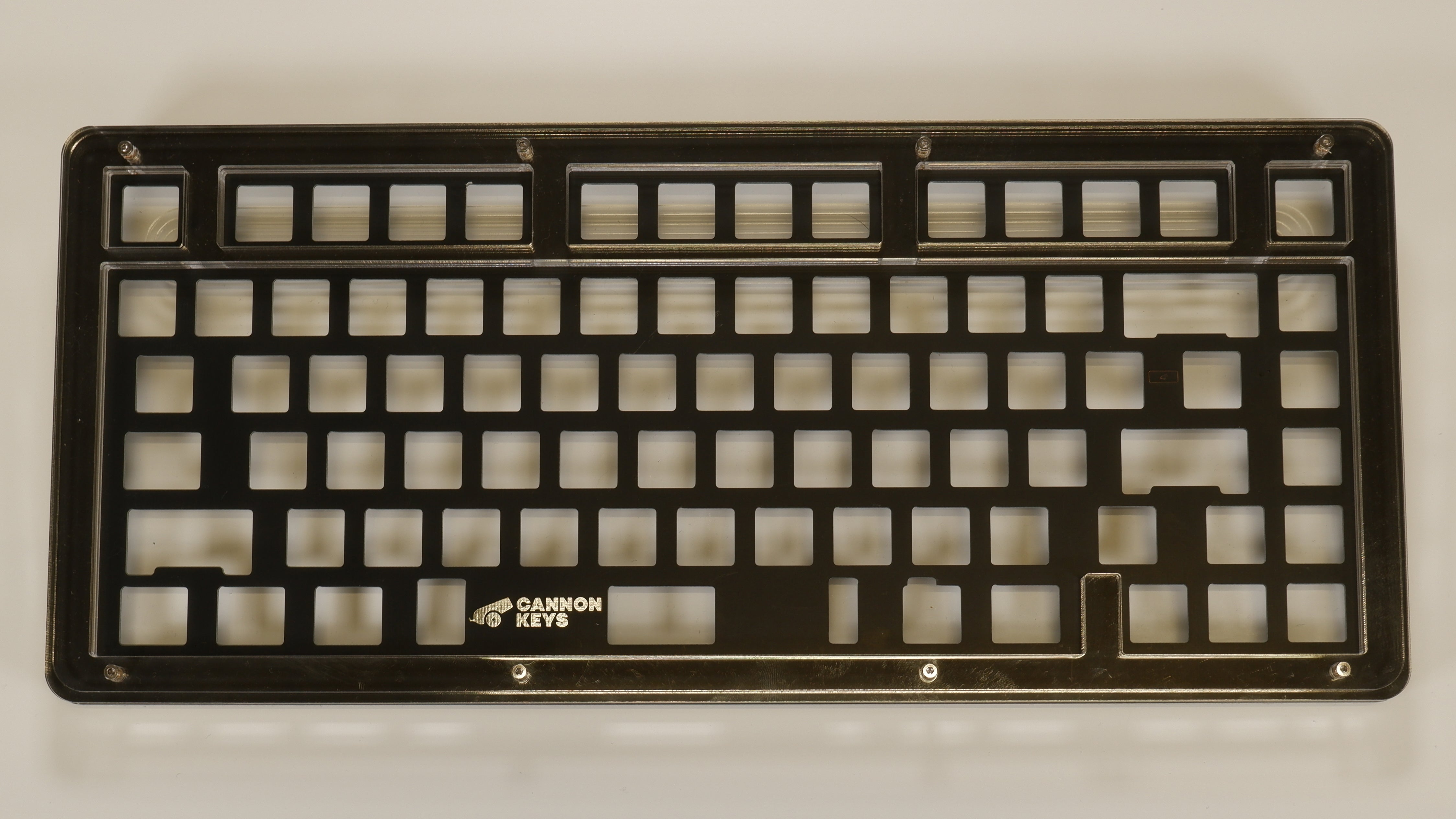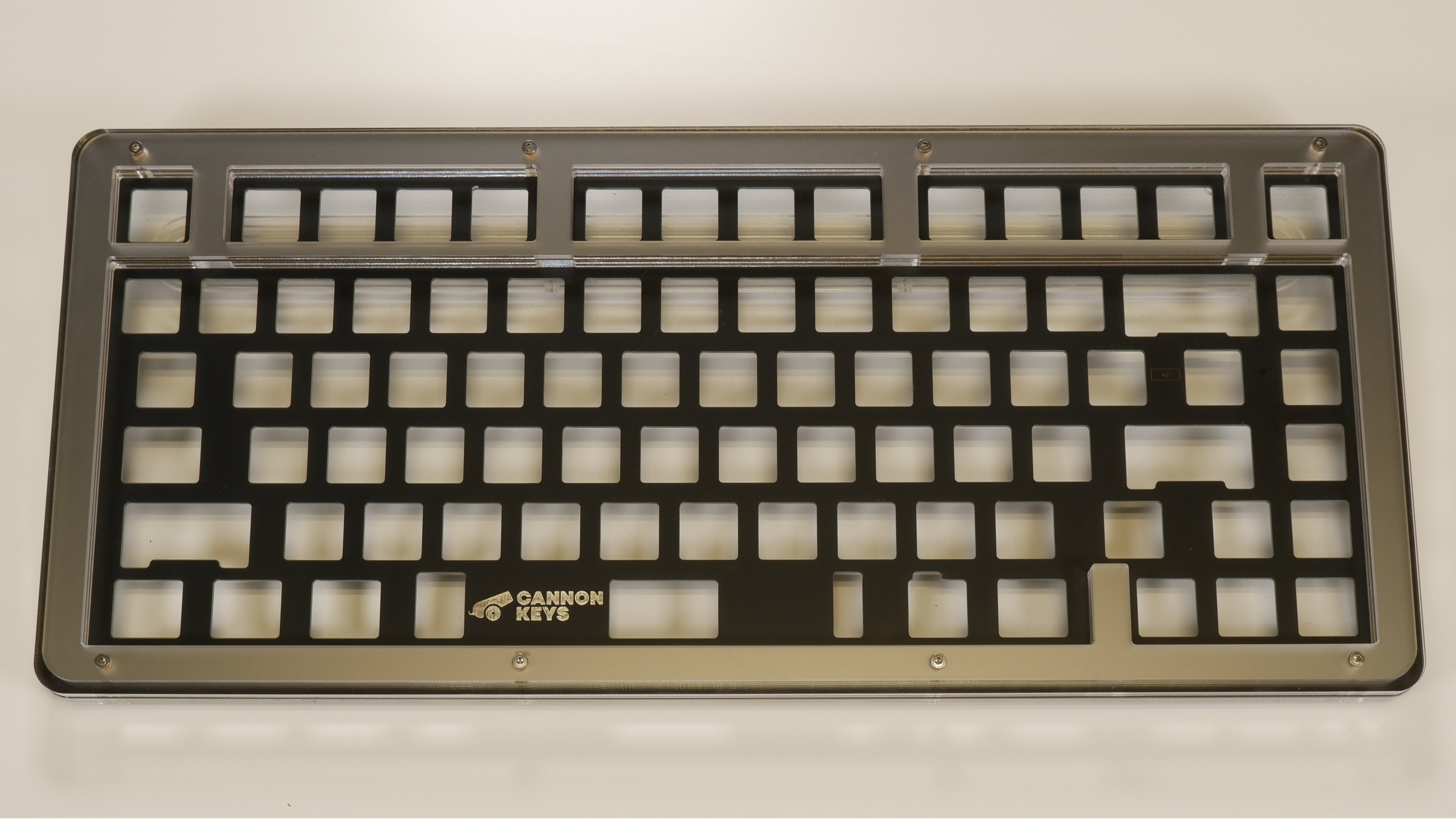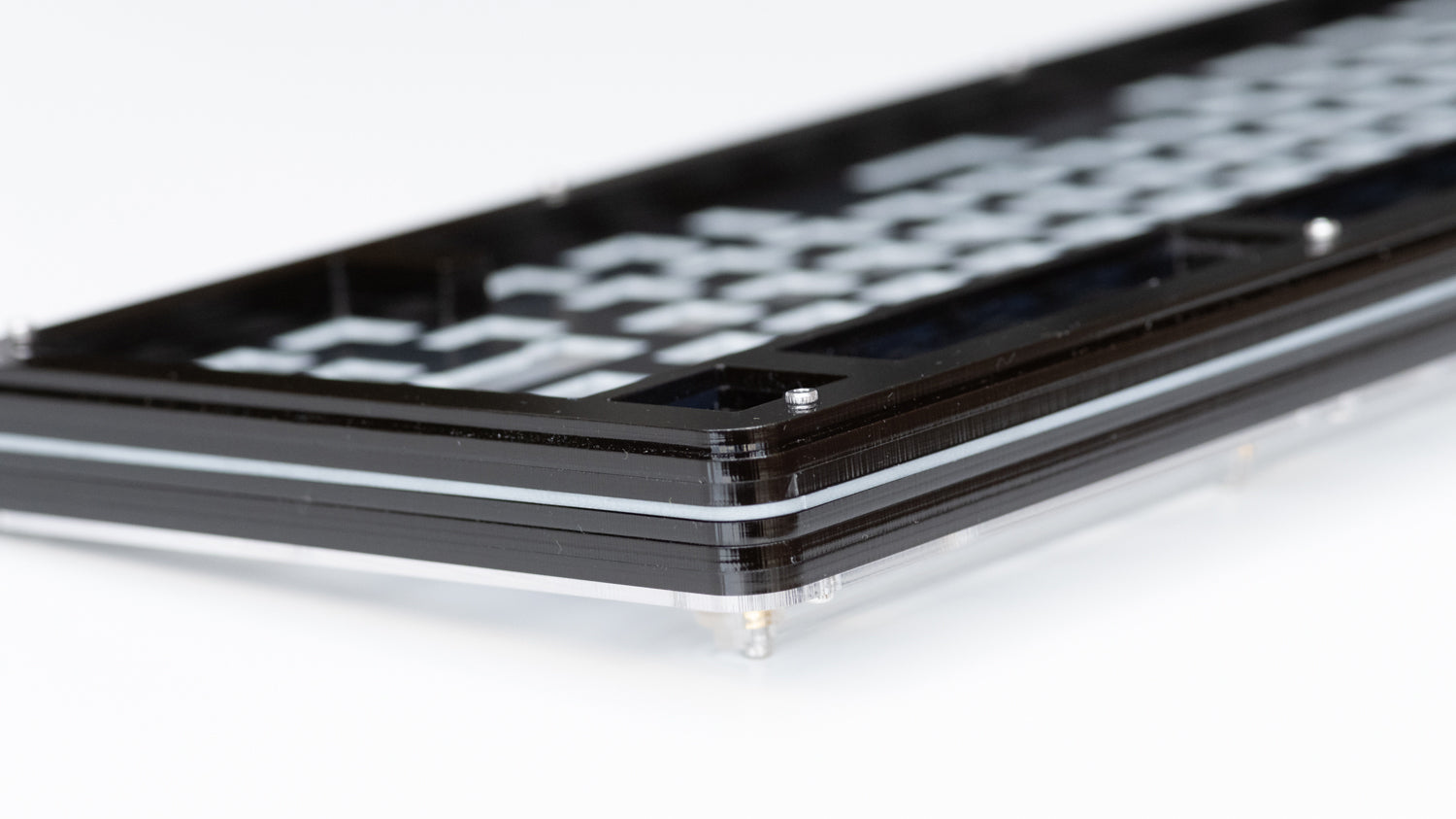 The Stacked75 keyboard kit in our Stacked Series of in stock keyboards. Using layers of acrylic, these keyboards offer both a unique sound profile and aesthetic in a fun to build package!