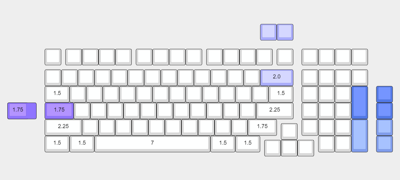 - 5x2u + 1x7u or 1x6.25u stabilizers