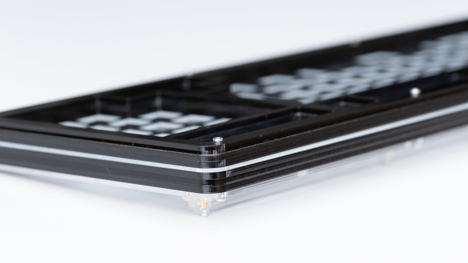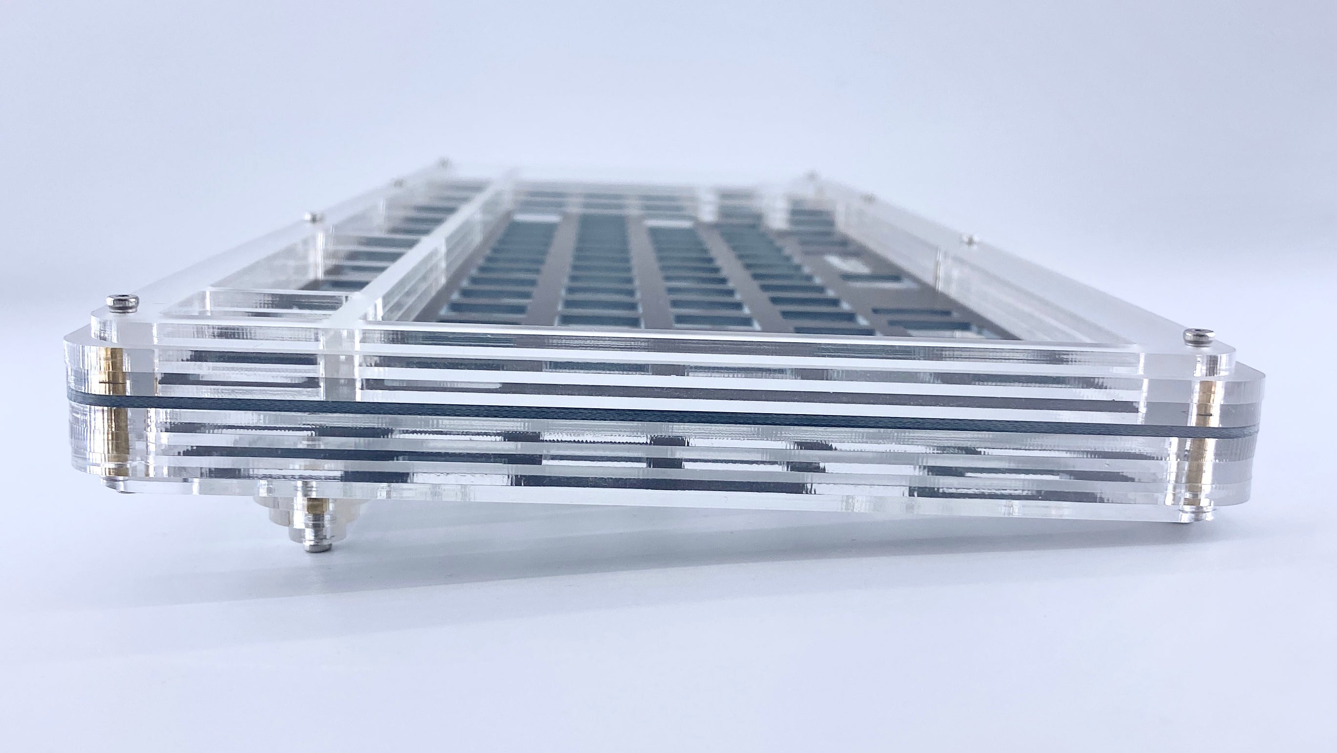 The Stacked1800 keyboard kit in our Stacked Series of in stock keyboards. Using layers of acrylic, these keyboards offer both a unique sound profile and aesthetic in a fun to build package!