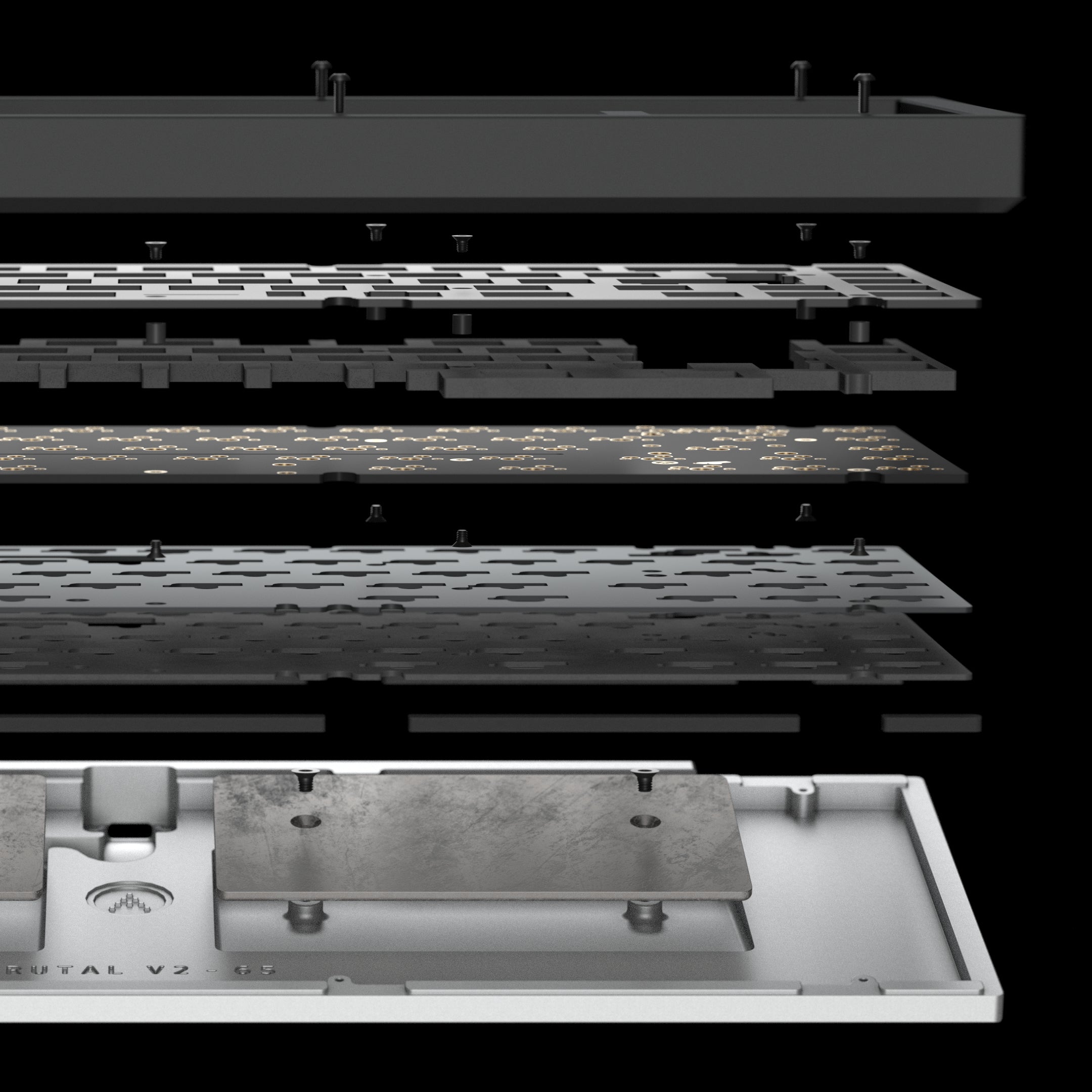 Keyboard case: Brutal V2 1800 in aluminum (CNC), three internal zinc weights (cast)