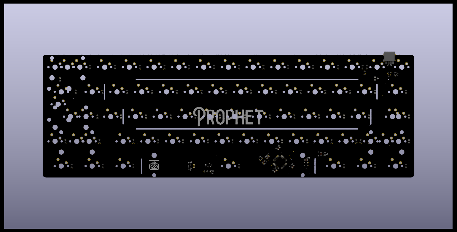 This is an extra Prophet PCB. The PCB is Matte Black. The bottom row is fixed 7u.