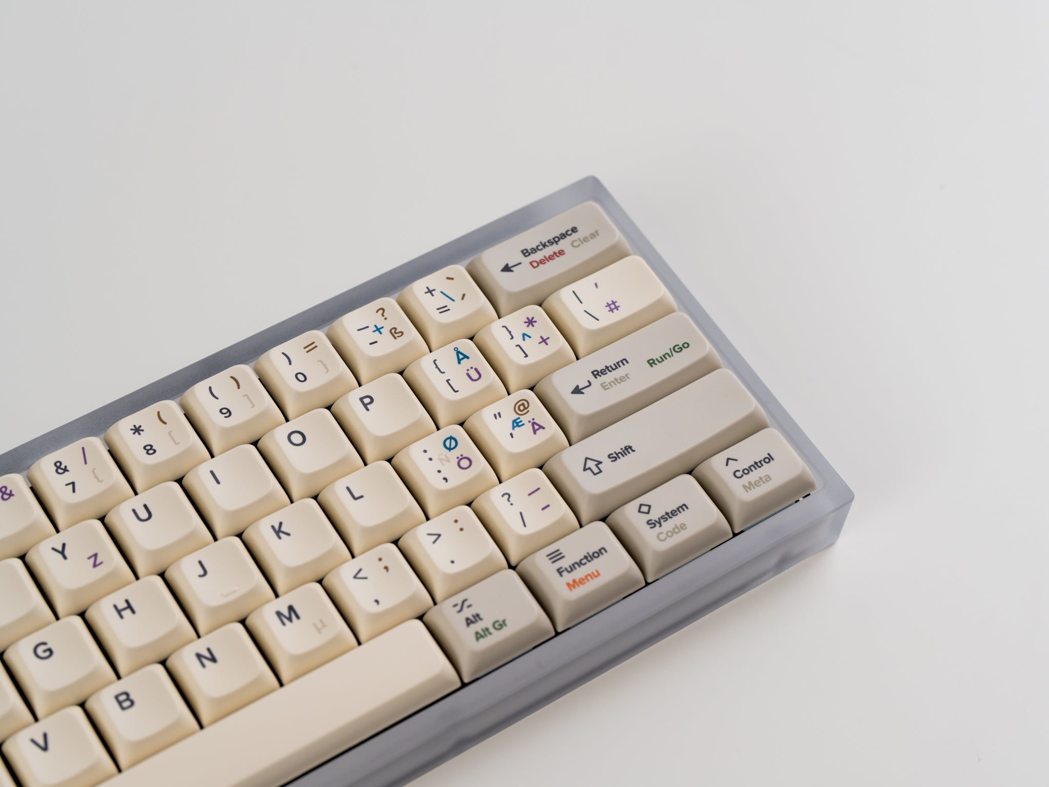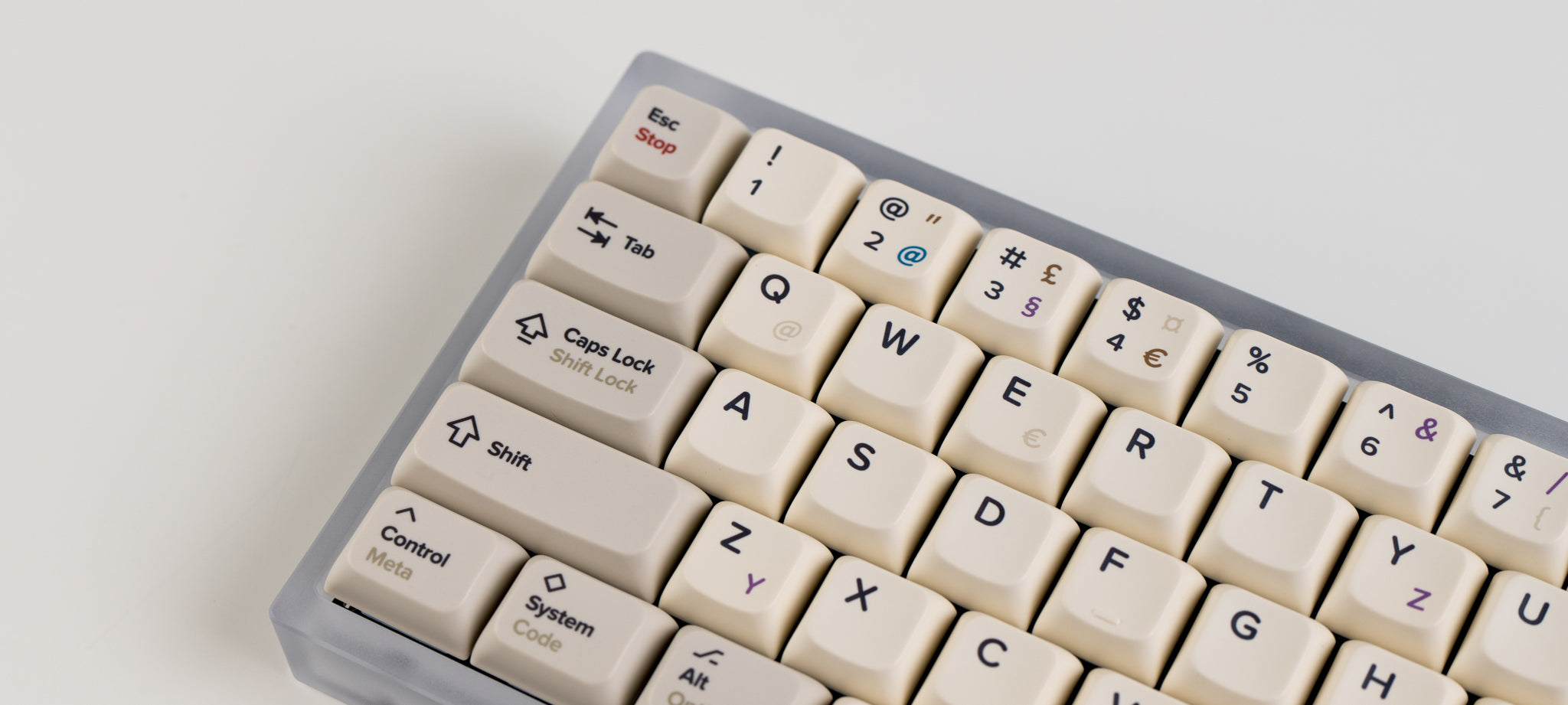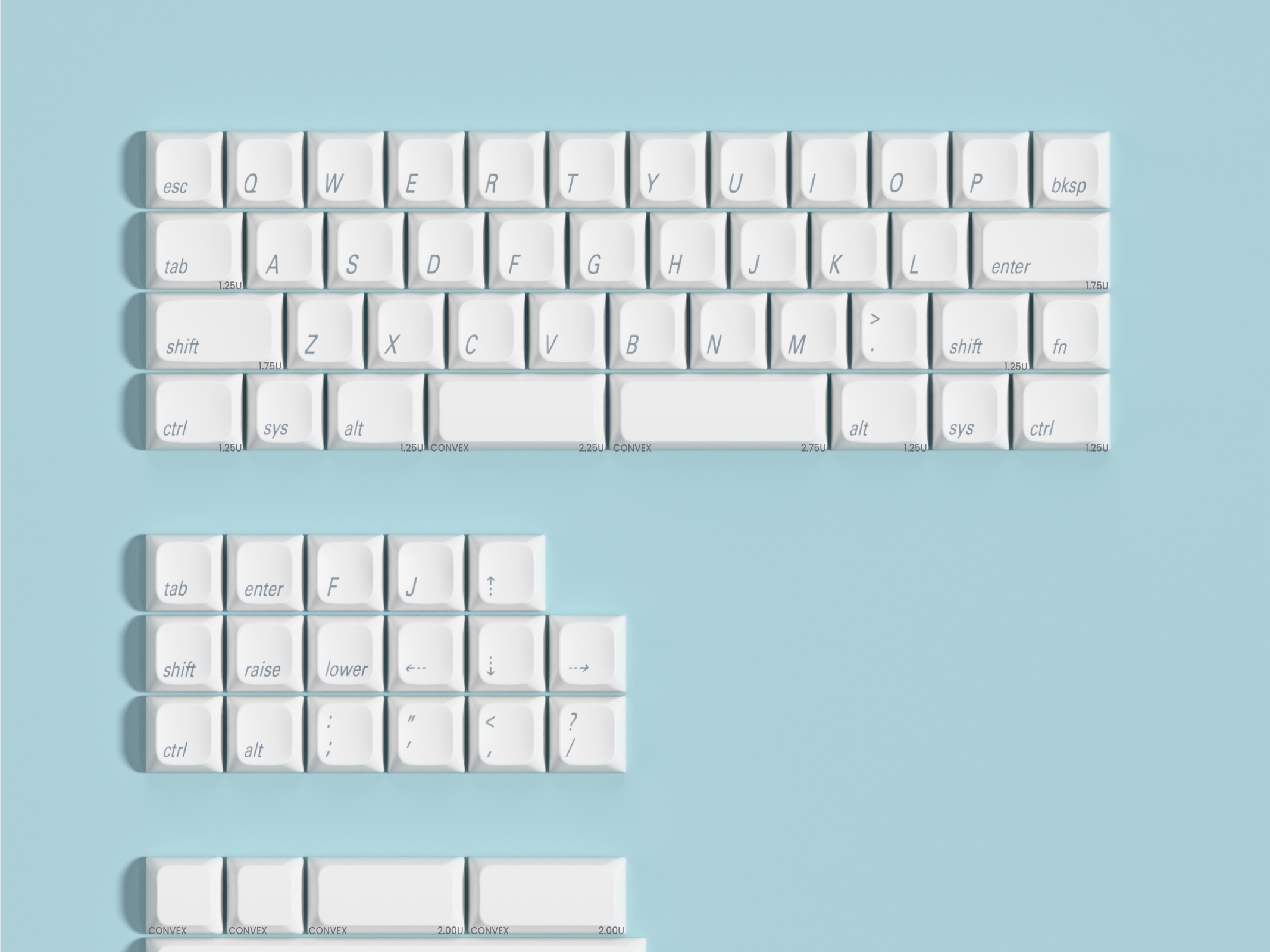 PBS uses a combination of a cylindrical front and back with a spherical top scoop. The result is a wide scooped contact area at the top, which enables a comfy and ergonomic typing experience.