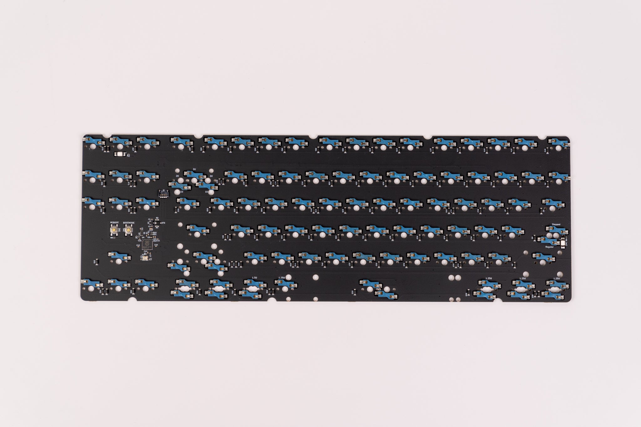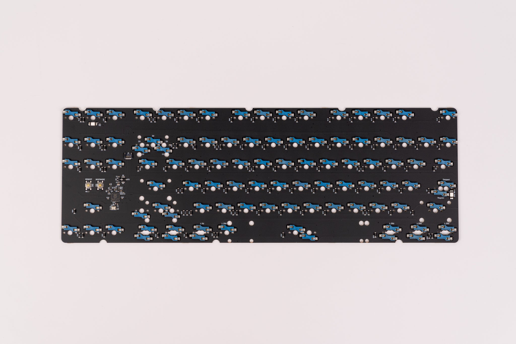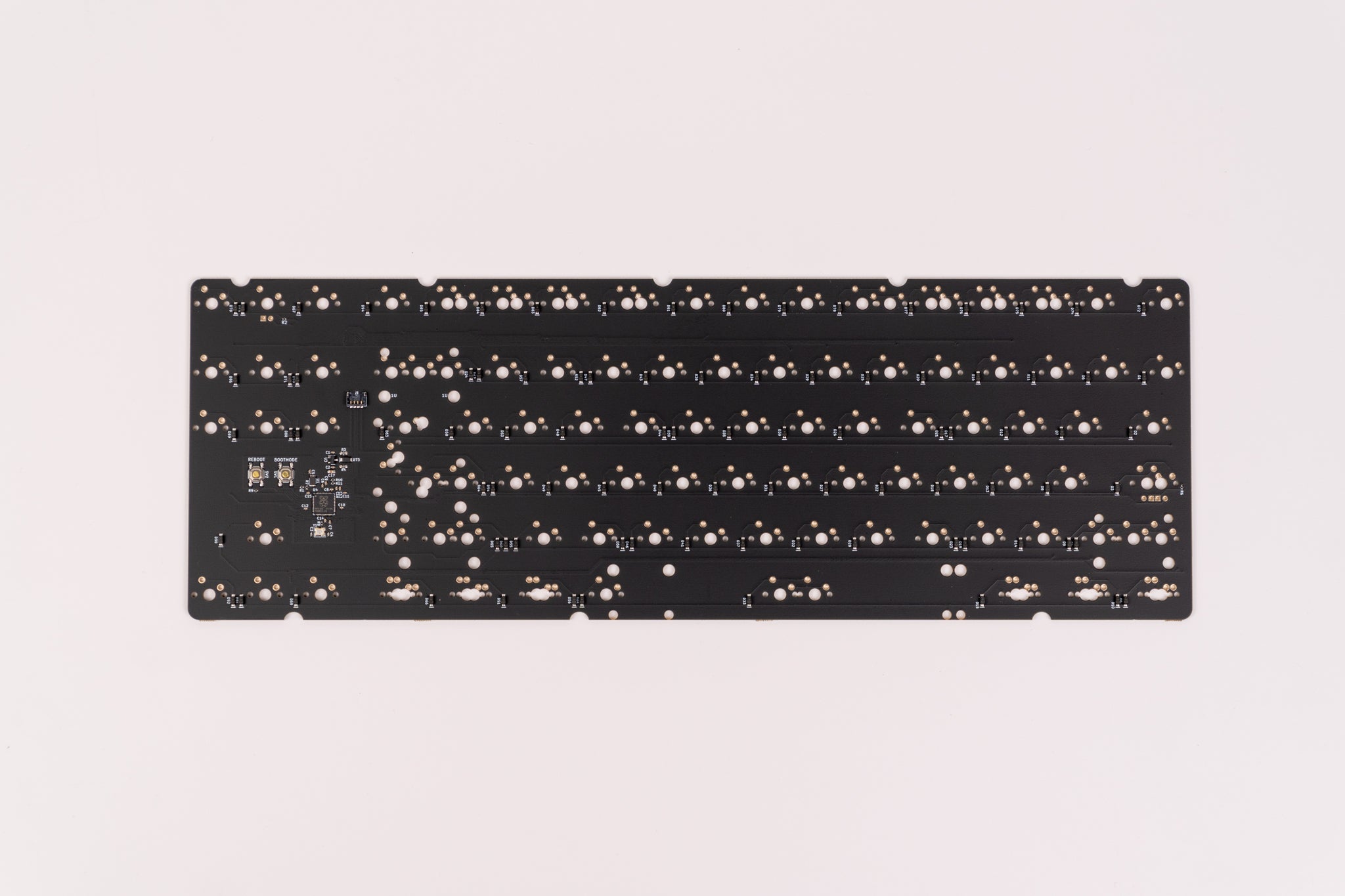 Onboard MCU PCBs to be used in keyboard cases, as well as extra PCBs from previous projects. Some of our PCBs are available in both hotswap and solderable configurations. While solderable PCBs offer more layout support, hotswap features unrivaled convenience by removing the need to solder altogether! Most of our PCB offerings are meant to be used with our Brutalist Series or our other Keyboard Kits, and our intent is to try to keep these in stock.