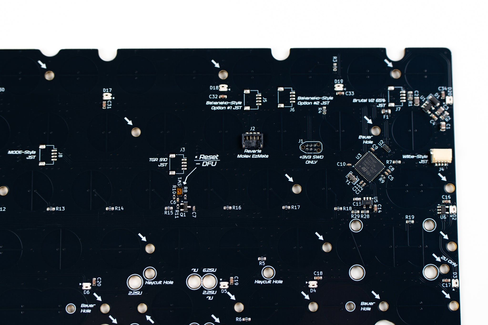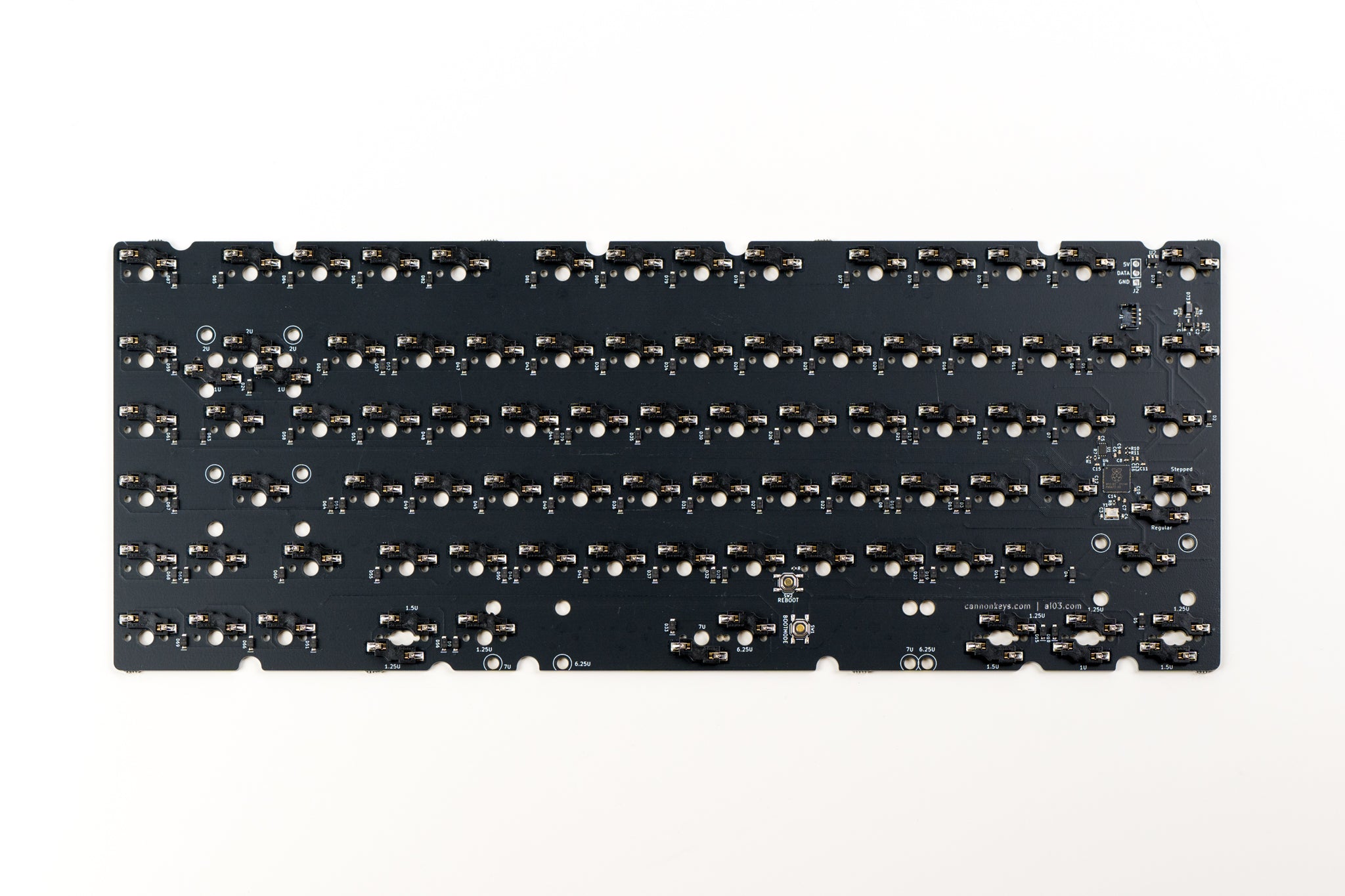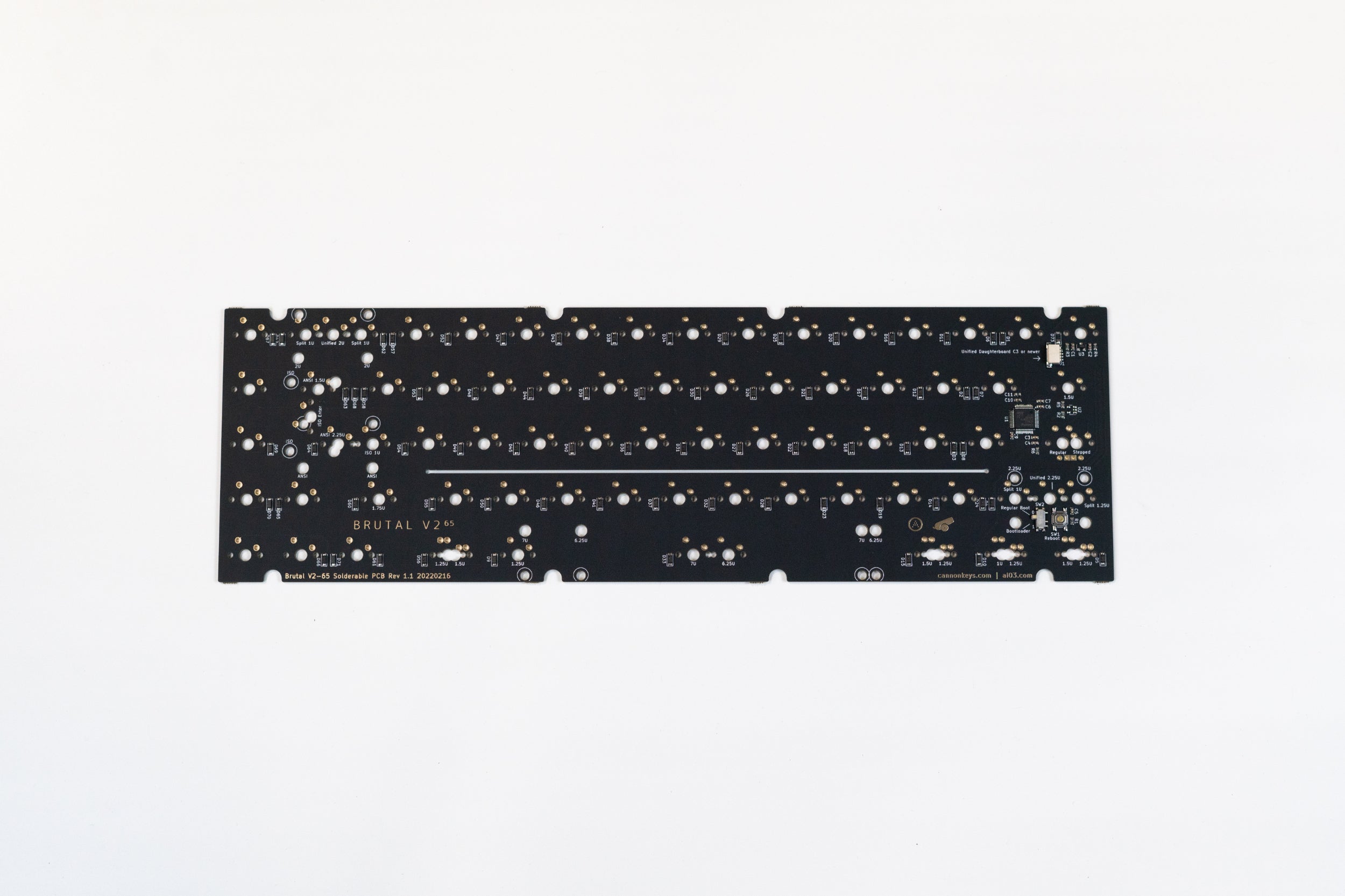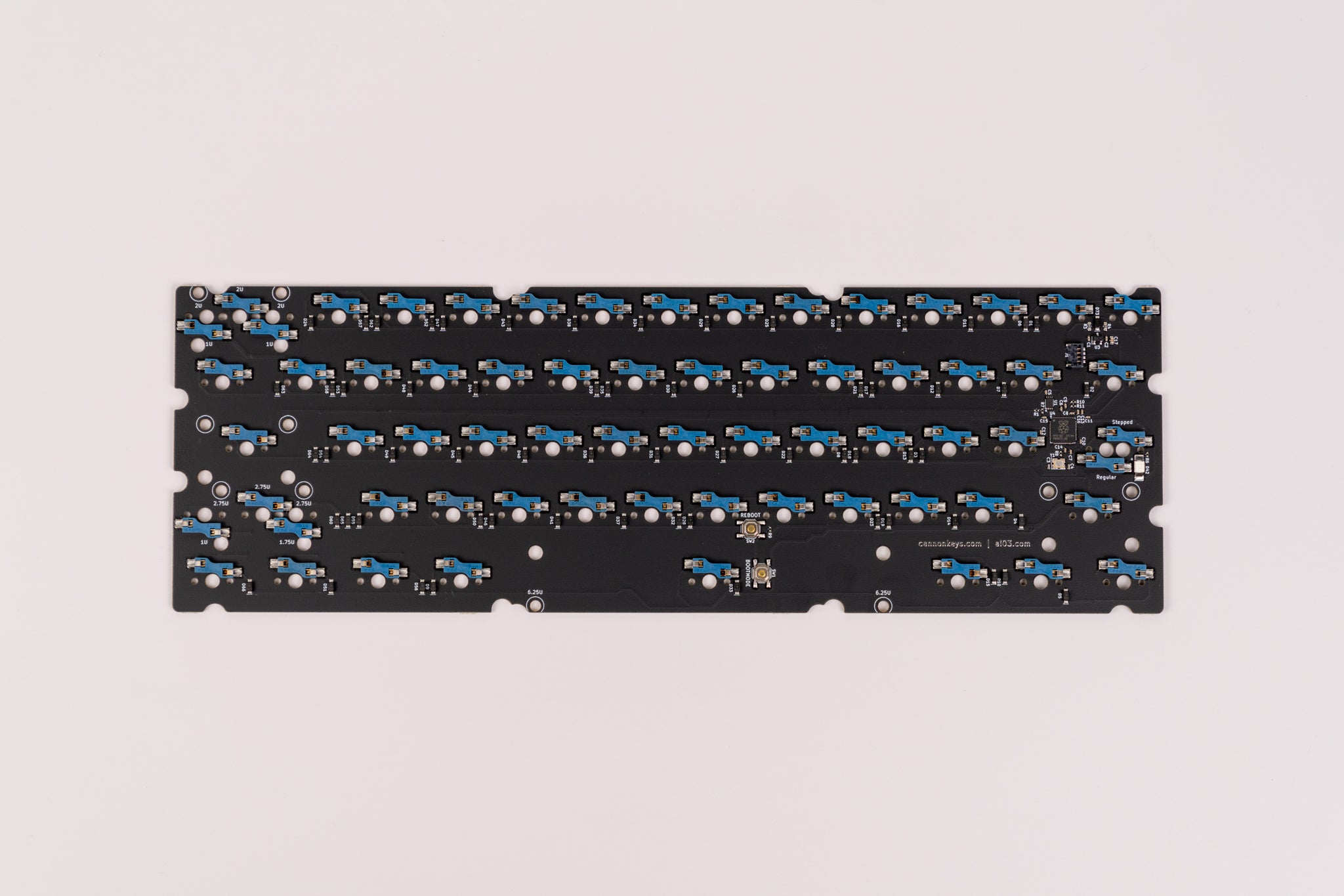 Onboard MCU PCBs to be used in keyboard cases, as well as extra PCBs from previous projects. Some of our PCBs are available in both hotswap and solderable configurations. While solderable PCBs offer more layout support, hotswap features unrivaled convenience by removing the need to solder altogether! Most of our PCB offerings are meant to be used with our Brutalist Series or our other Keyboard Kits, and our intent is to try to keep these in stock.