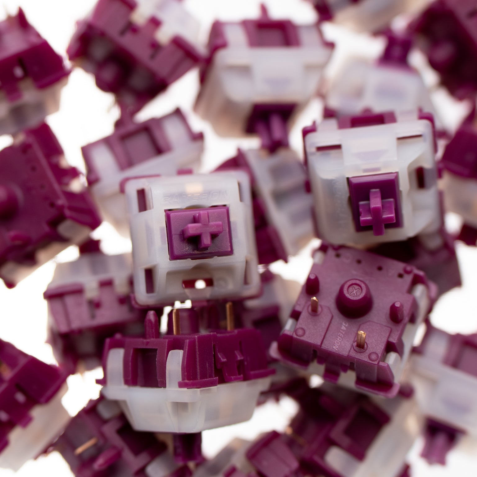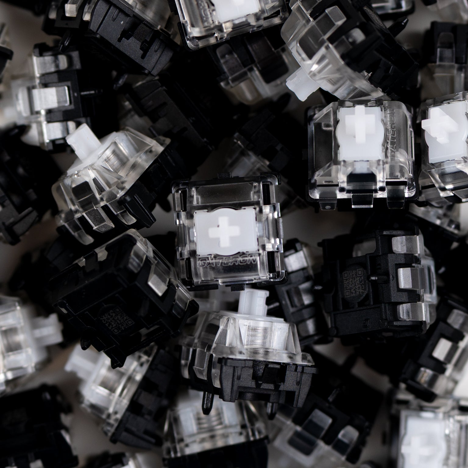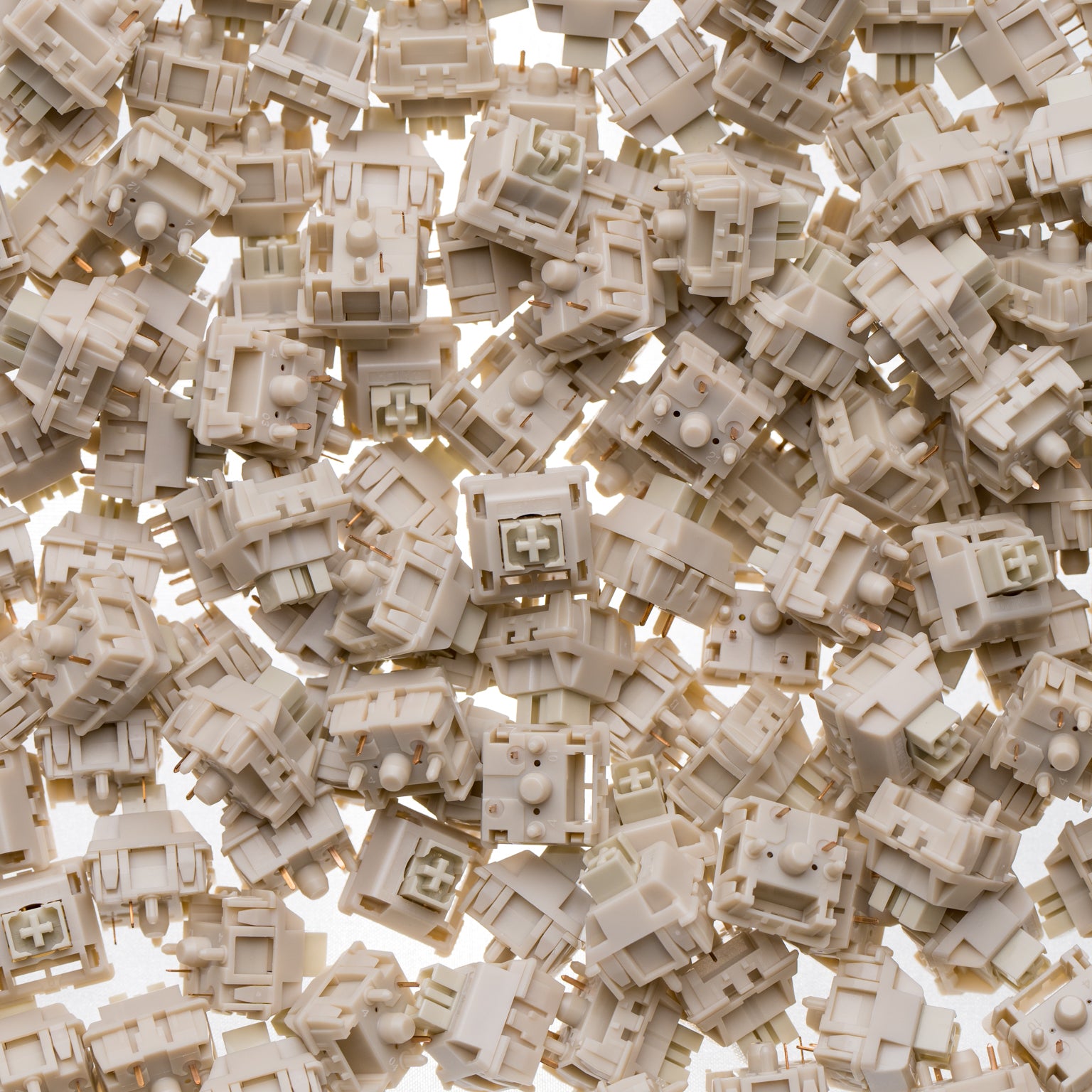 We have several linear and tactile options in stock from tons of different manufacturers! Some popular brands we offer are Cherry, Durock, JWK, Gateron, Haimu, and Tecsee.