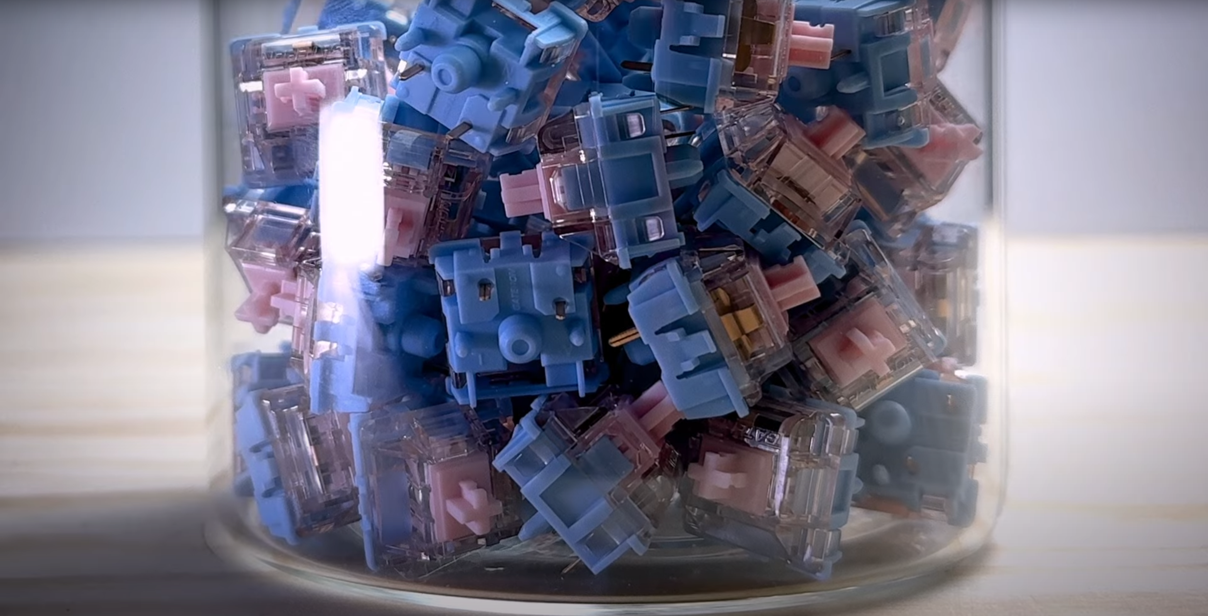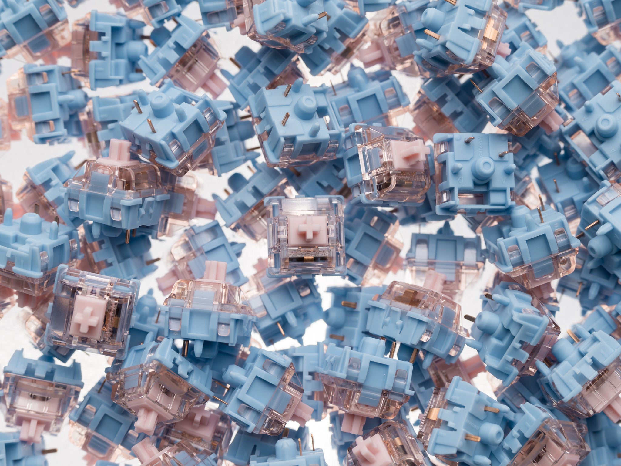 These are fantastic clicky switches overall. I love the sound profile; it differs considerably from either the classic blue click jacket or the Kailh click bar approach. I’d say they compares favorably to Zeal Clickiez.