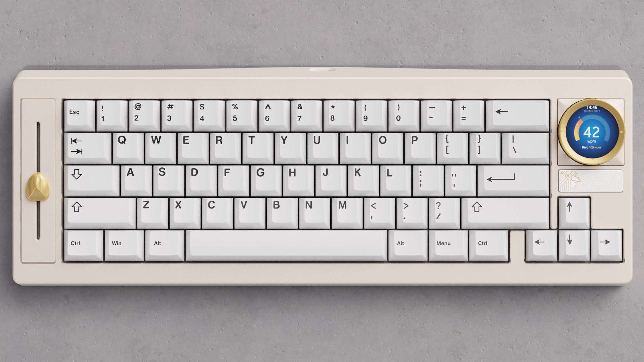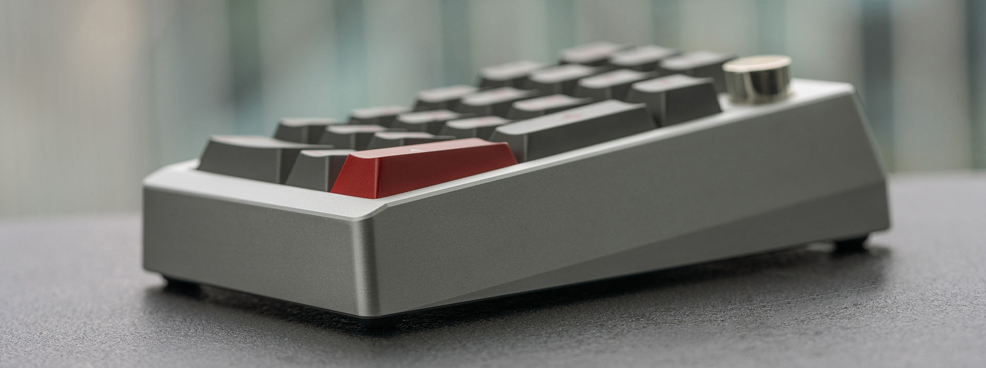 The Zoom65 V2 and Zoom65 V2.5 by Meletrix is a 65% custom keyboard made from Aluminum. This keyboard has plenty of customizable options and a knob- all at an approachable price.