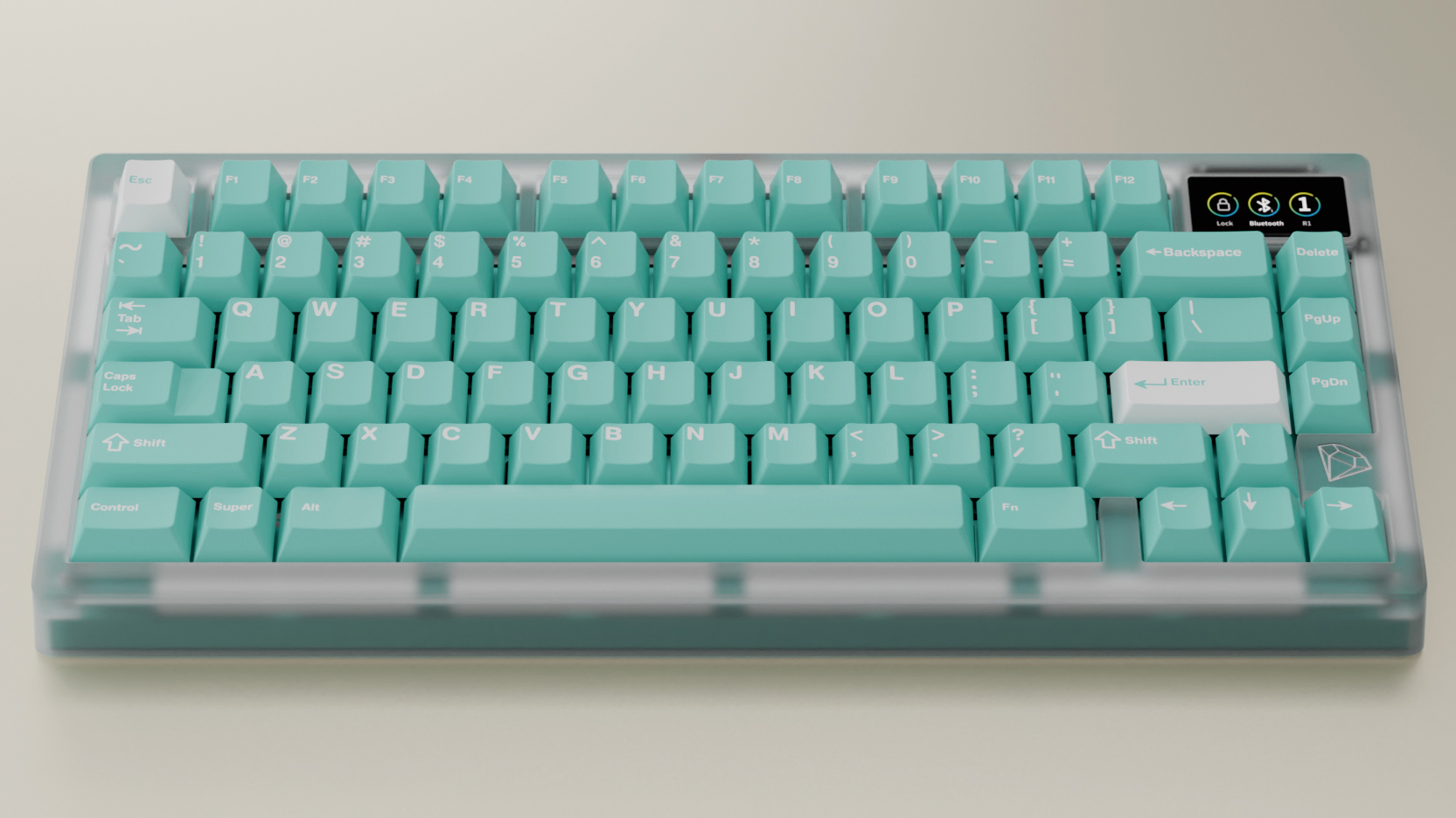 The Zoom75 by Meletrix is a 75% custom keyboard made from Aluminum. The standout features of this keyboard include a customizable LCD display and the ability to choose from many options in the top right blocker.