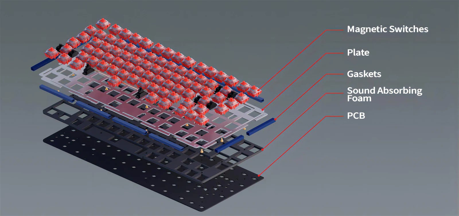 BOOG75 HE Module is fully compatible with your existing Zoom75 Keyboard. Magnetic switches, Plate, PCB and gaskets are included in the module.