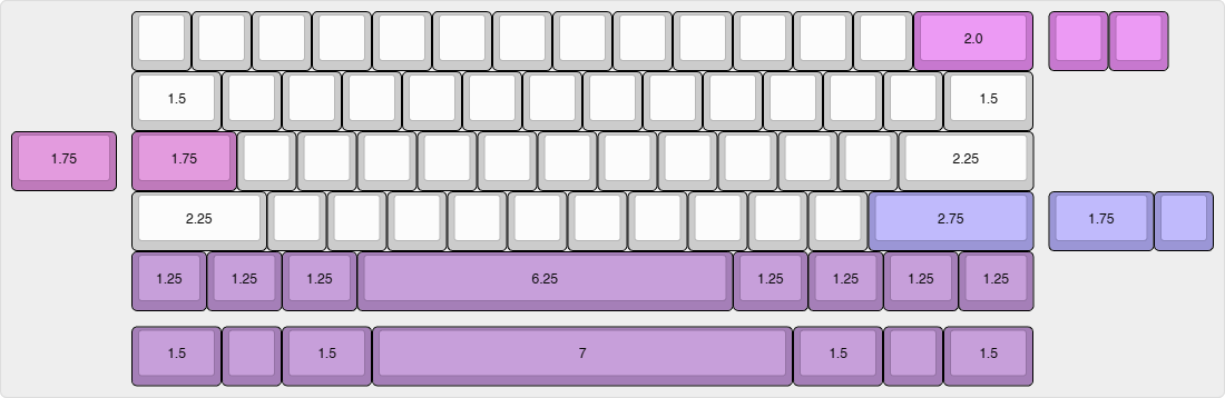 - 4x2u + 1x7u or 1x6.25u stabilizers