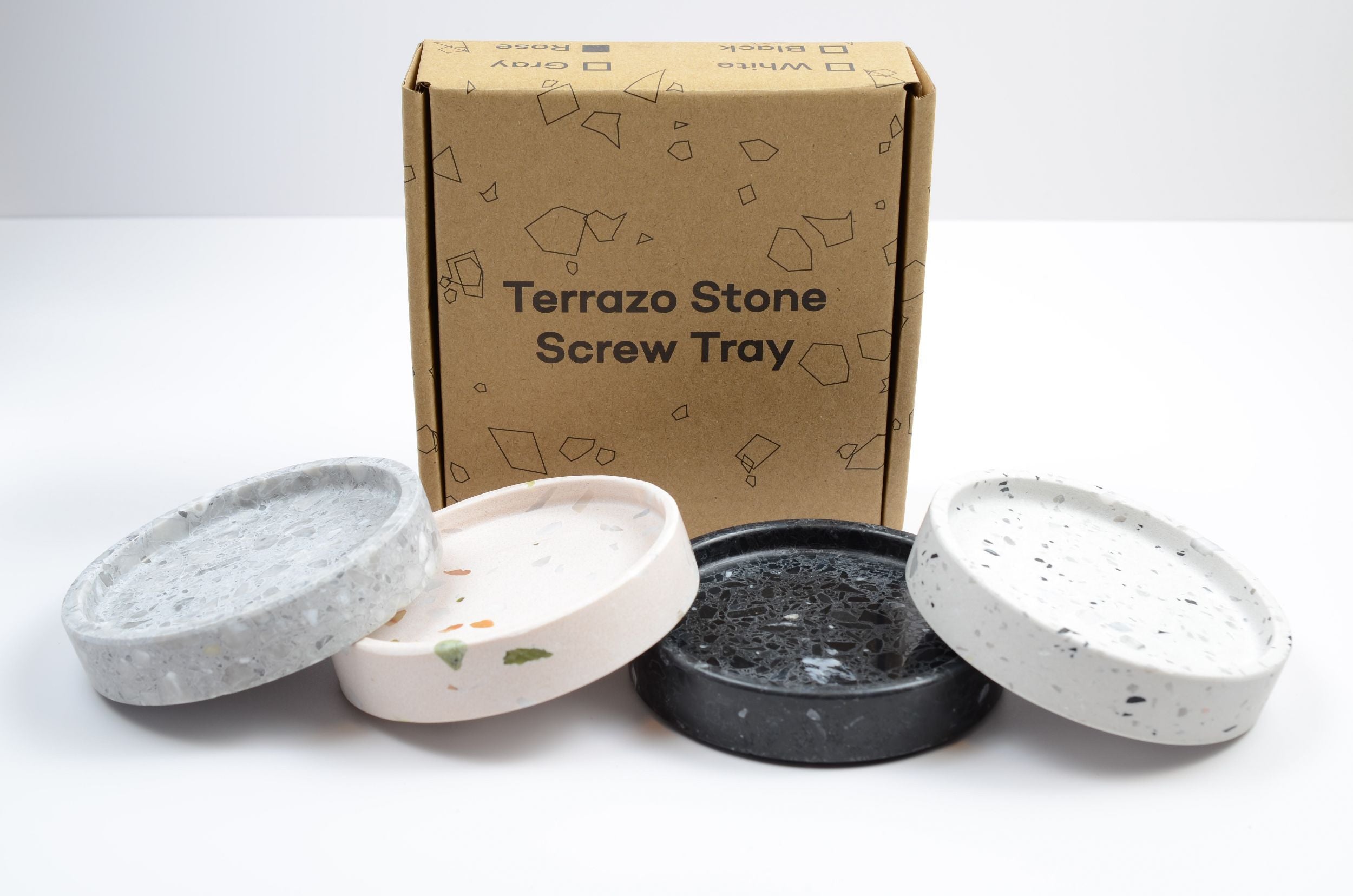 Never lose a screw again! CannonKeys Terrazzo Stone Trays come in handy when it comes time to build! Available in four beautiful hand finished/polished colors that make exceptionally functional display pieces.