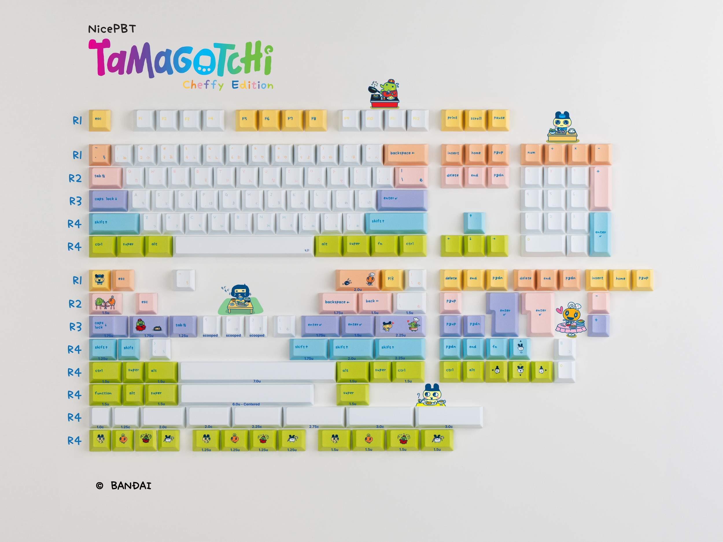 Hungry for more Tamagotchi? We’ve teamed up once again to cook up Cheffy themed Photon keyboards, deskmats, and an exclusive NicePBT Tamagotchi Cheffy Edition Keyset! The keycaps utilize the official TamaFont and feature hiragana sublegends to round out the look!