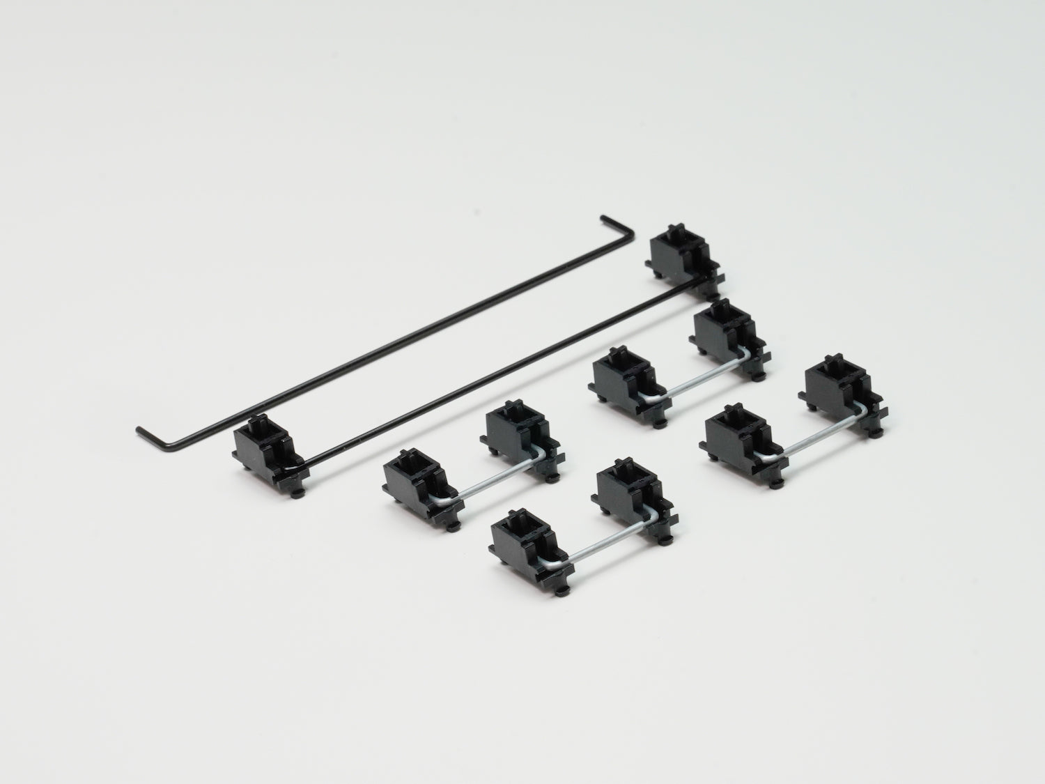 6.25U and 7U stabilizers in the kit are using black wires designed to meet cherry spec by CannonKeys.