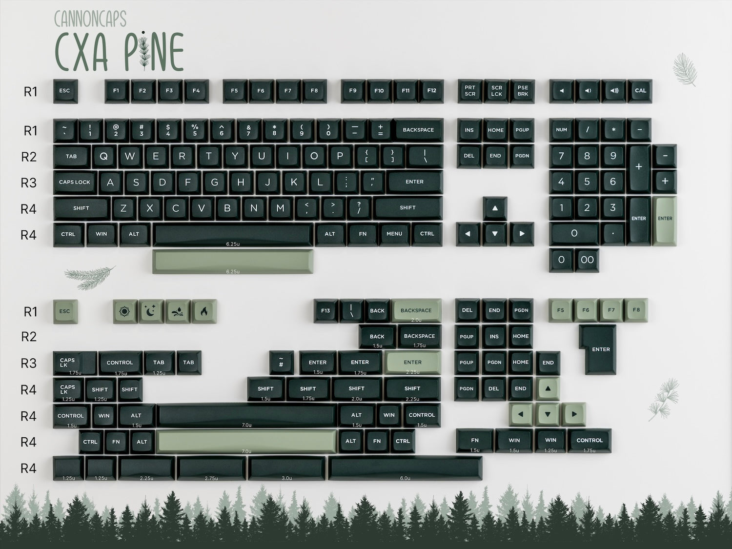 • Spacebars Included - 1.25u, 2.25u, 2.75u, 6.25u, 7u