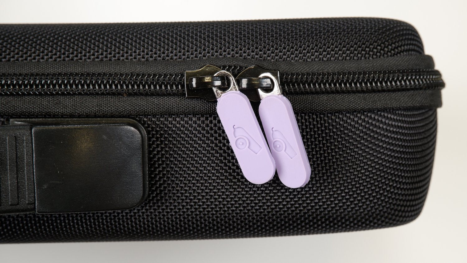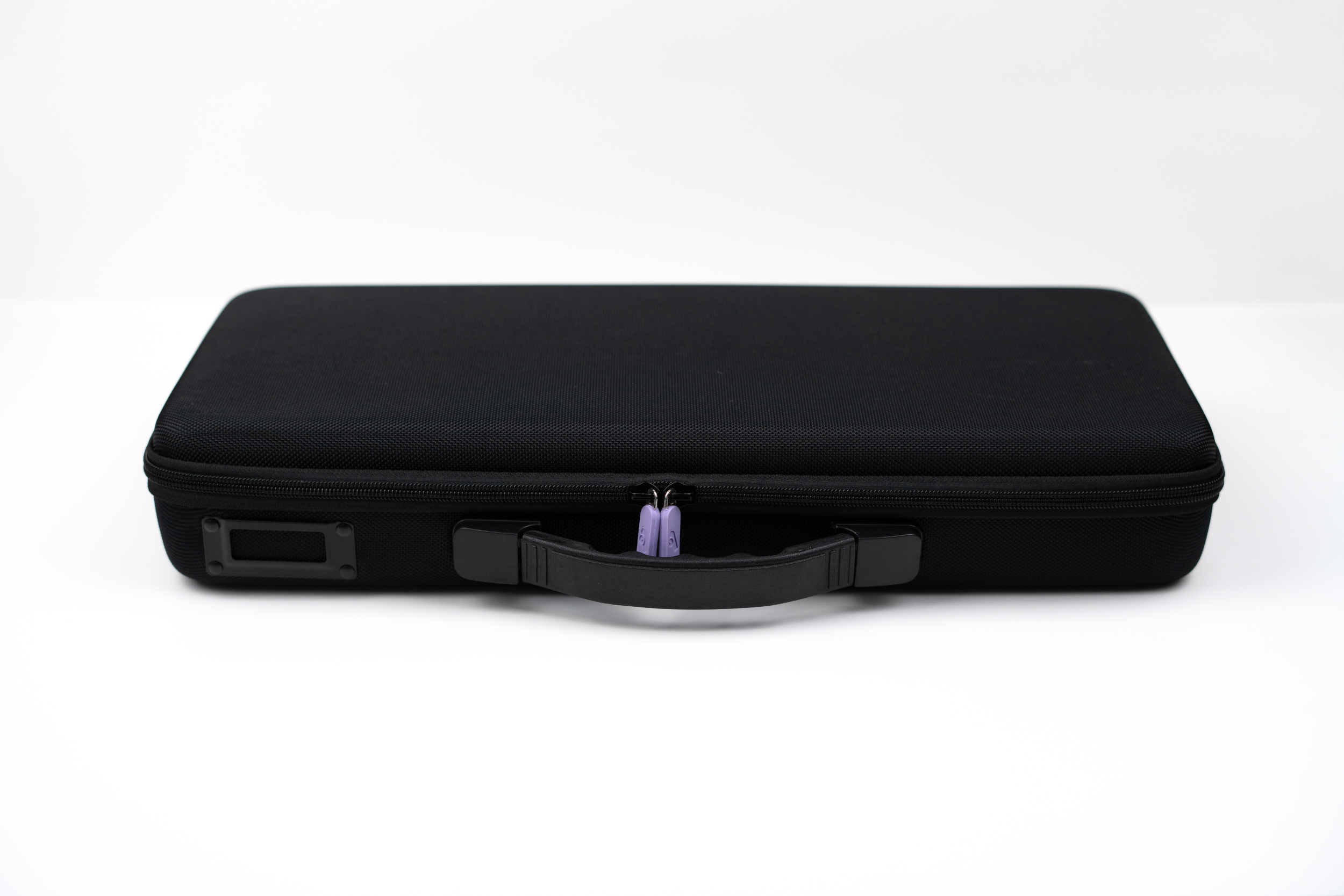 Each carrying case features a hard nylon water-resistant outer and a EVA foam inner. The handle is made of dense plastic, there is a spot for a nametag, and the zipper features lilac CannonKeys zipper pulls. This new version also features a rubberized zipper pull on the internal pocket.