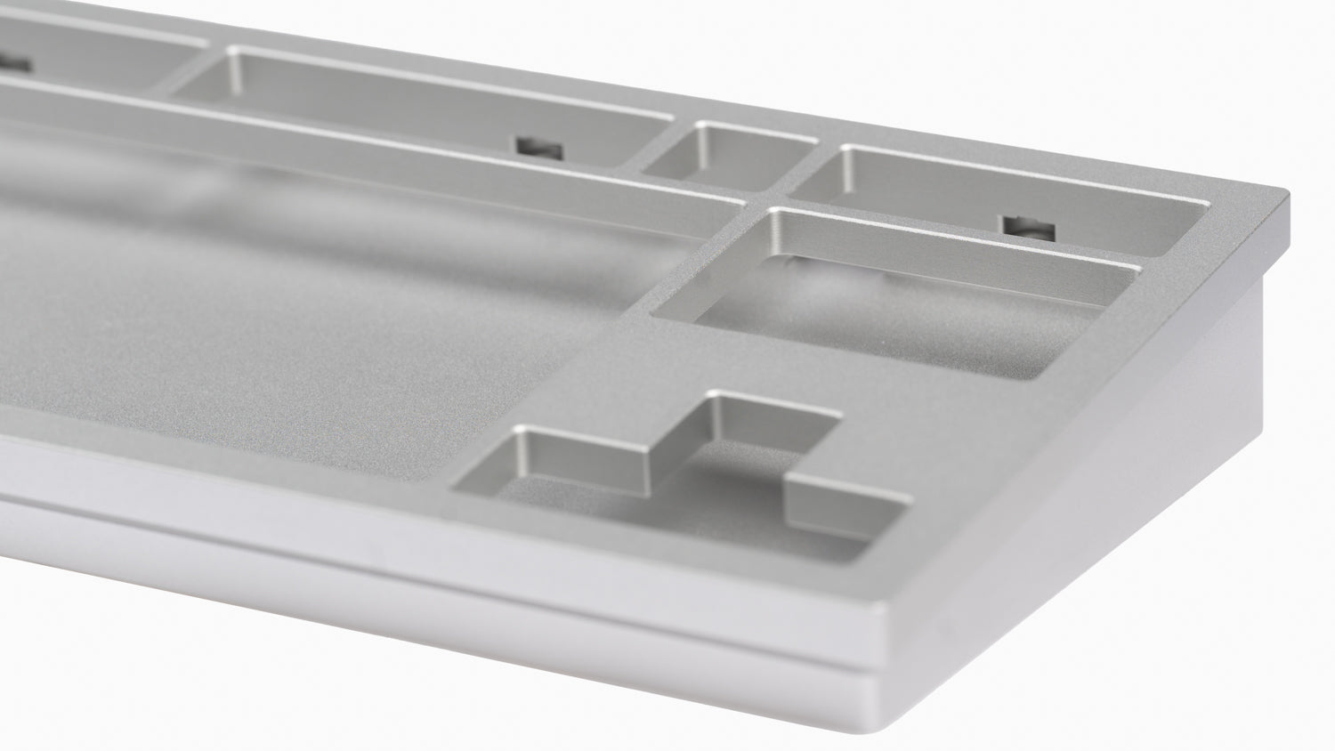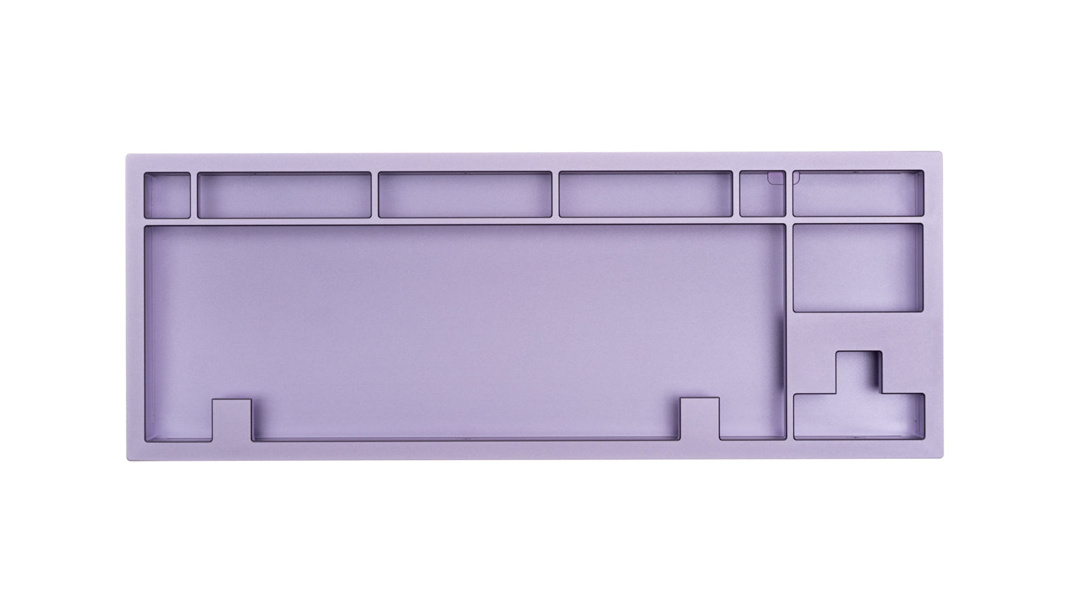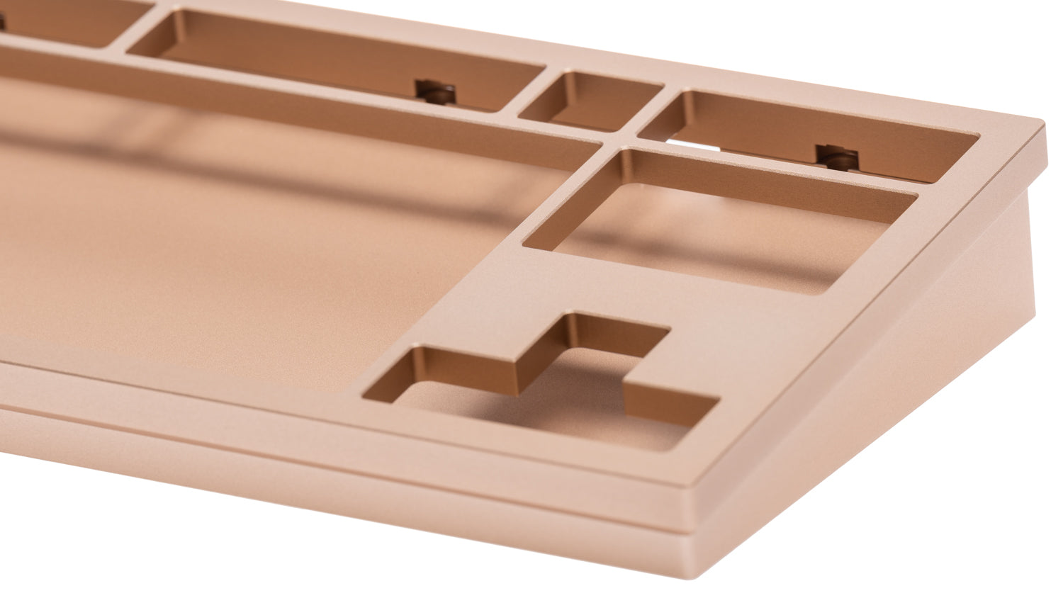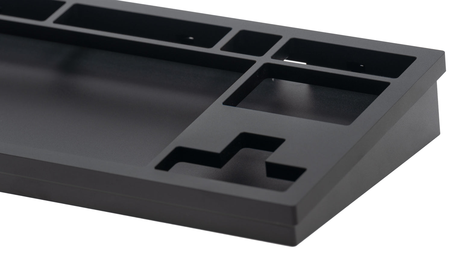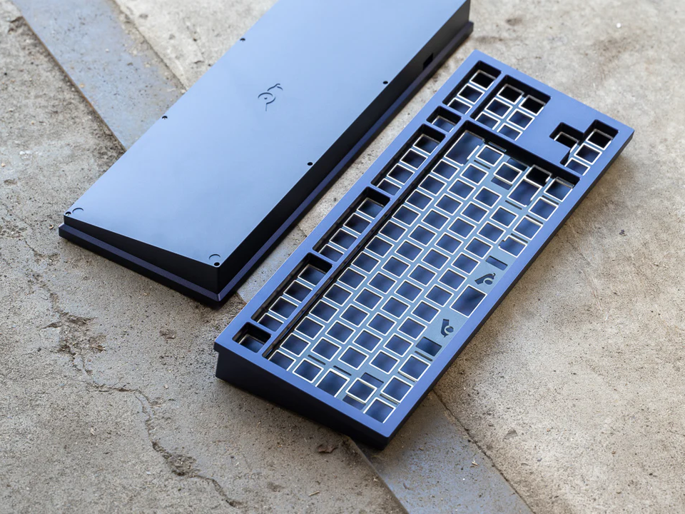 The DevastatingTKL CNC keyboard in our Brutalist Series of in stock keyboards. The solderable PCB included is QMK/VIA supported and USB-C, and the mounting style is a slightly modified top mount called Burger Mount. Burger Mount takes the evenness from top mount and uses o-rings on the mounting screws to make the typing experience slightly less harsh.