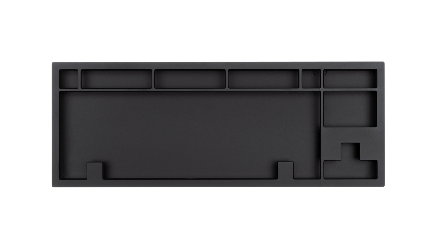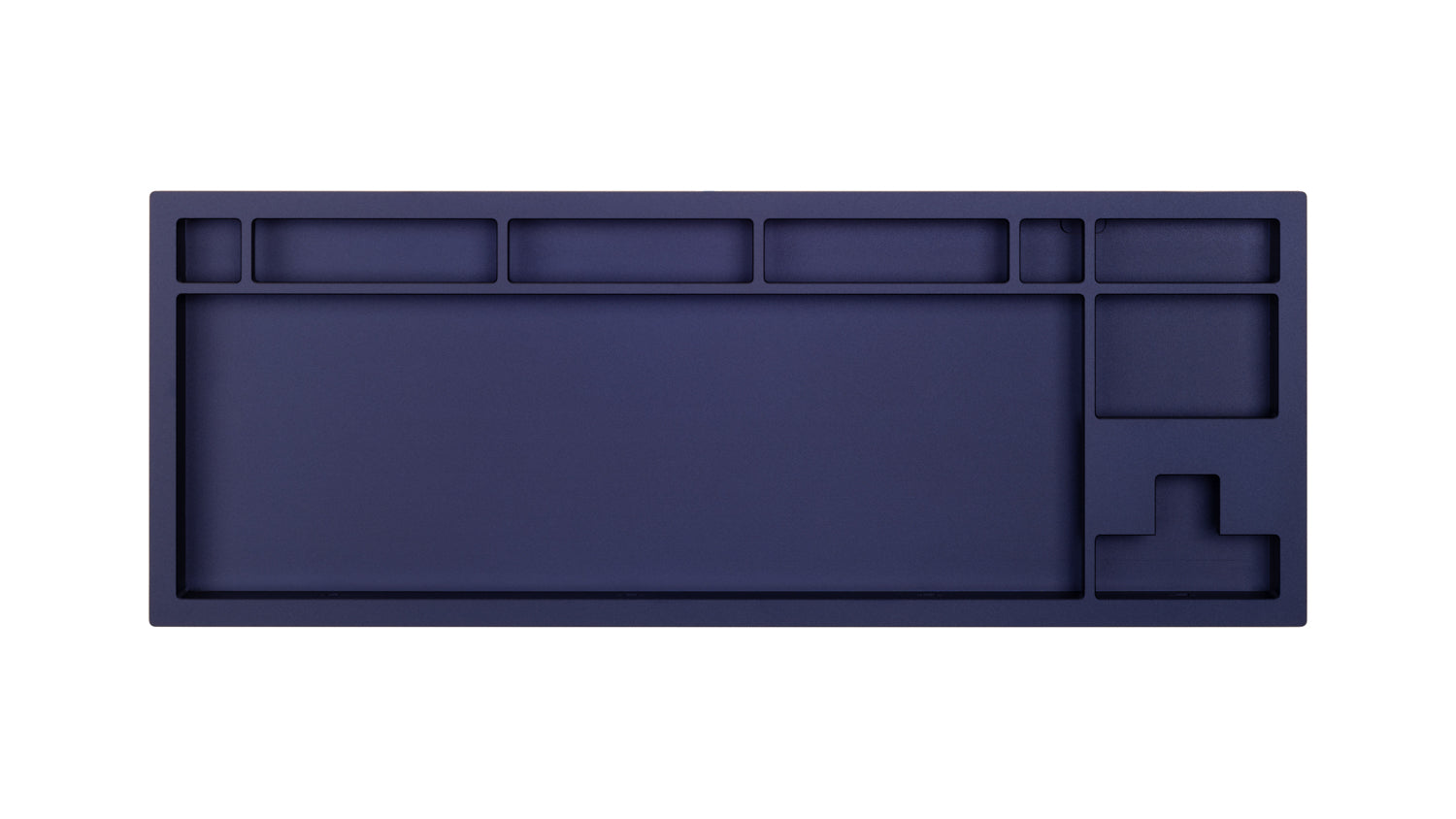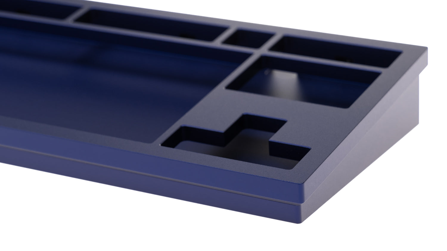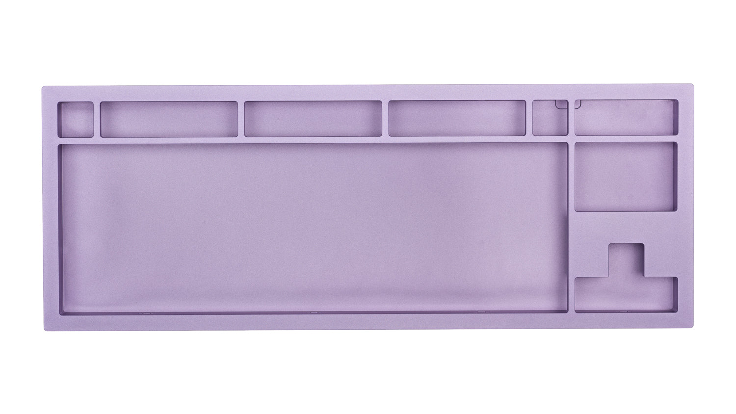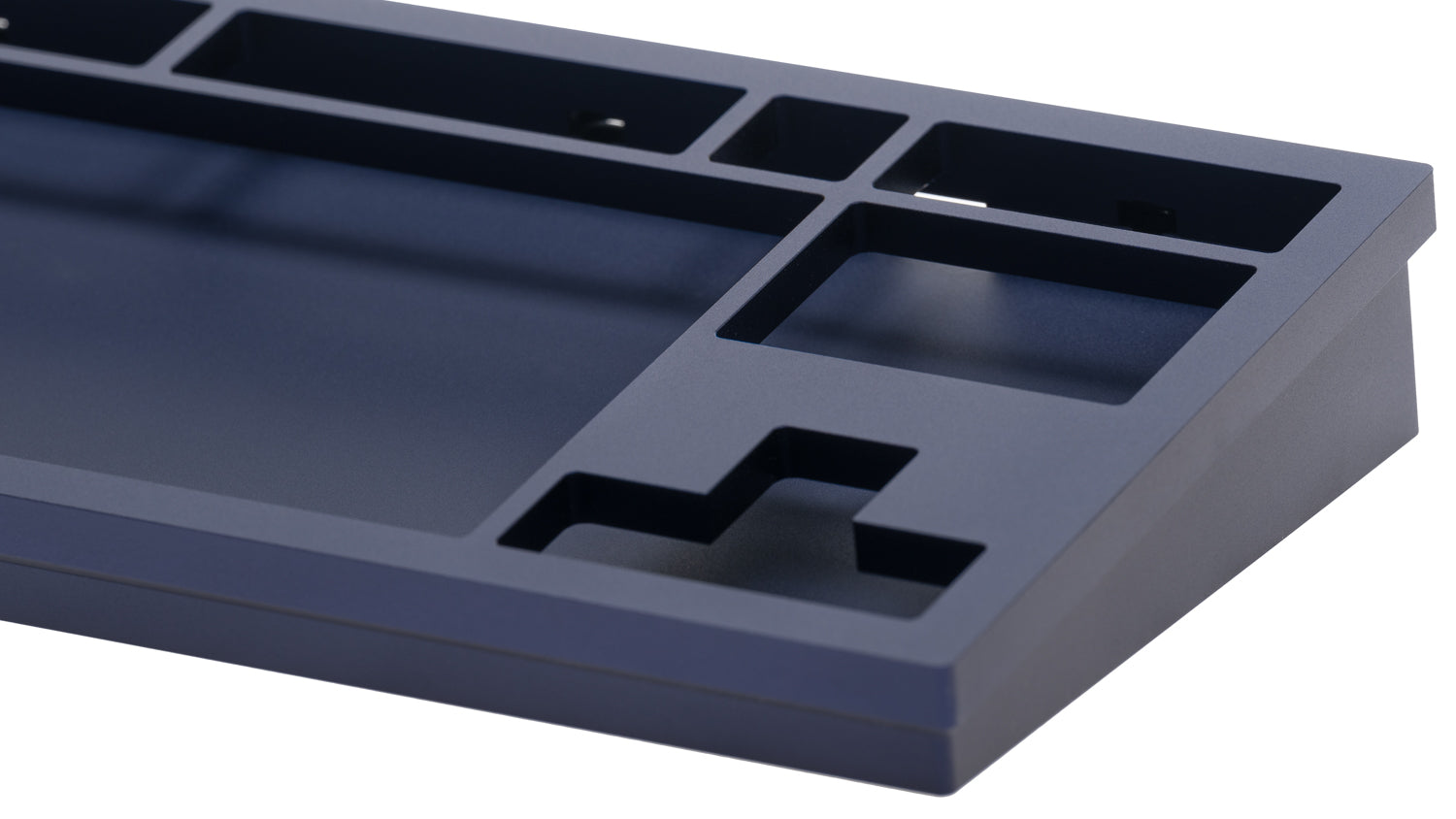 The DevastatingTKL CNC keyboard in our Brutalist Series of in stock keyboards. The solderable PCB included is QMK/VIA supported and USB-C, and the mounting style is a slightly modified top mount called Burger Mount. Burger Mount takes the evenness from top mount and uses o-rings on the mounting screws to make the typing experience slightly less harsh.