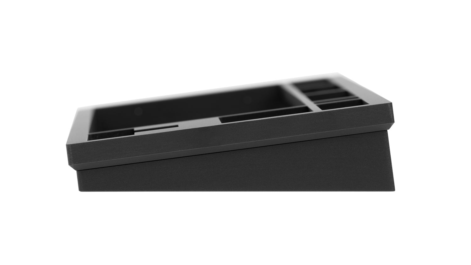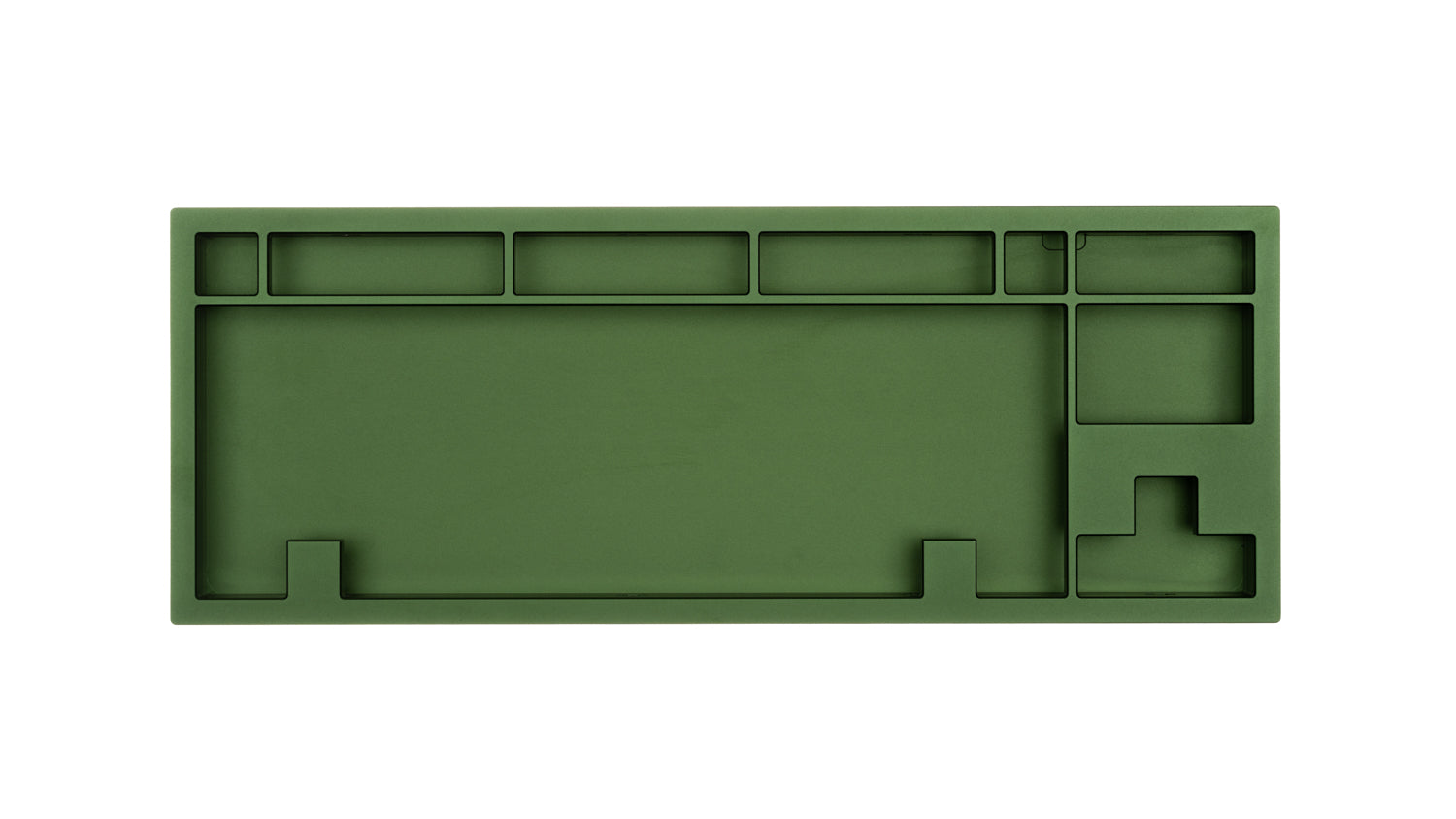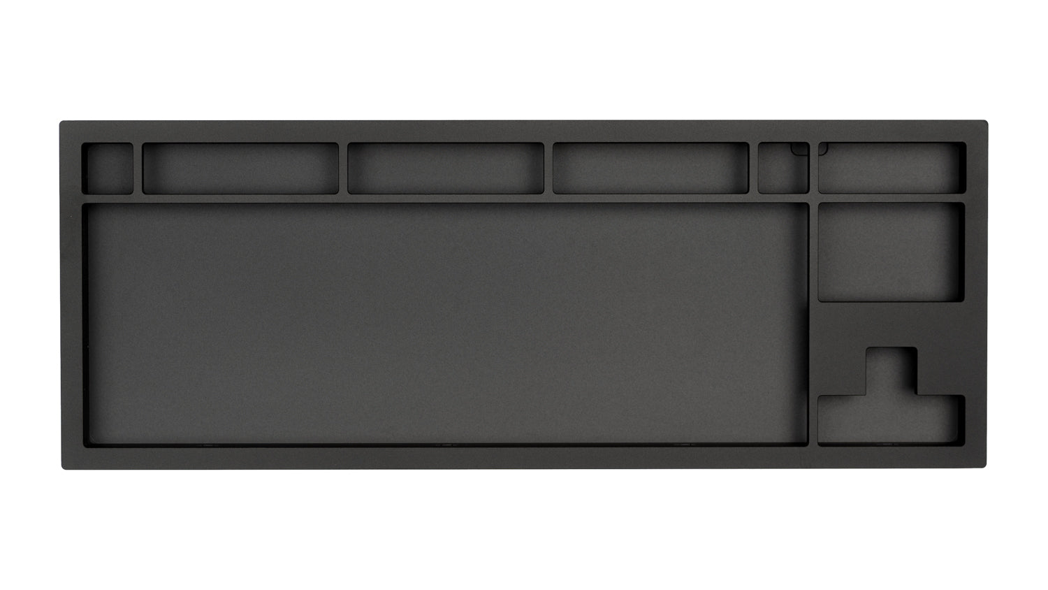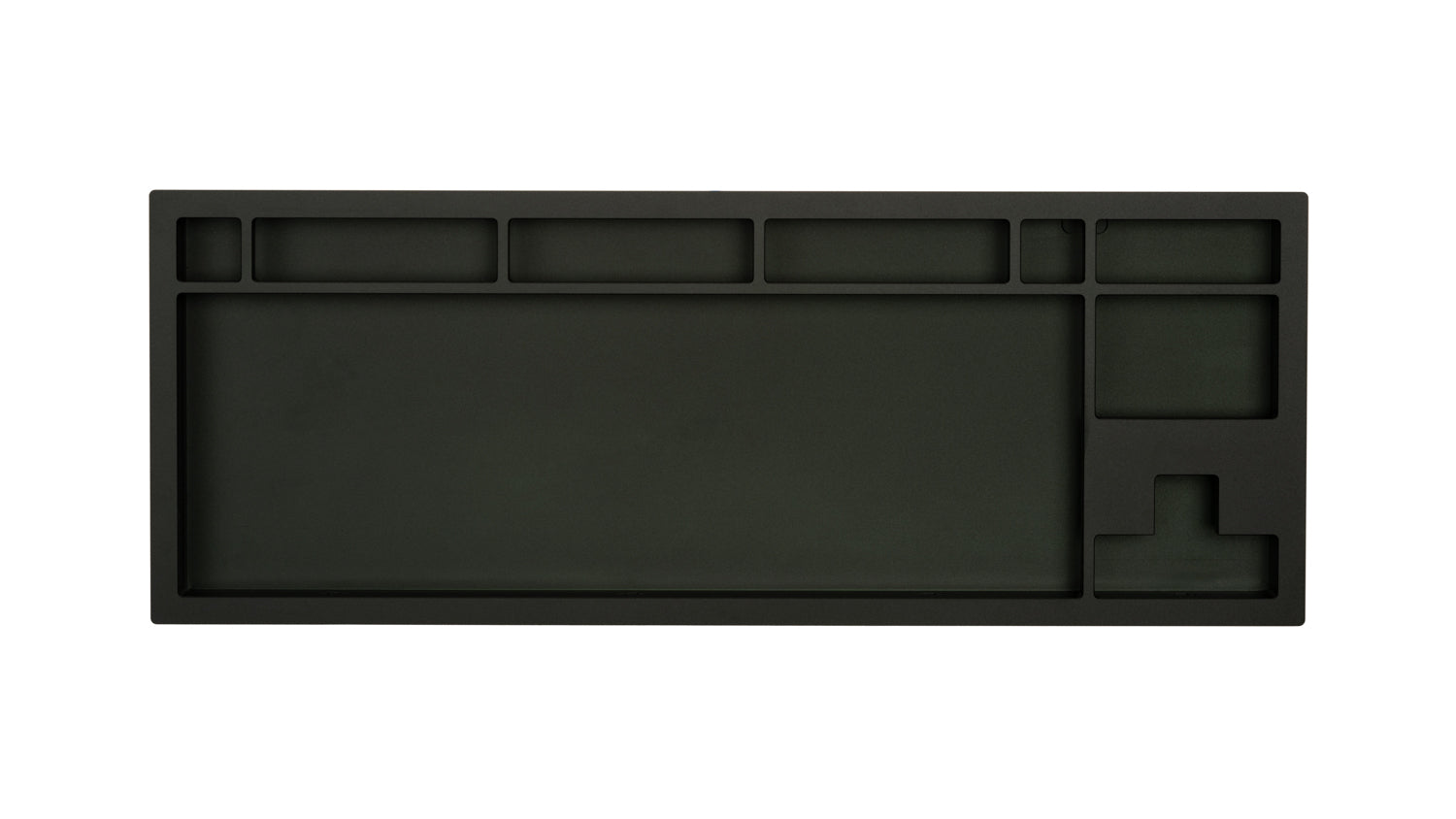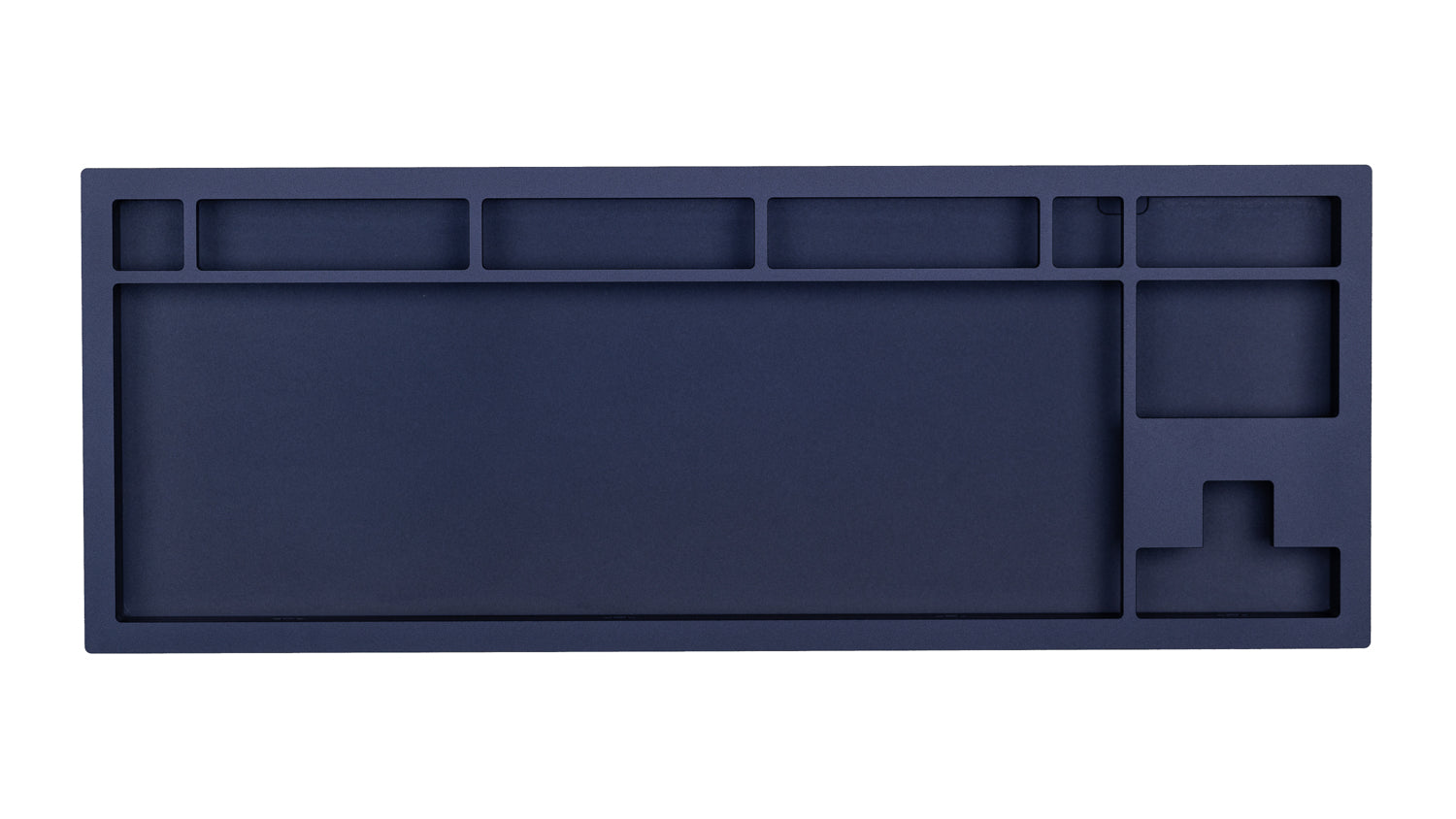The DevastatingTKL CNC keyboard in our Brutalist Series of in stock keyboards. The solderable PCB included is QMK/VIA supported and USB-C, and the mounting style is a slightly modified top mount called Burger Mount. Burger Mount takes the evenness from top mount and uses o-rings on the mounting screws to make the typing experience slightly less harsh.