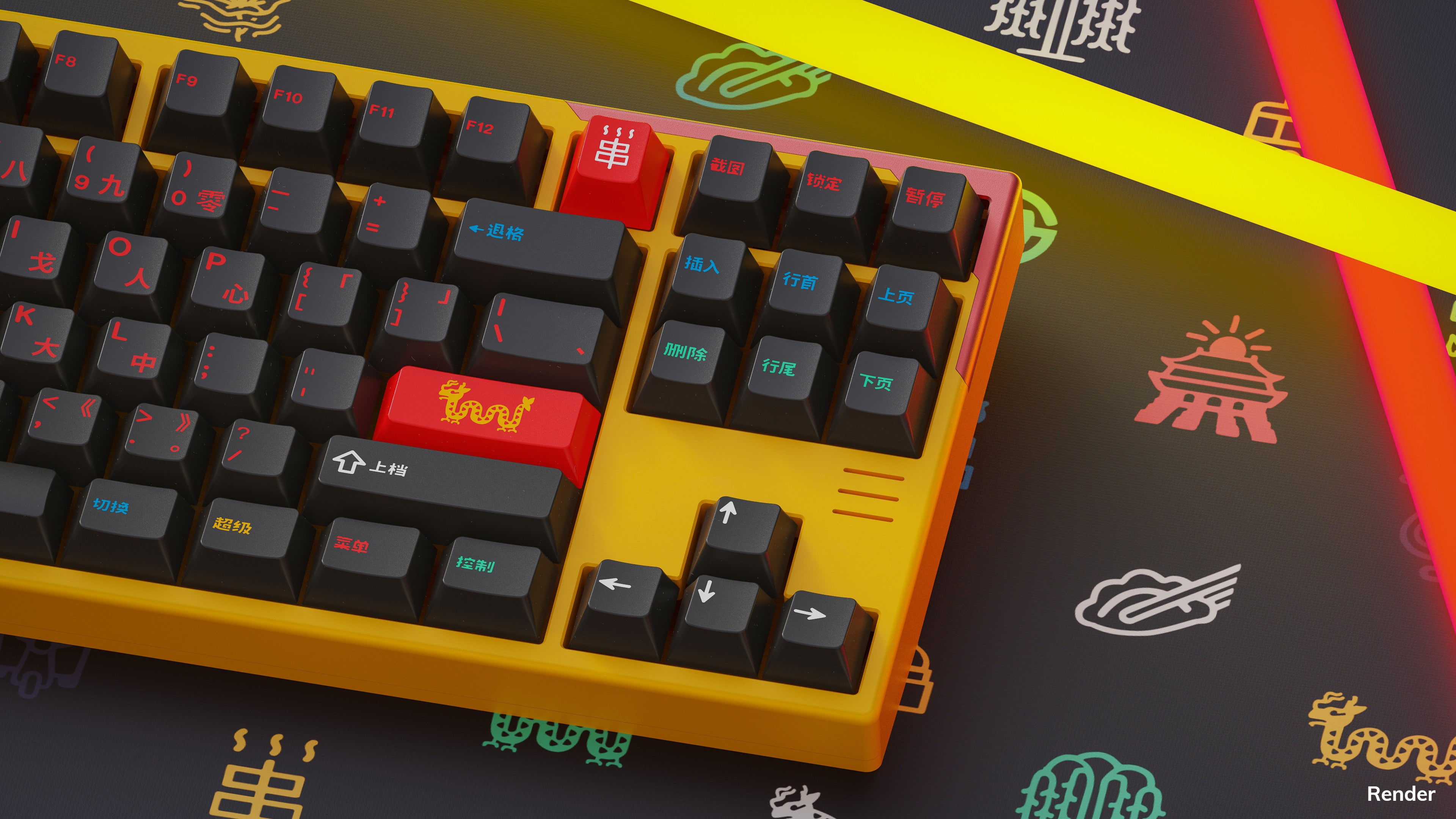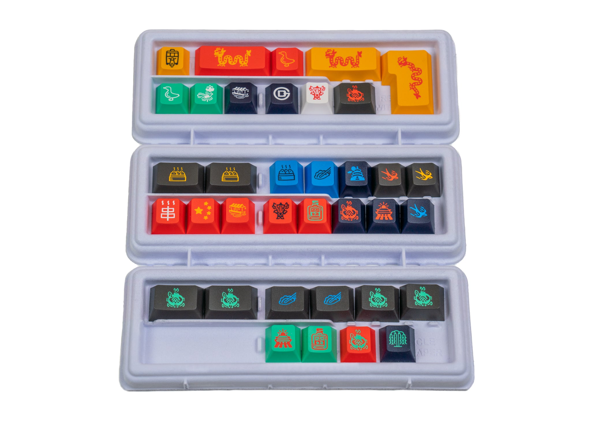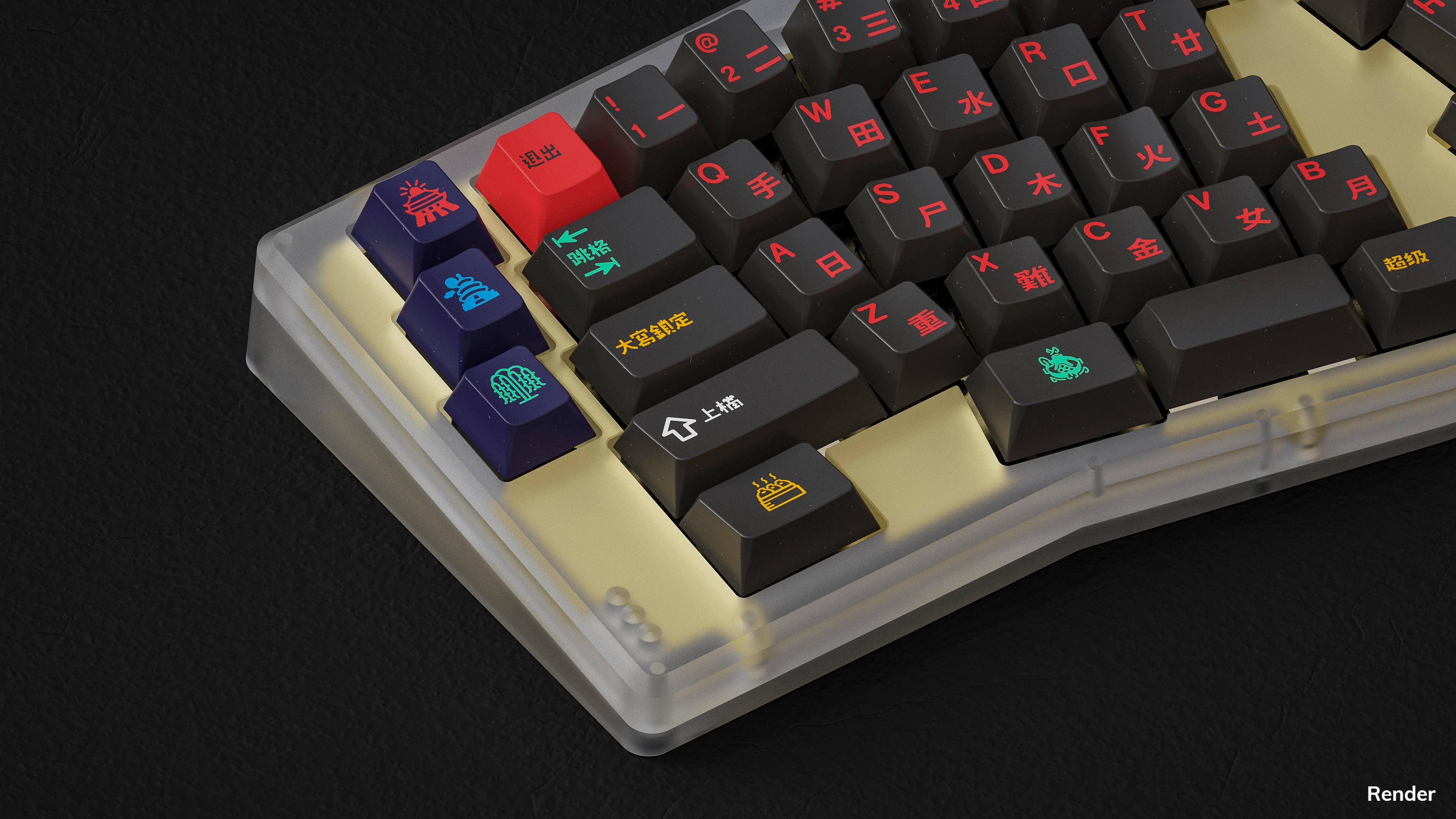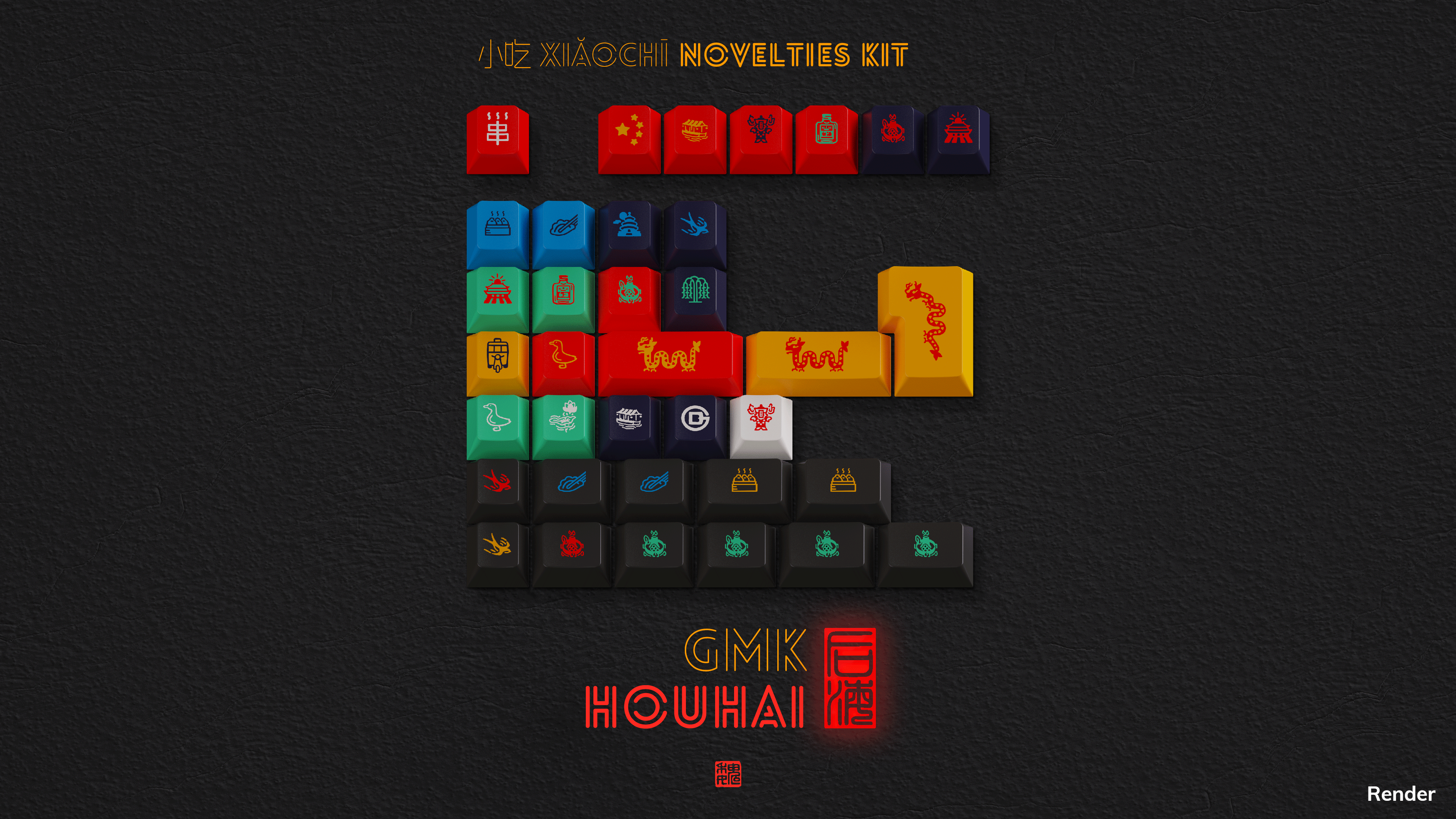 Bright legends and sublegends enveloped by a hazy gray backdrop set the stage for this keycap set based on the hidden Beijing lake. With multiple base kits sporting either simplified Chinese sublegends or Traditional Chinese sublegends, this set will transport you to the nightlife that accompanies Houhai. Multiple child kits are also available, including novelties designed in collaboration with Grundlemere's sibling, Maho.