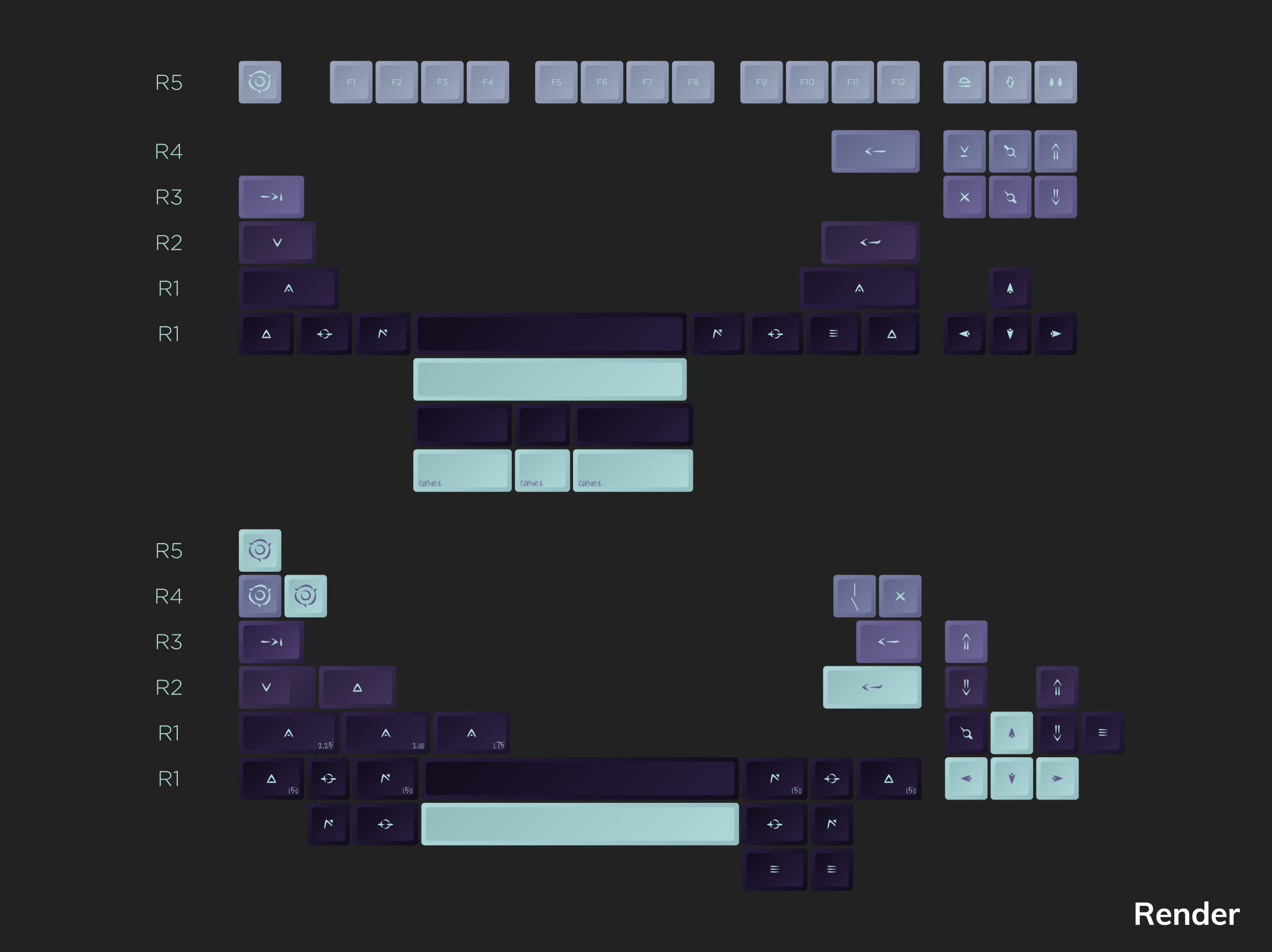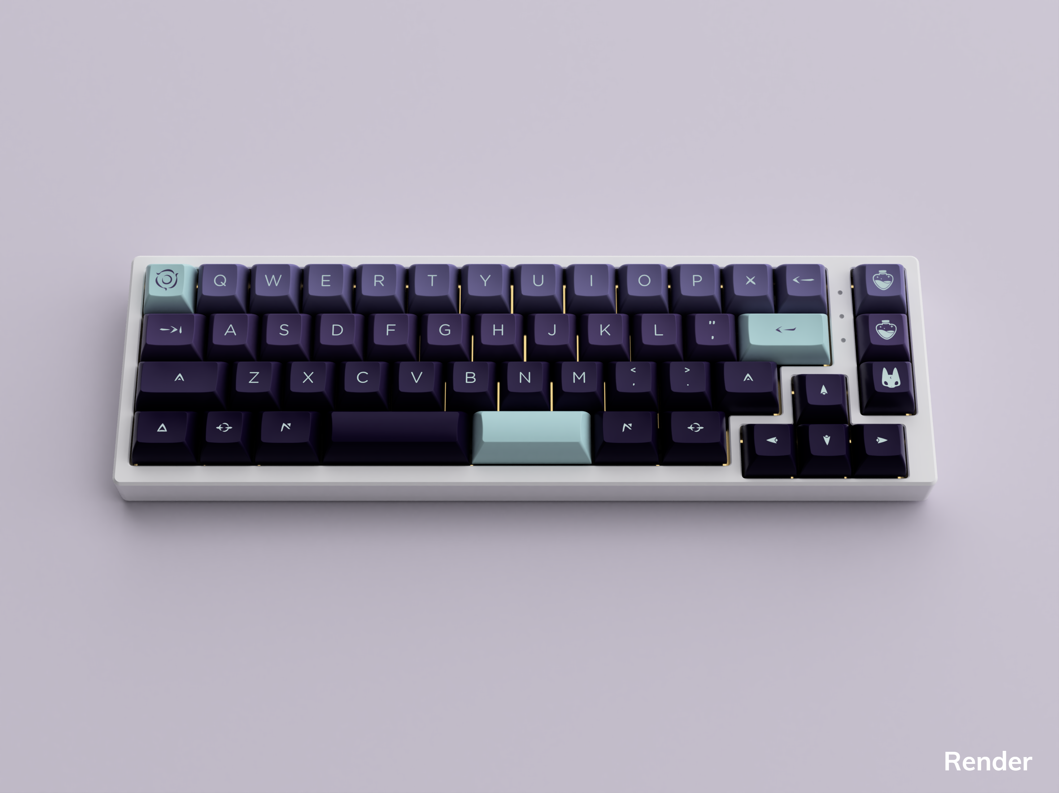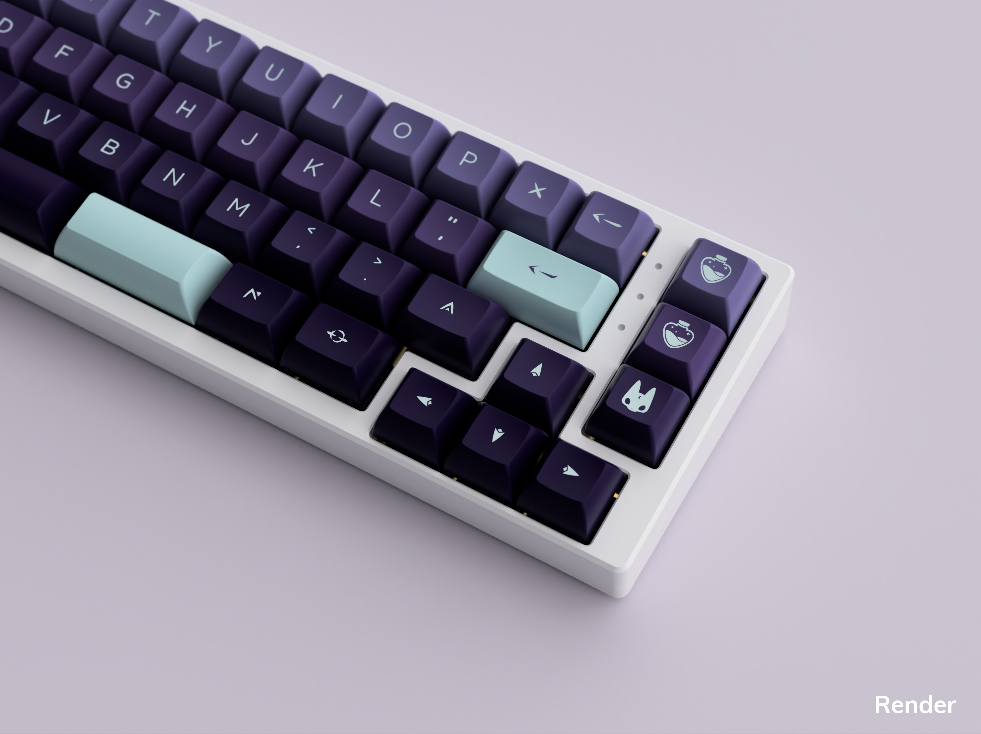 Designed by Minterly Studios, this Kindred inspired keyset is the first KAT set to make use of reverse dyesub in a big way! The purple to teal gradient will look great with many boards, all at an affordable price.