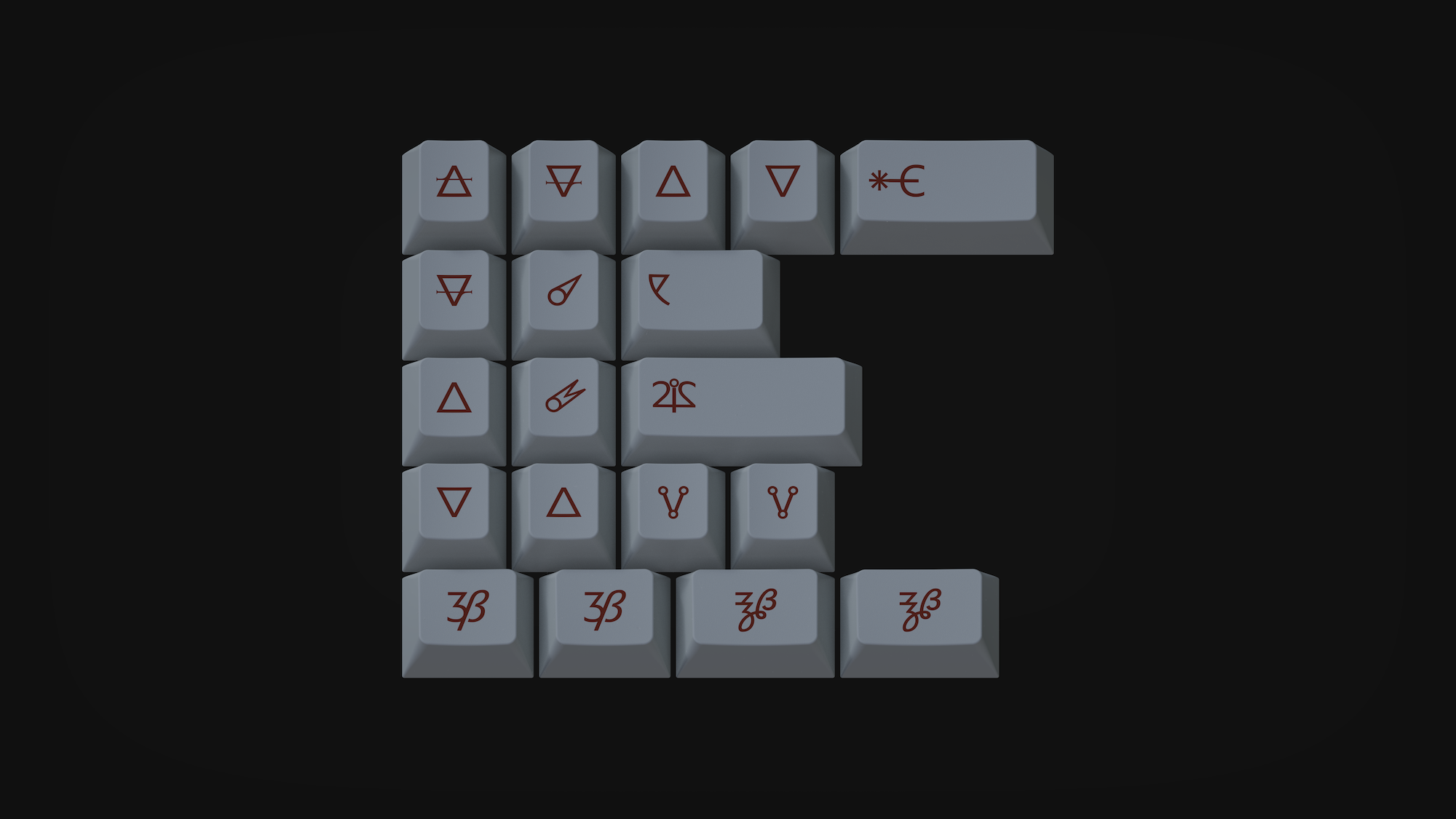 This keycap set features cool grey and beige tones representing base metals, a gold accent representing every alchemist's primary goal, and warm brown legends representing the base element of earth providing stark contrast. The colors will be matched as closely as possible to DSA Alchemy.