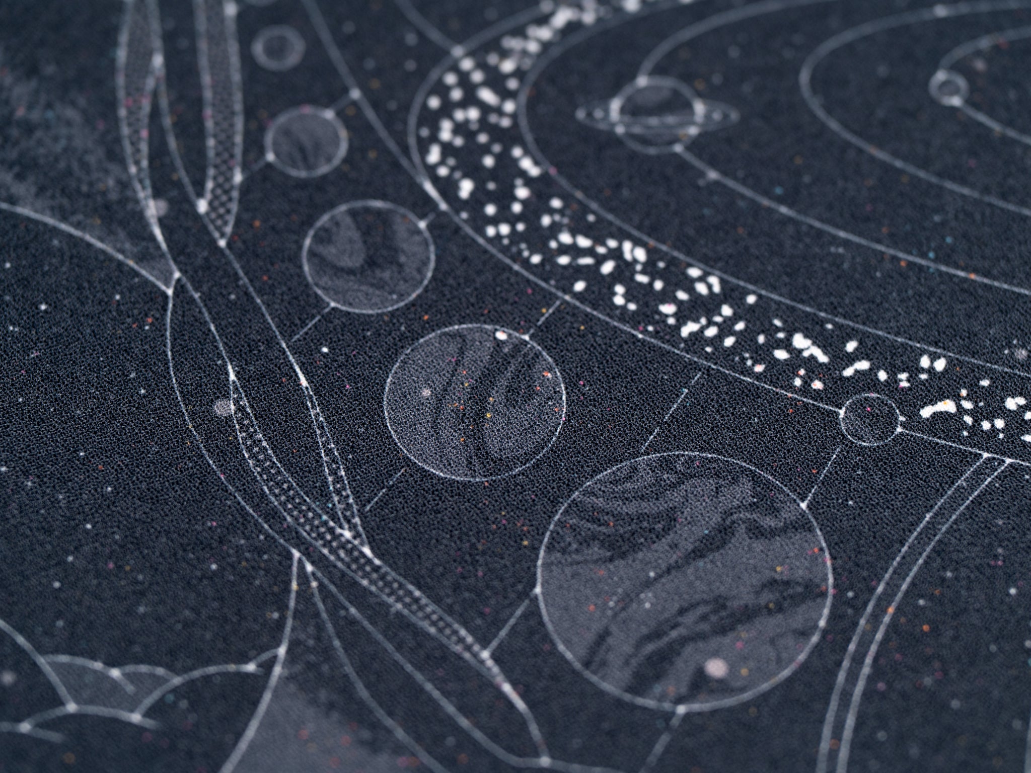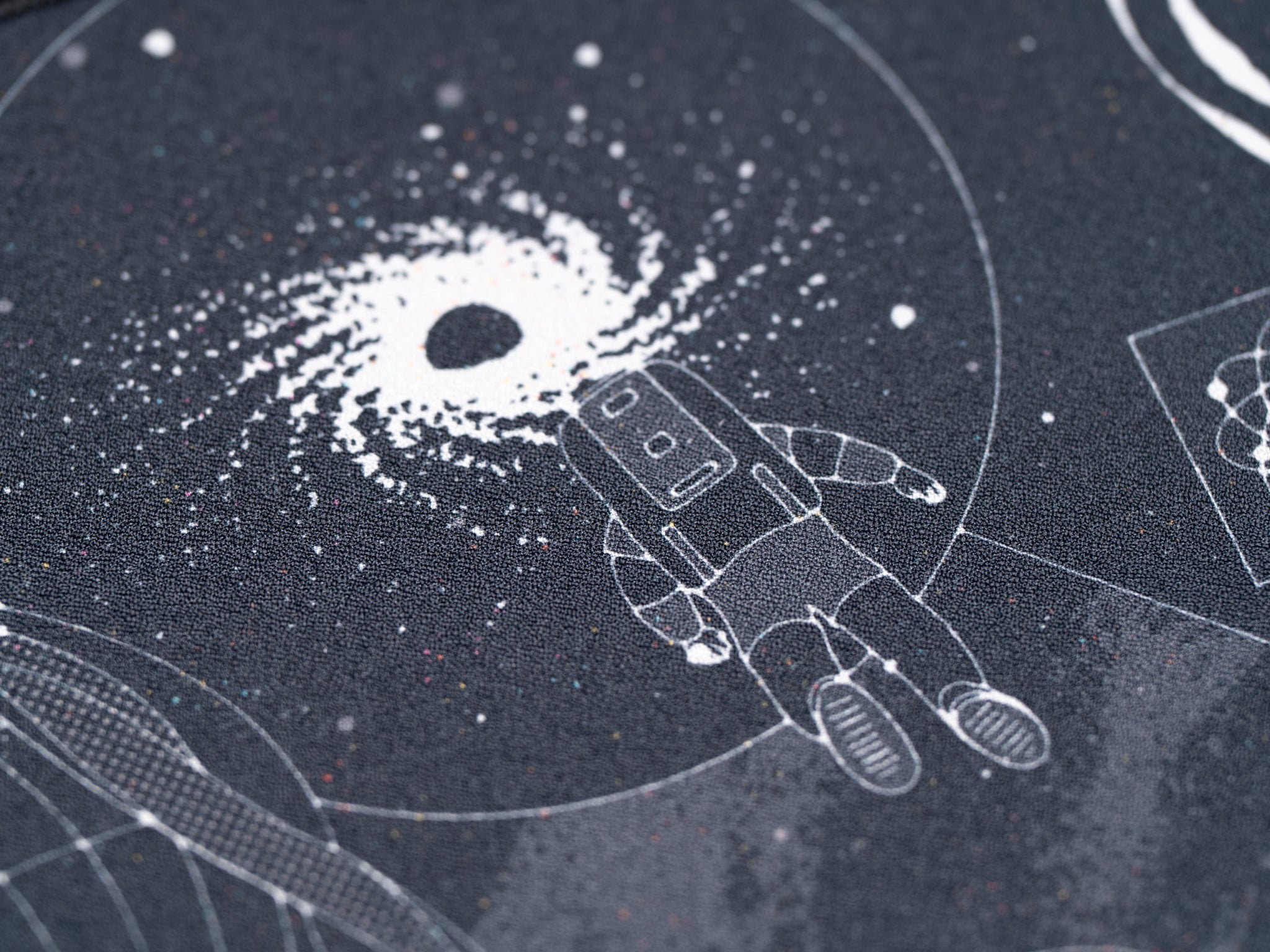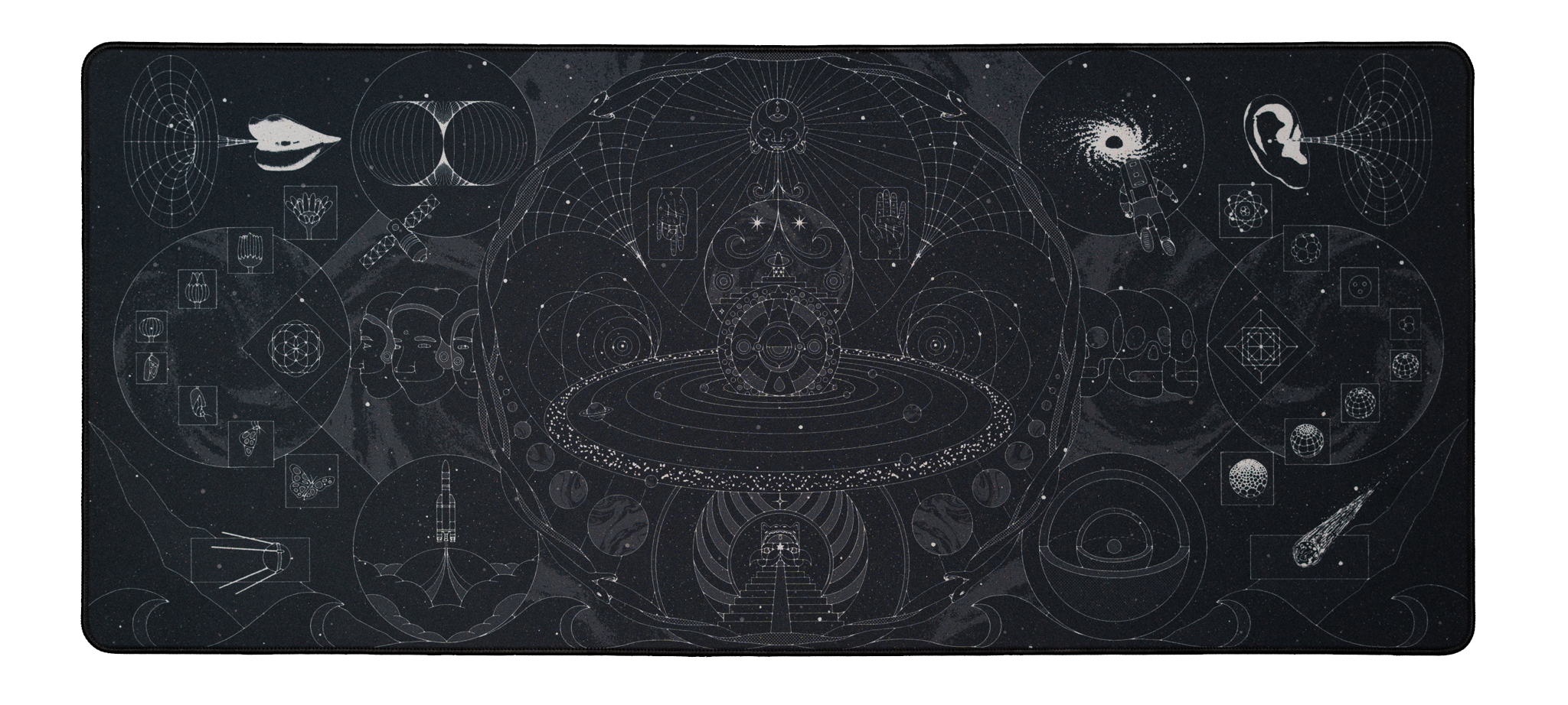 Cosmos deskmats feature a premium textured top for more precise printing, 900mm x 400mm x 4mm sizing, and stitched edges.