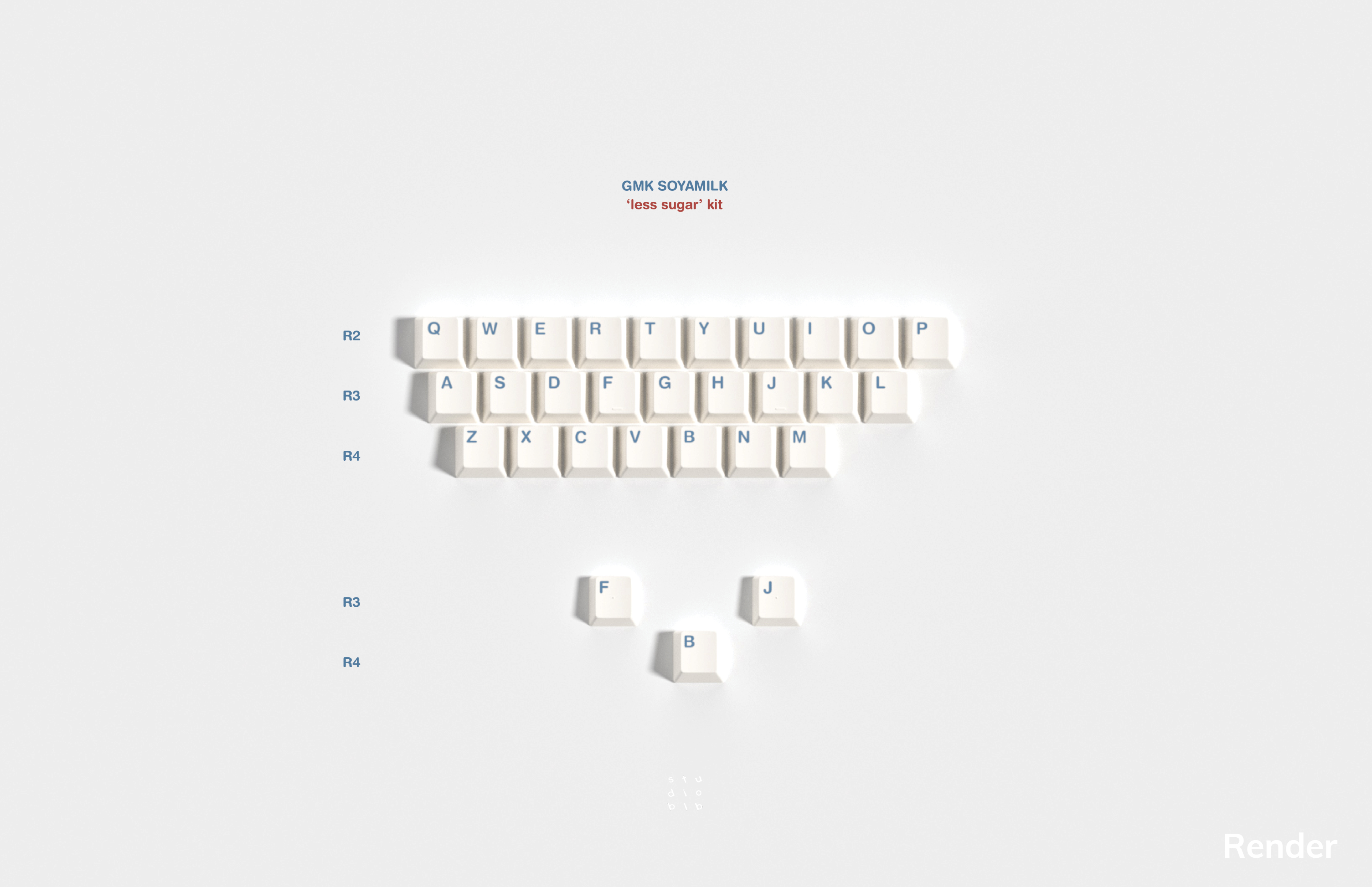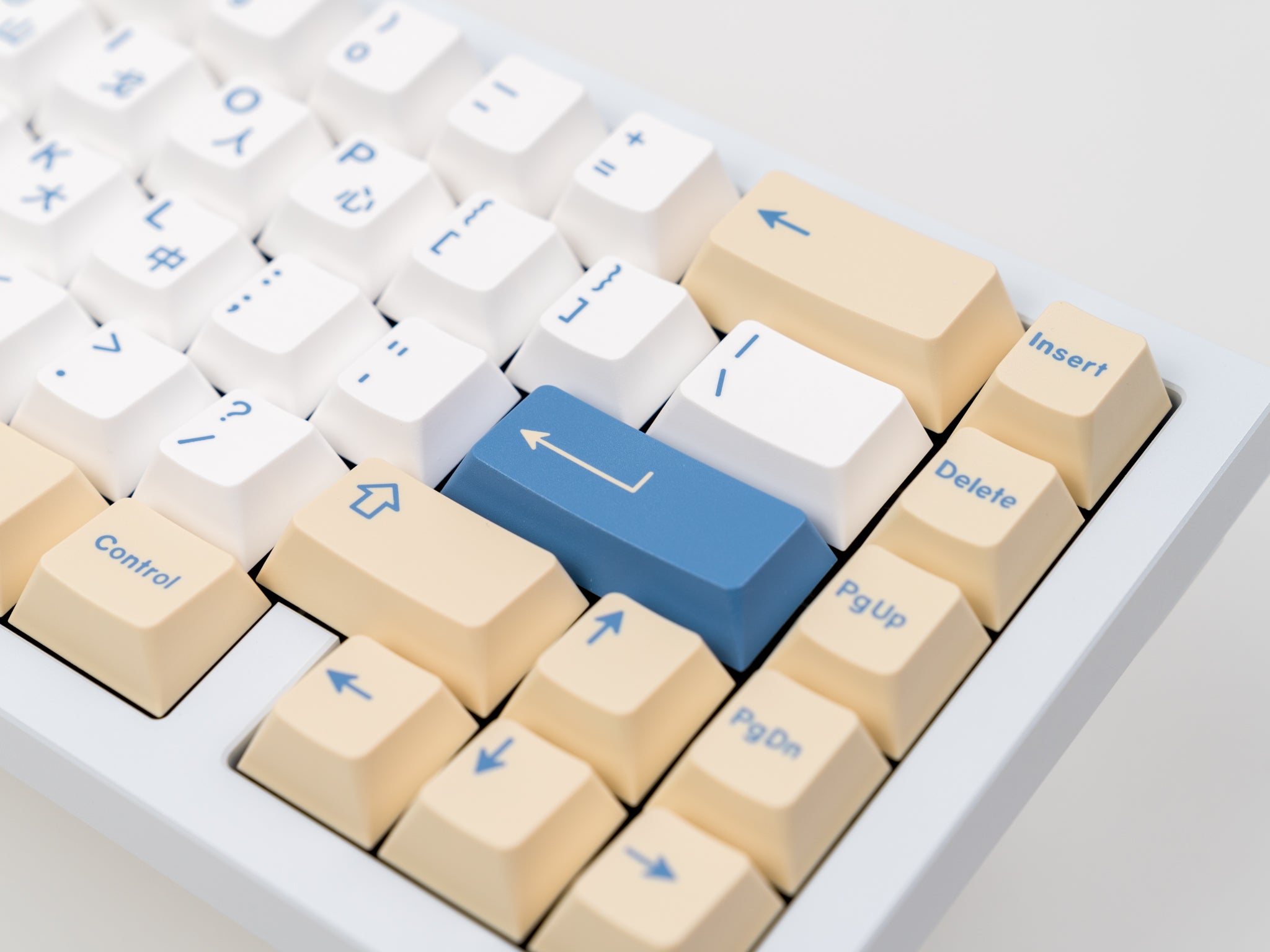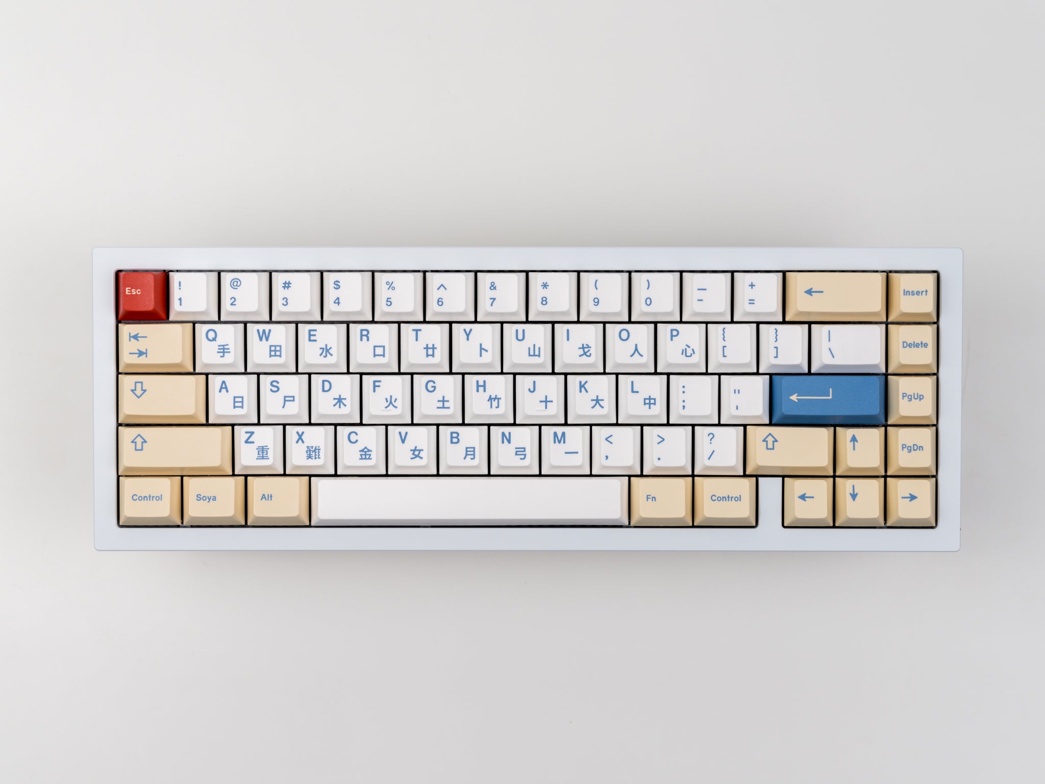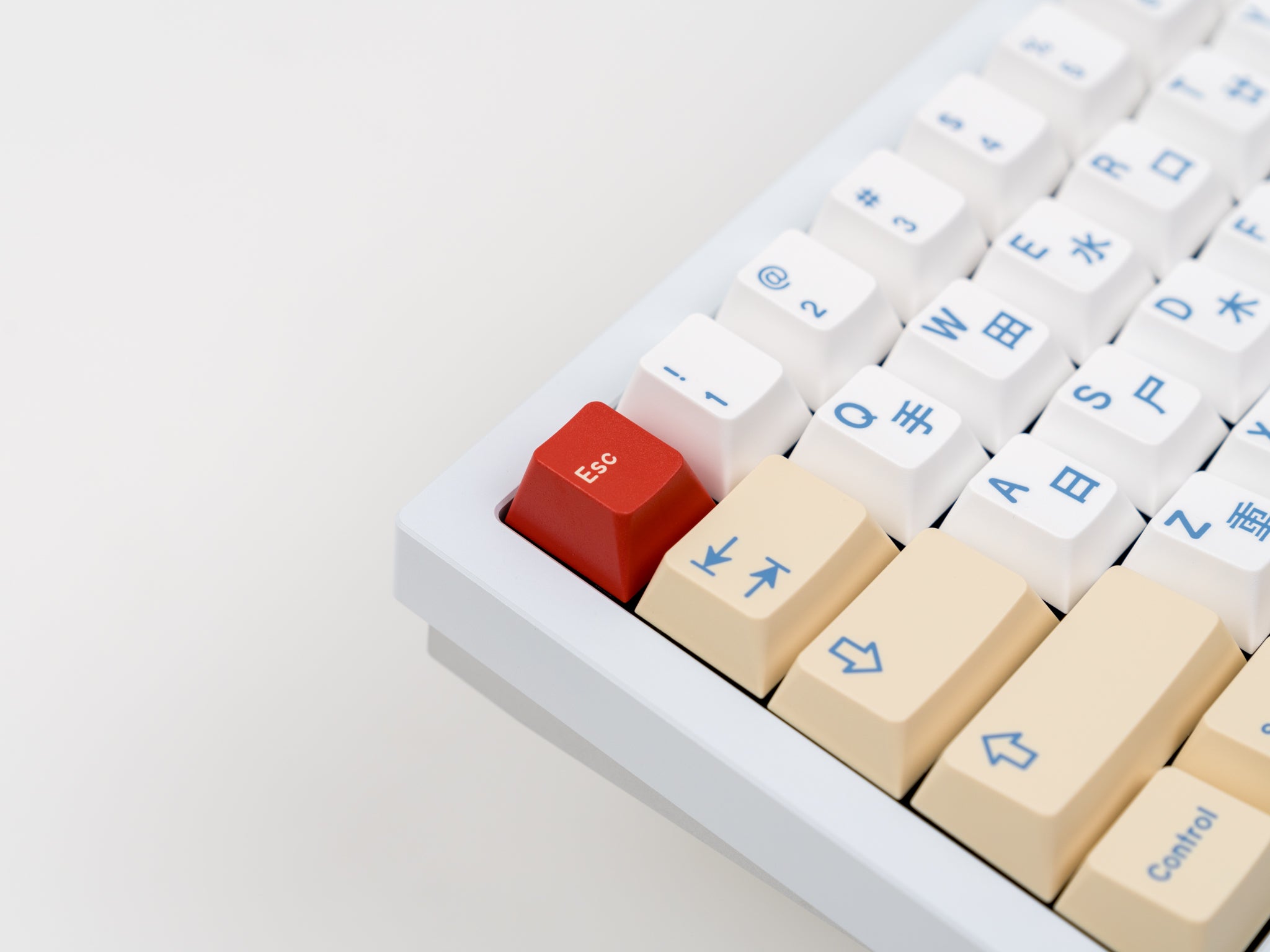 Designed by STUDIOBLB, GMK Soyamilk is inspired by vintage soyamilk drink boxes, and is meant to instill nostalgia. The cool blue on white alphas work with the beige mods and red accents to bring the vintage aesthetic together.
