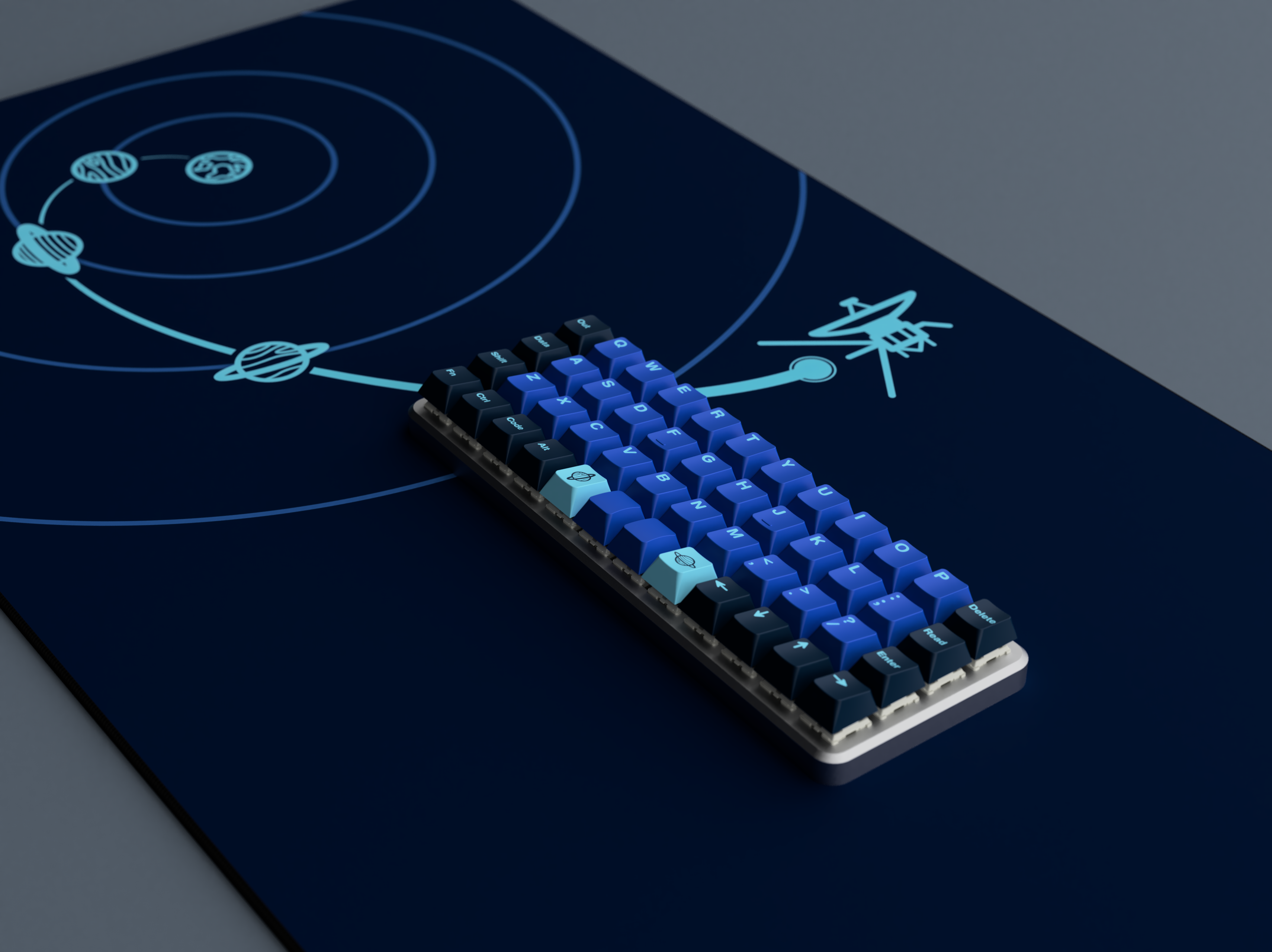 For GMK Voyage, we're also happy to bring you the Voyage Deskmats and Voyage Mousepad. These two items will pair great with any keyboard adorned with GMK Voyage!