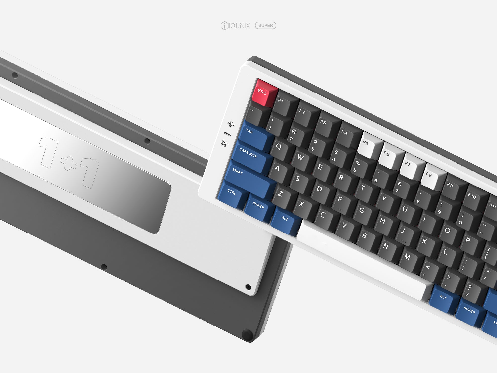 The Super 1+1 TKL by IQUINIX is a versatile and modular TKL keyboard in retro style. This gasket mount keyboard features an 89 keys layout that can be customized to fit your desired typing style.