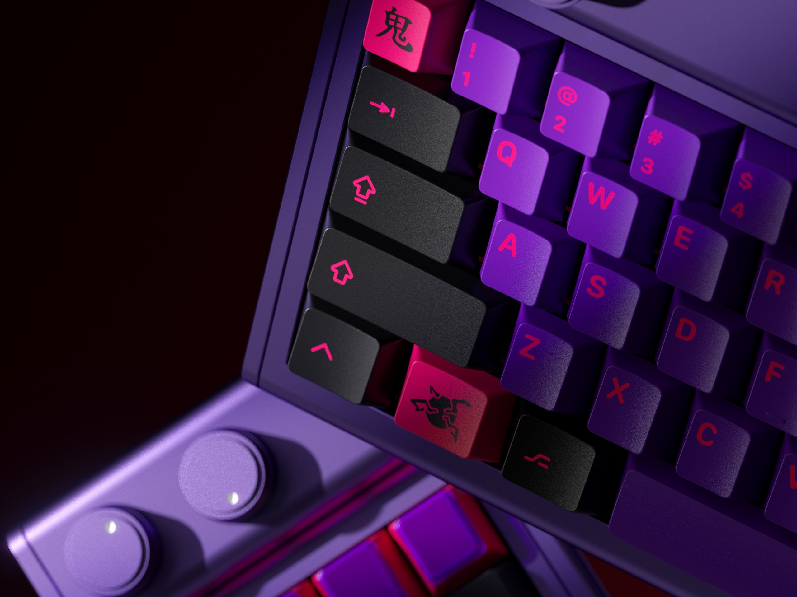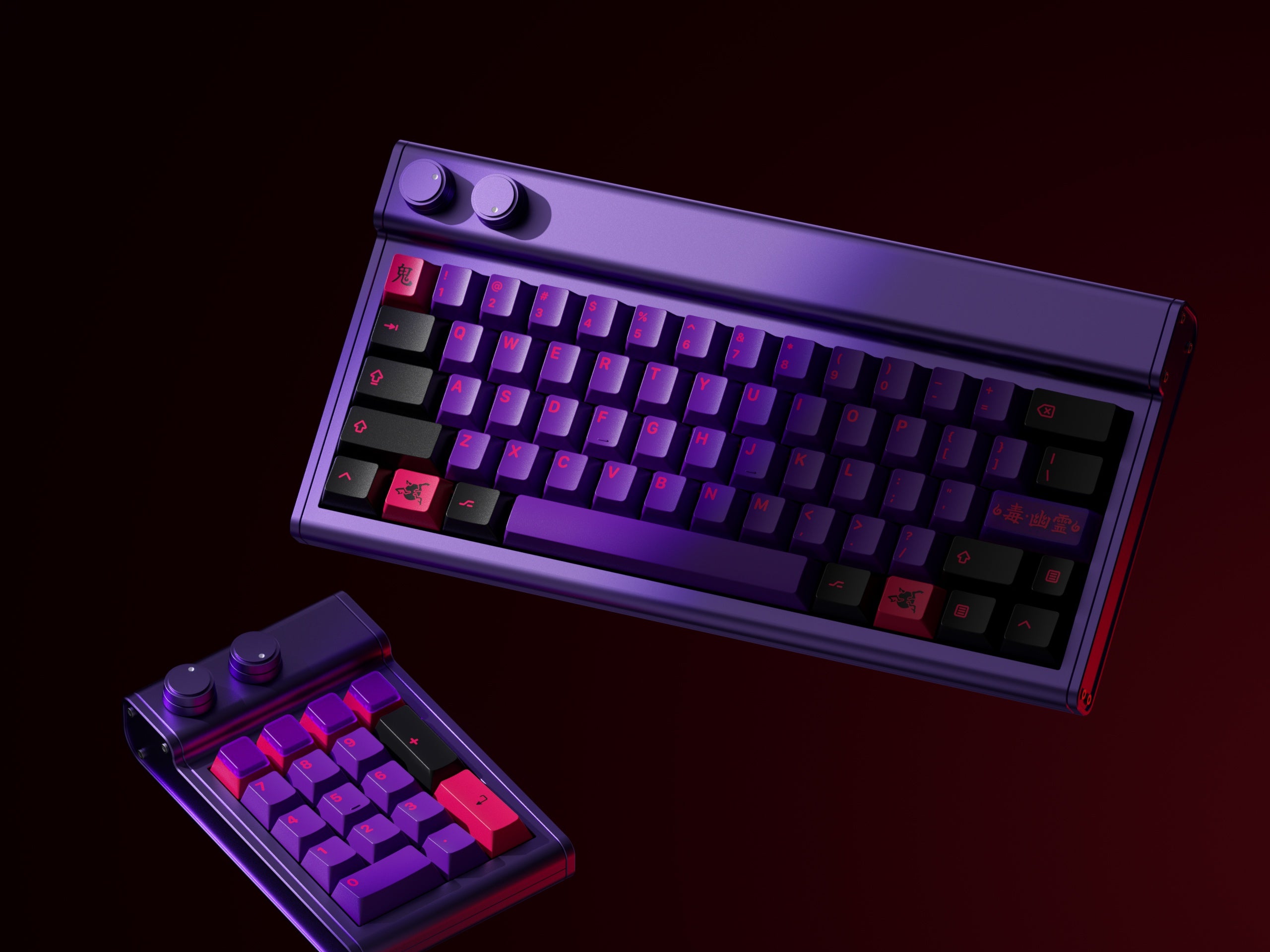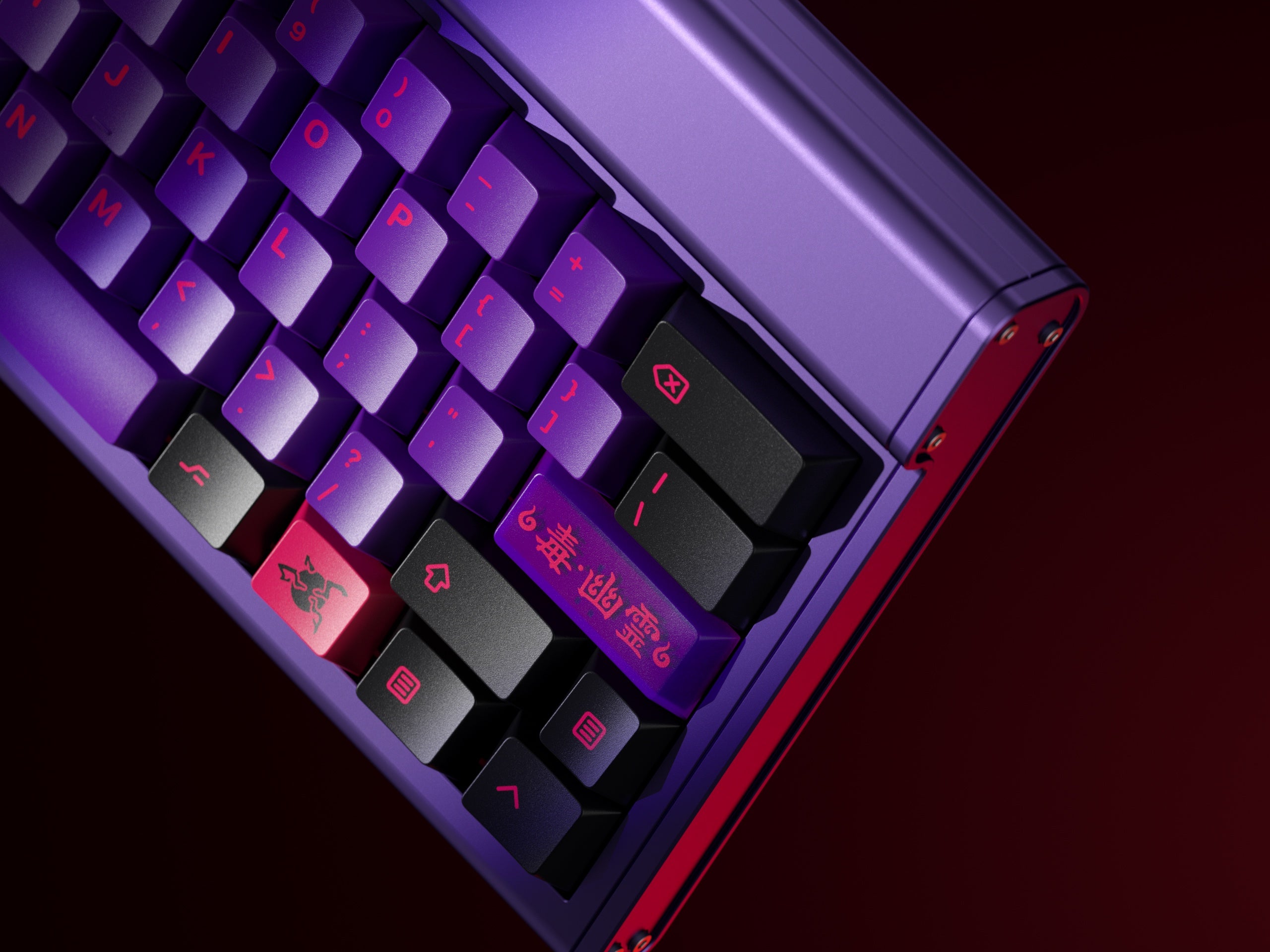 Introducing KAP Generation, the first keycap set to be produced using the new KAP Legend System, created in partnership with Keyreative. The set features a striking color combination of bright red and translucent maroon, with a modern set of legends and some fun complementary novelty keys.